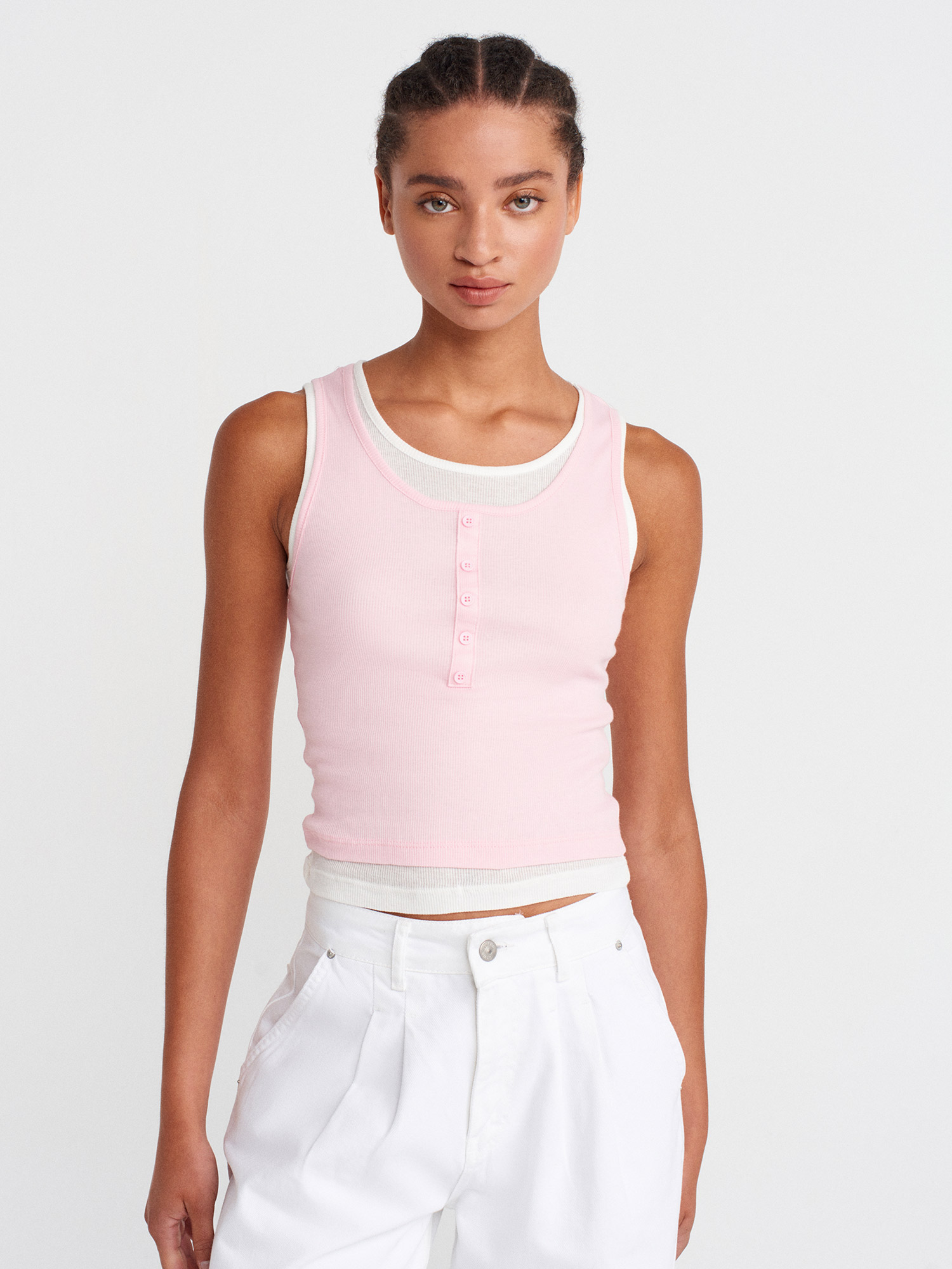 21102 Çift Katlı Düğmeli Top-Toz Pembe