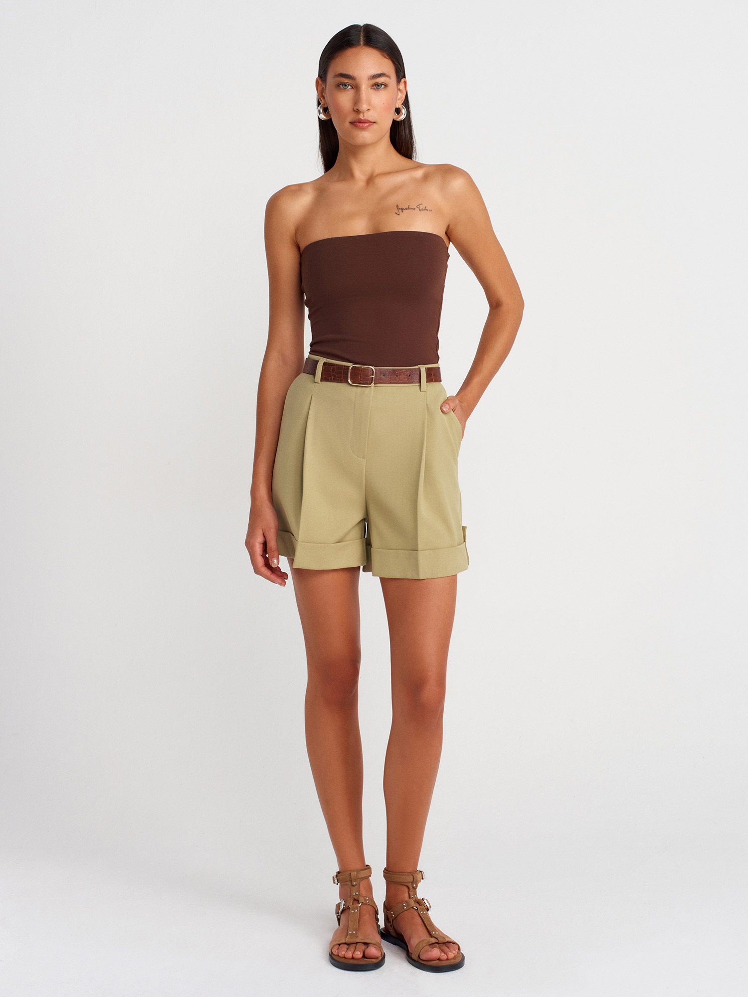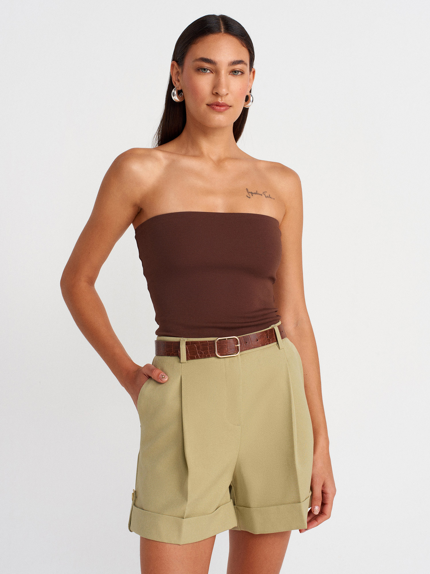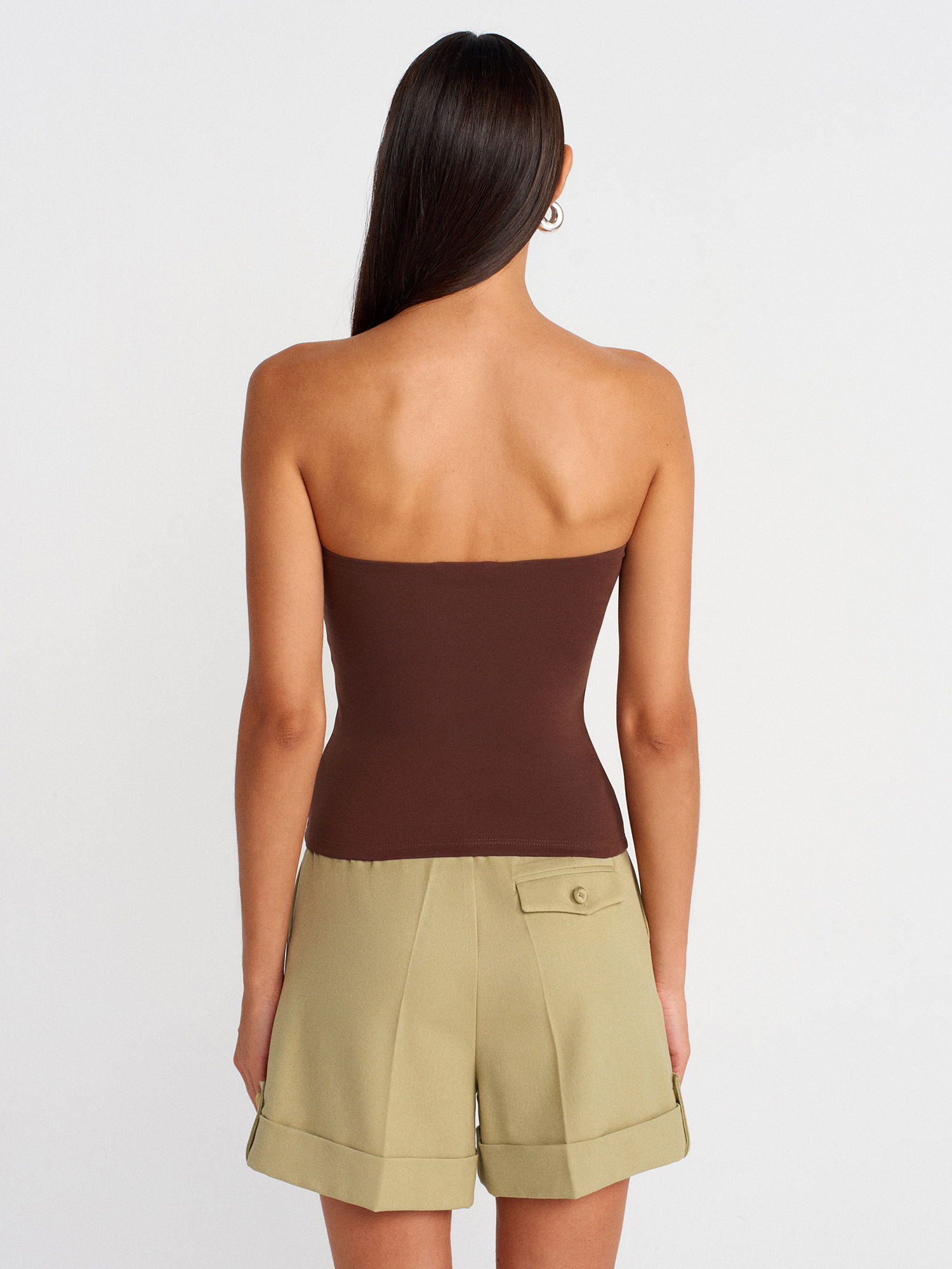 21103 Straplez Top-Açık Kahve