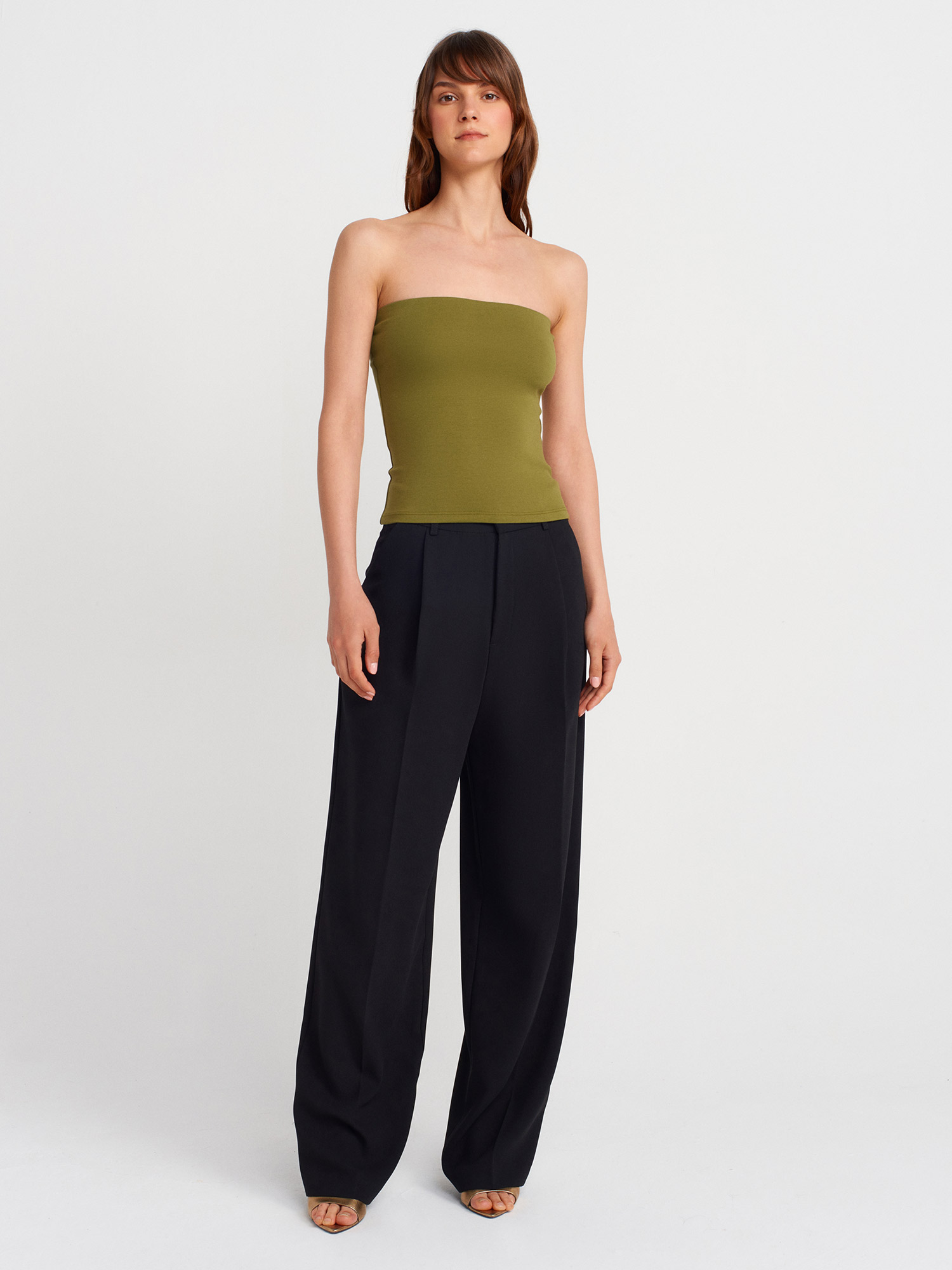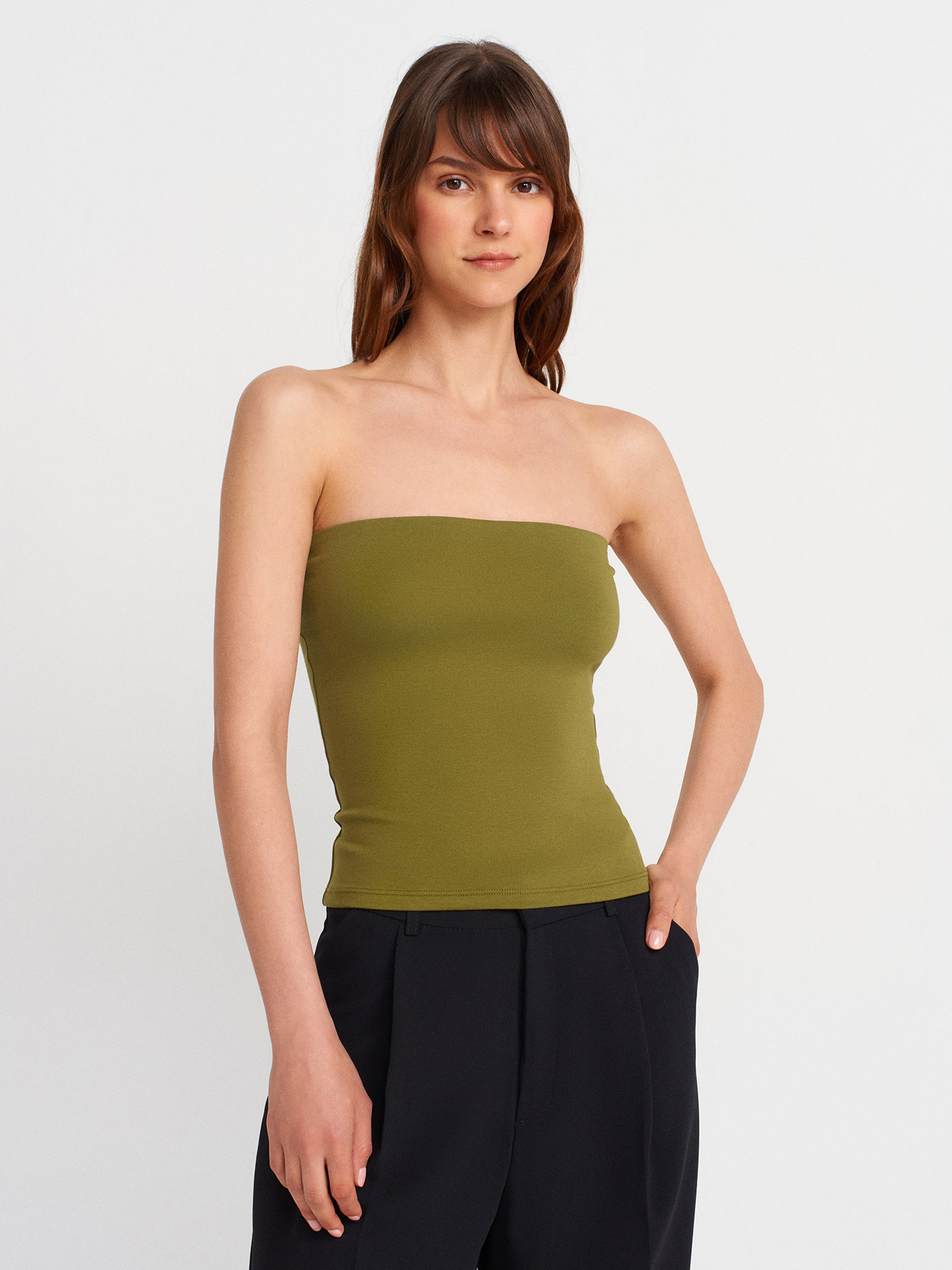 21103 Straplez Top-Yağ Yeşil