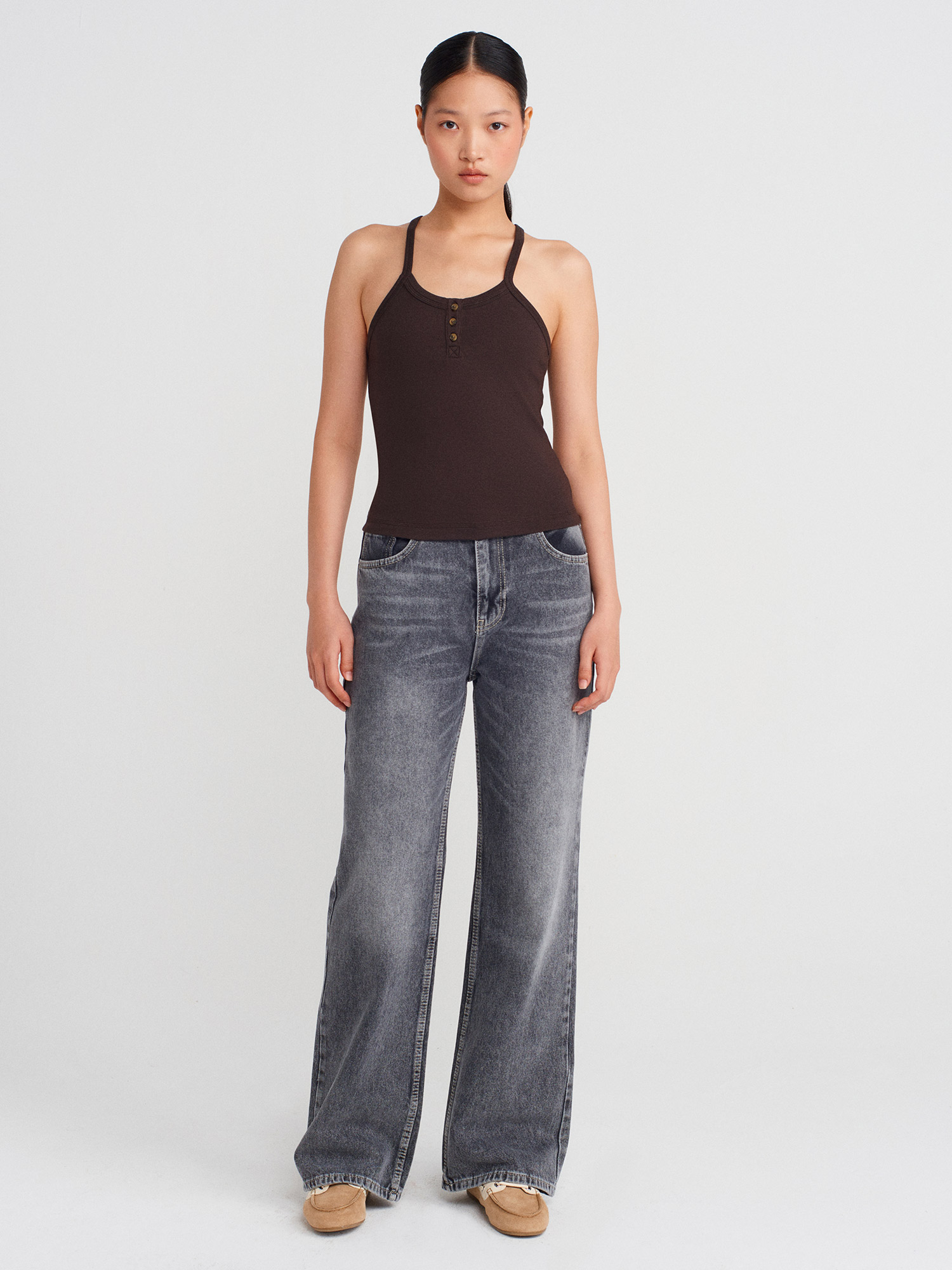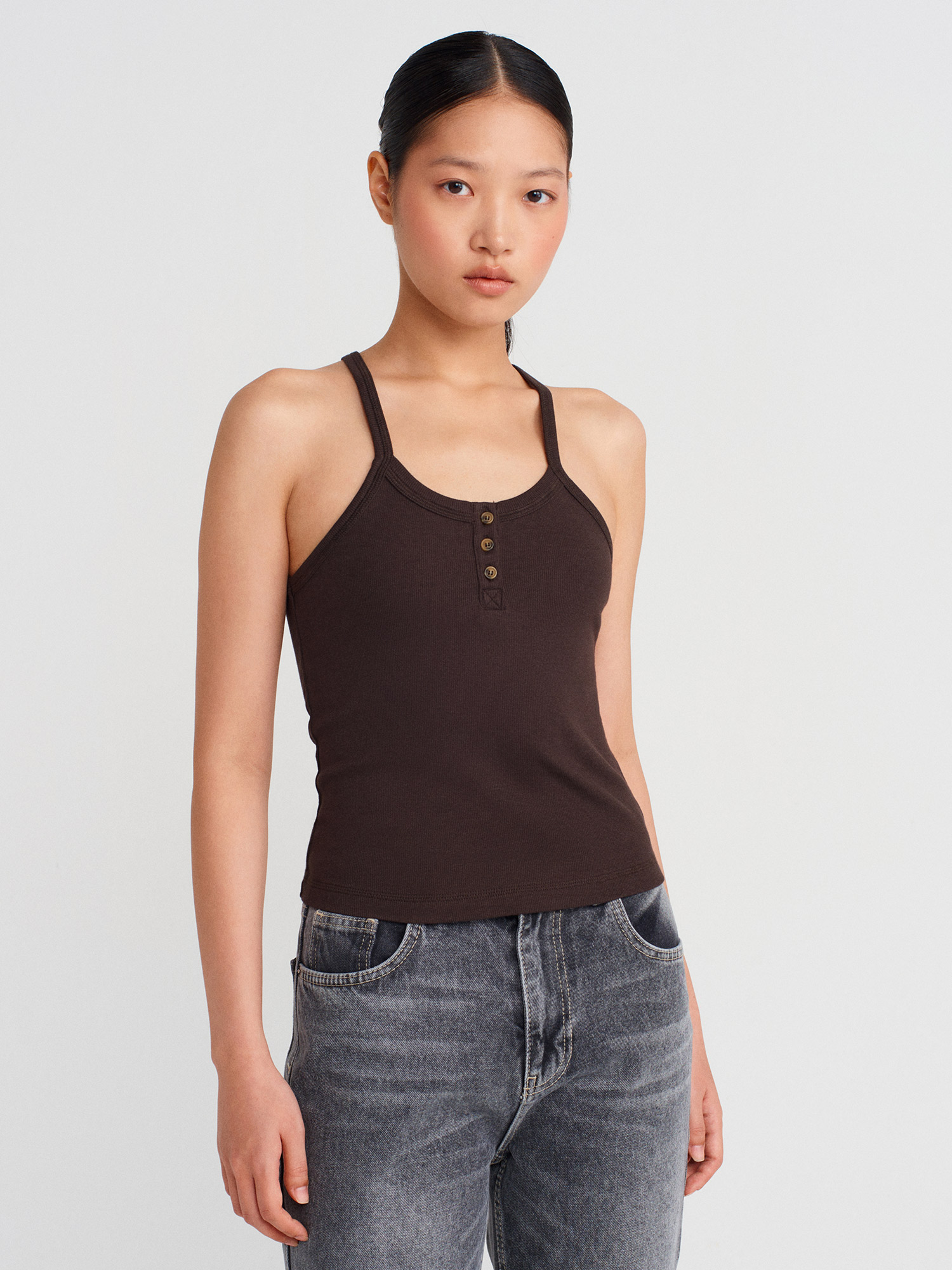 21106 Düğme Detaylı Askılı Atlet-Koyu Kahve