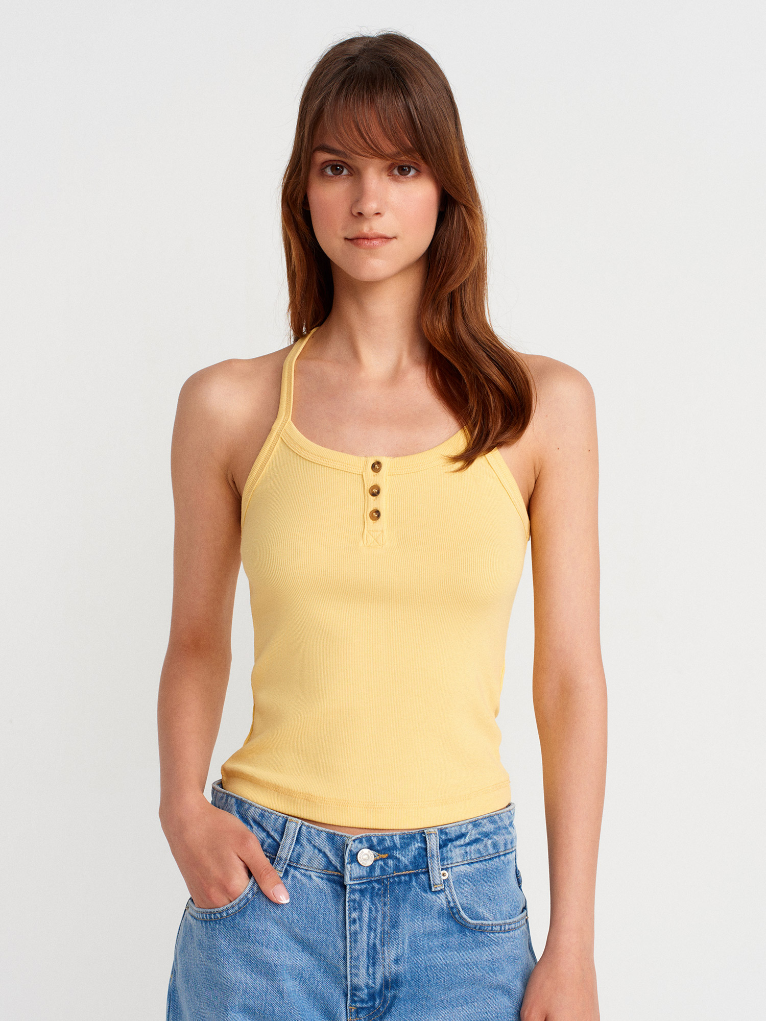 21106 Düğme Detaylı Askılı Atlet-Sarı