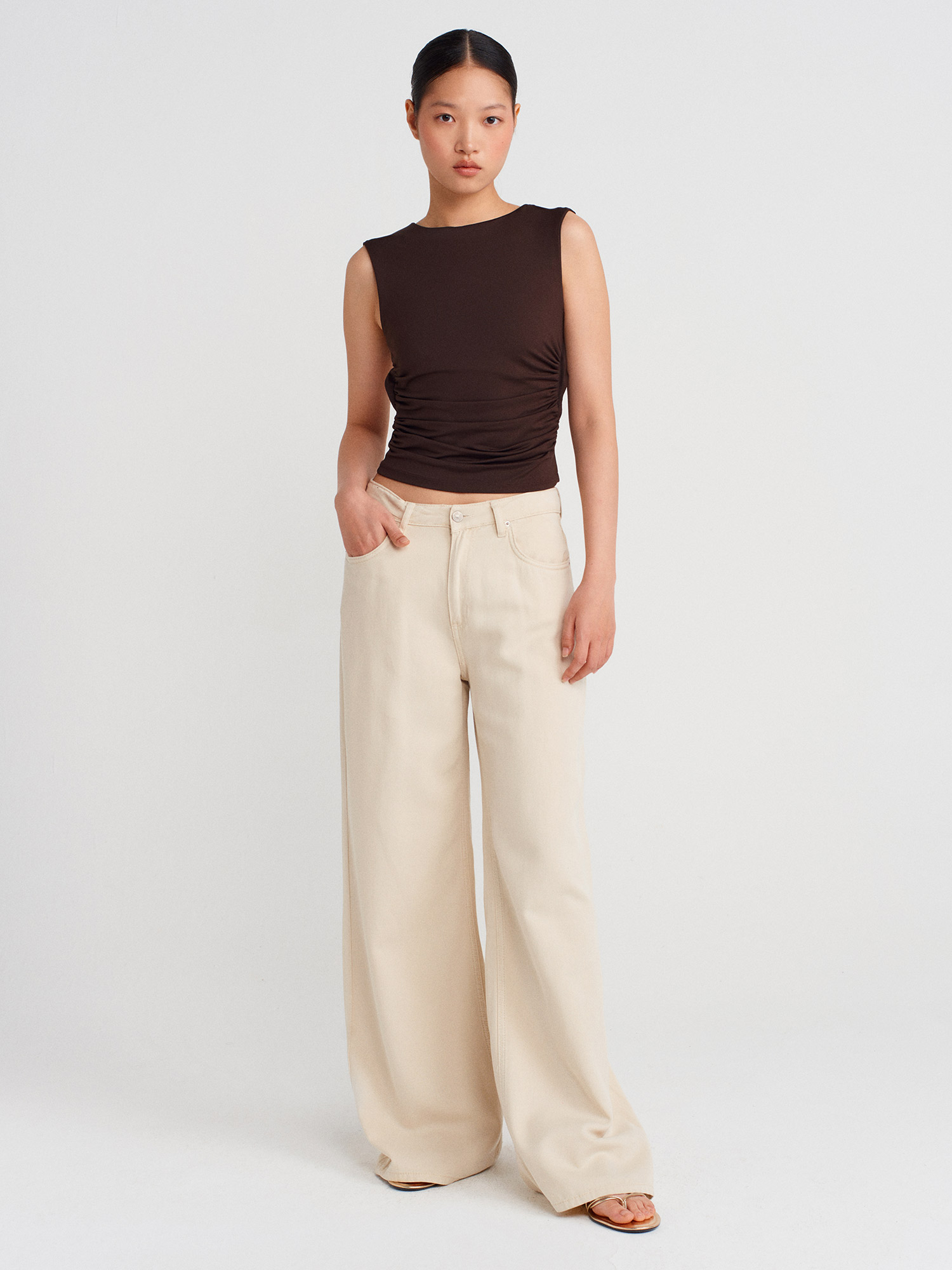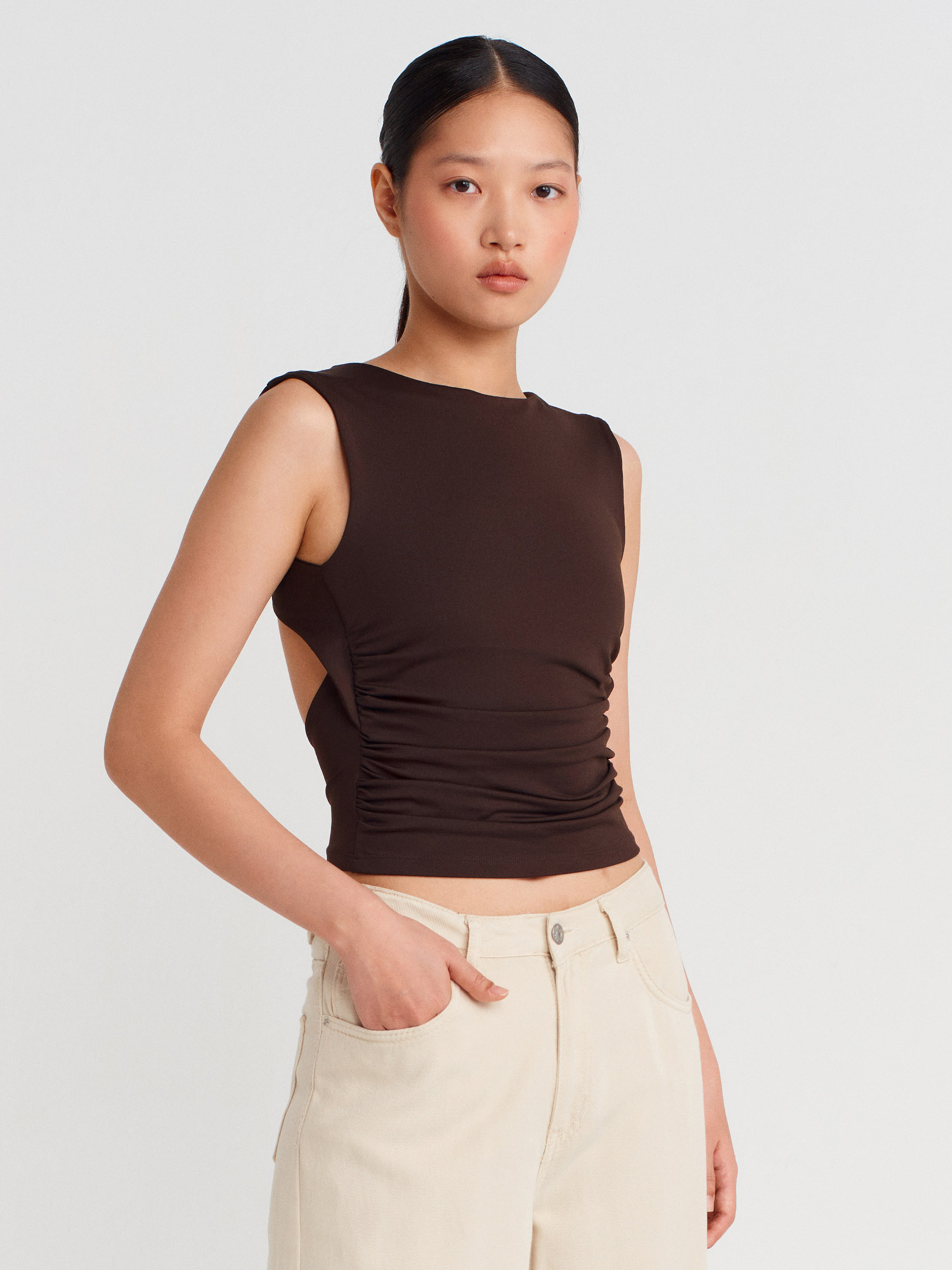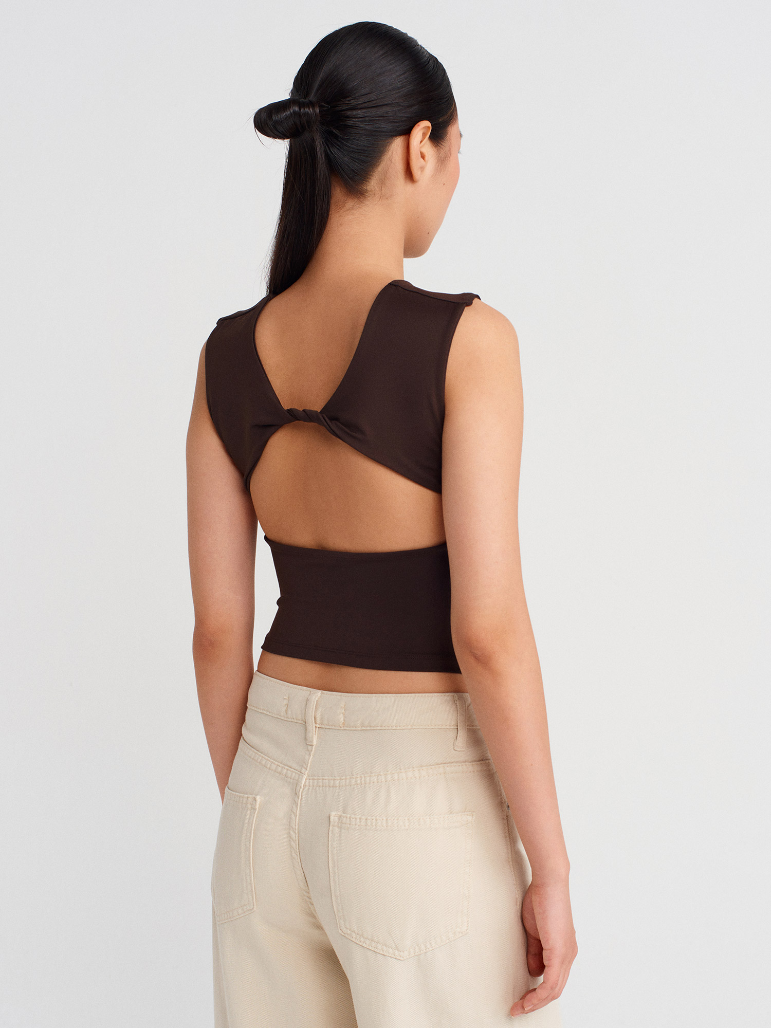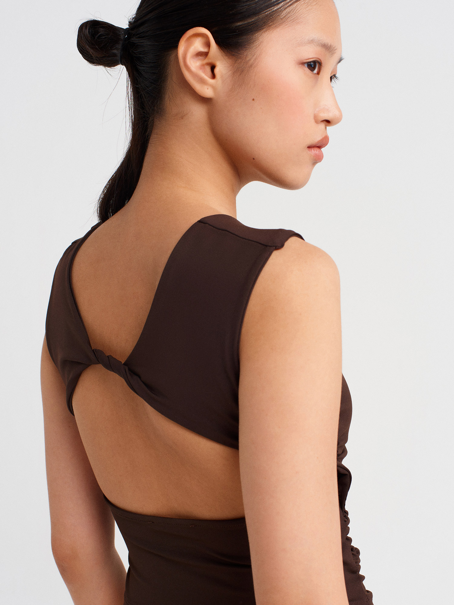 21132 Sırtı Açık Büzgülü Top-Koyu Kahve
