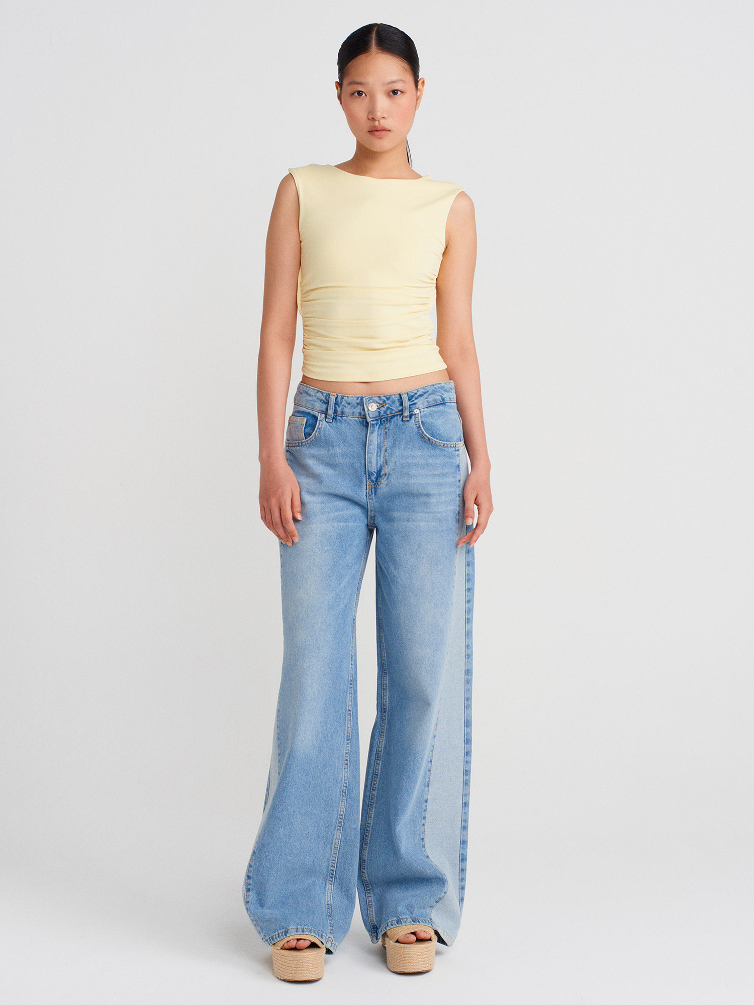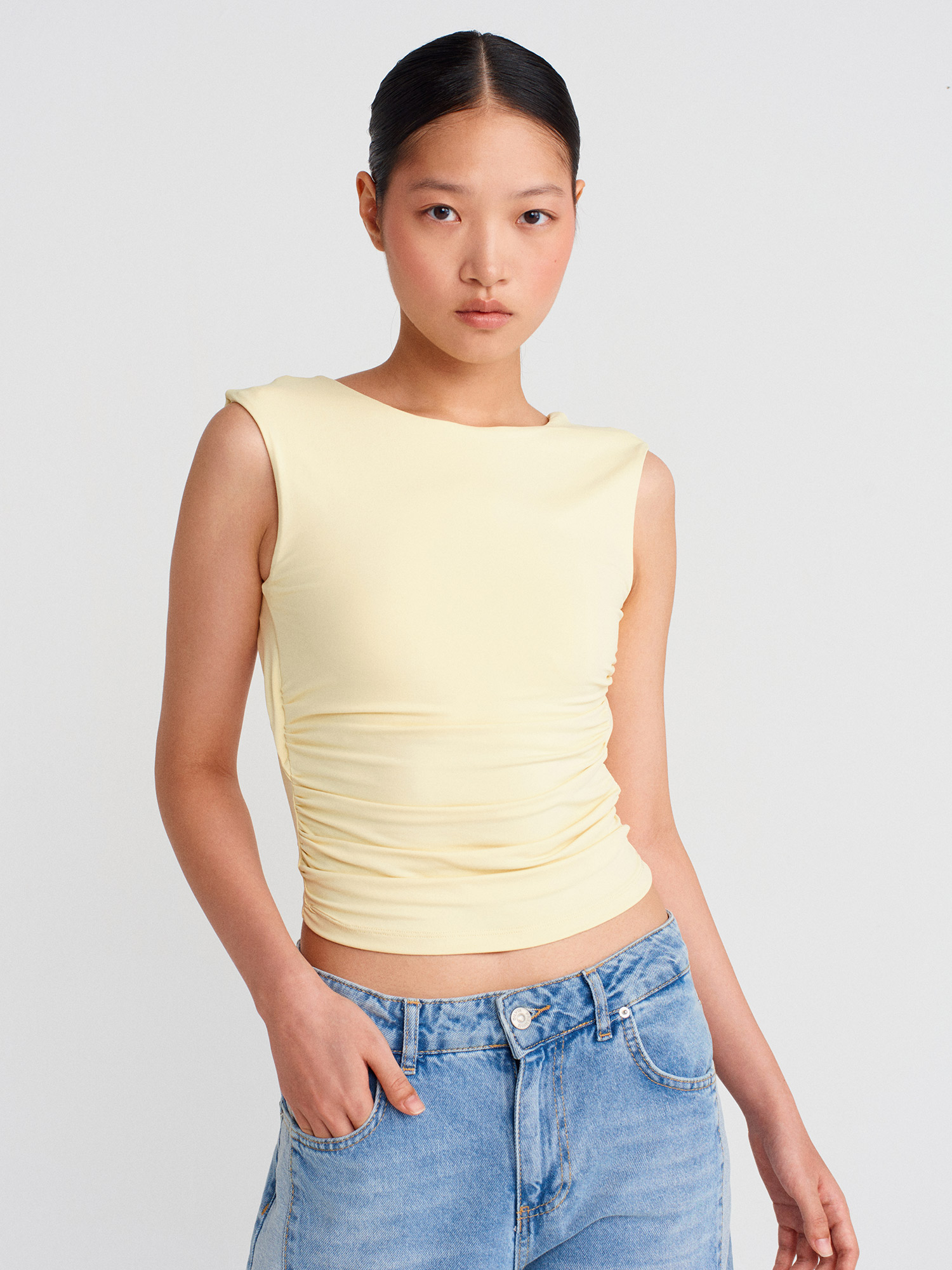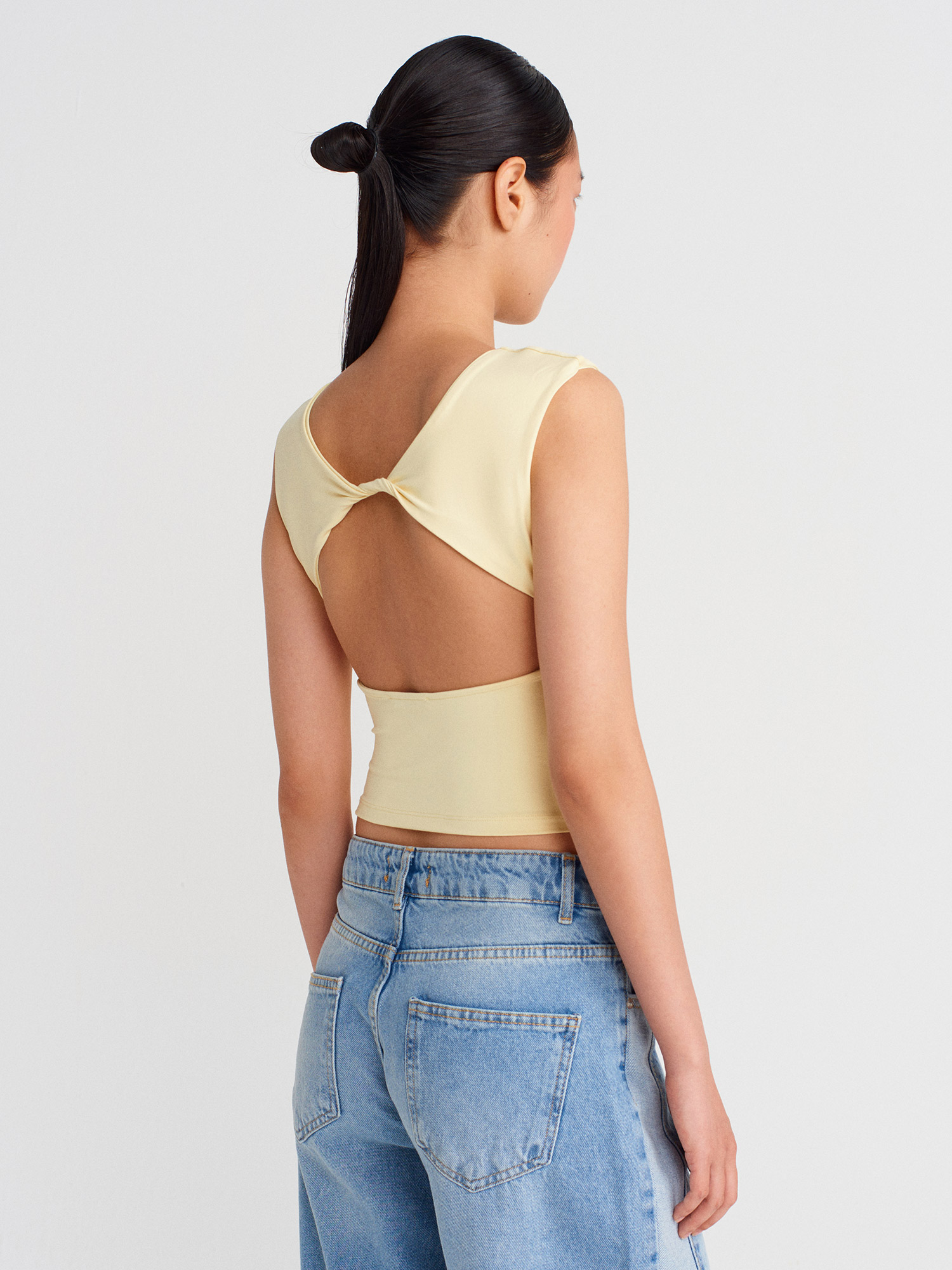 21132 Sırtı Açık Büzgülü Top-Sarı