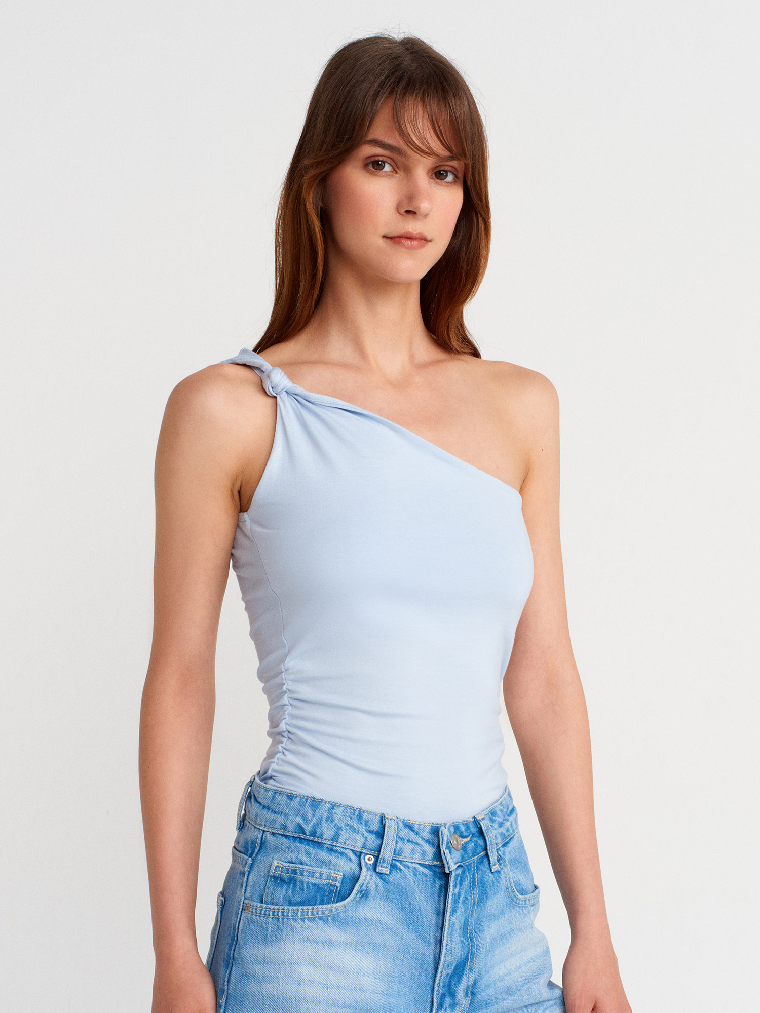 21139 Düğüm Detaylı Asimetrik Top-Açık Mavi