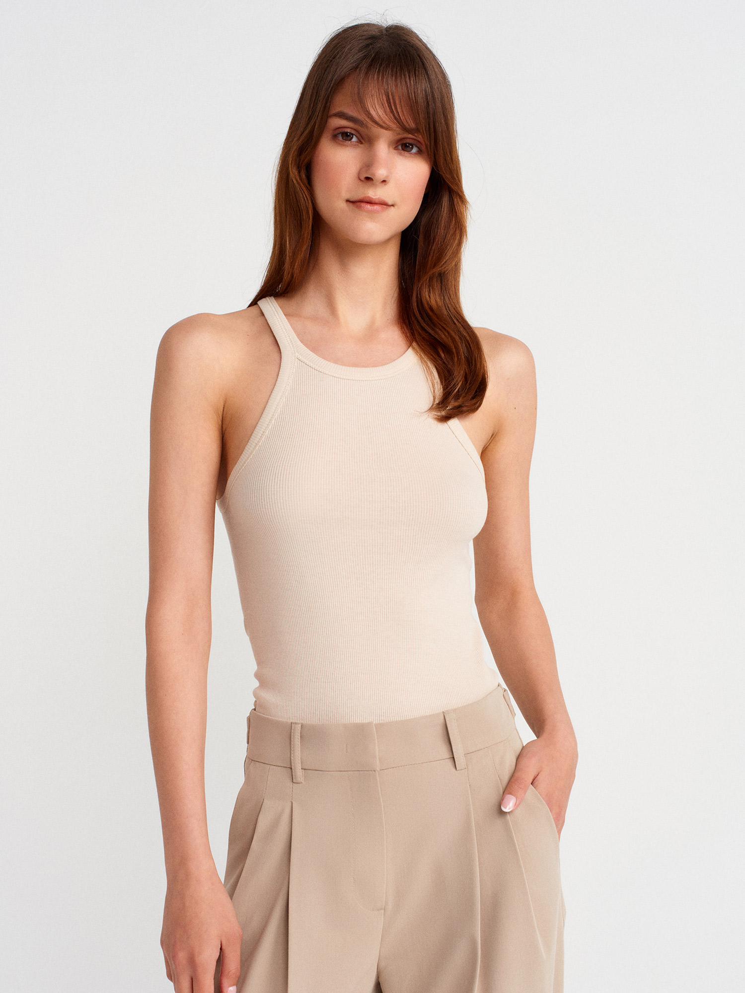 21143 %100 Pamuk Kolsuz Askılı Top-Bej
