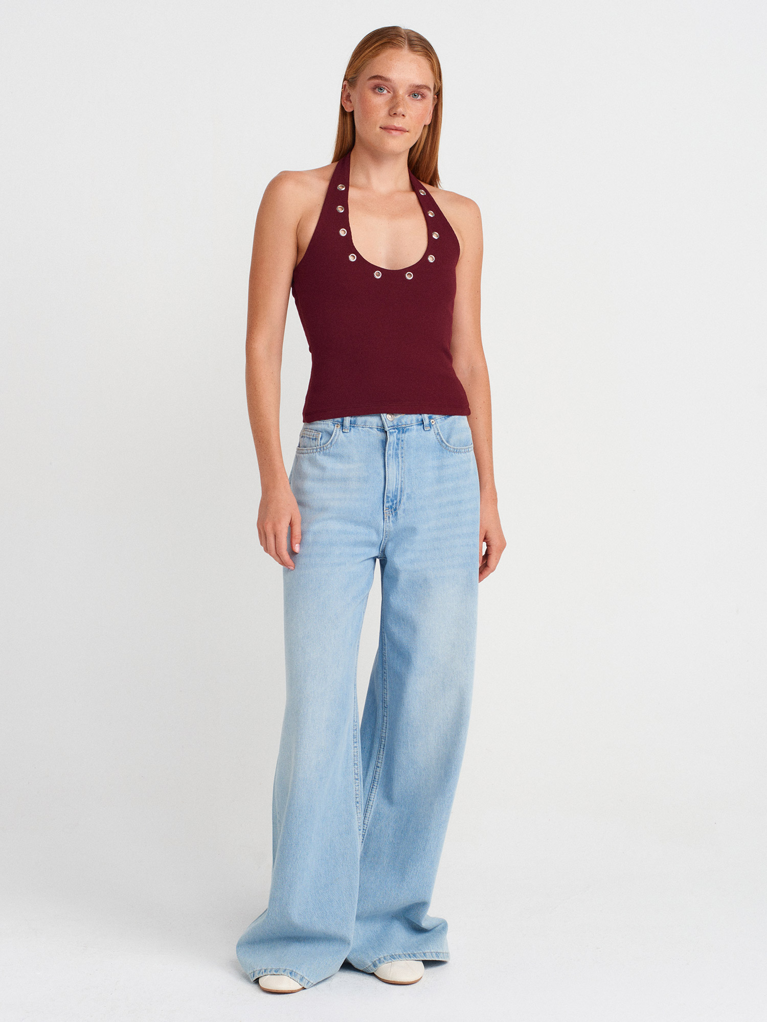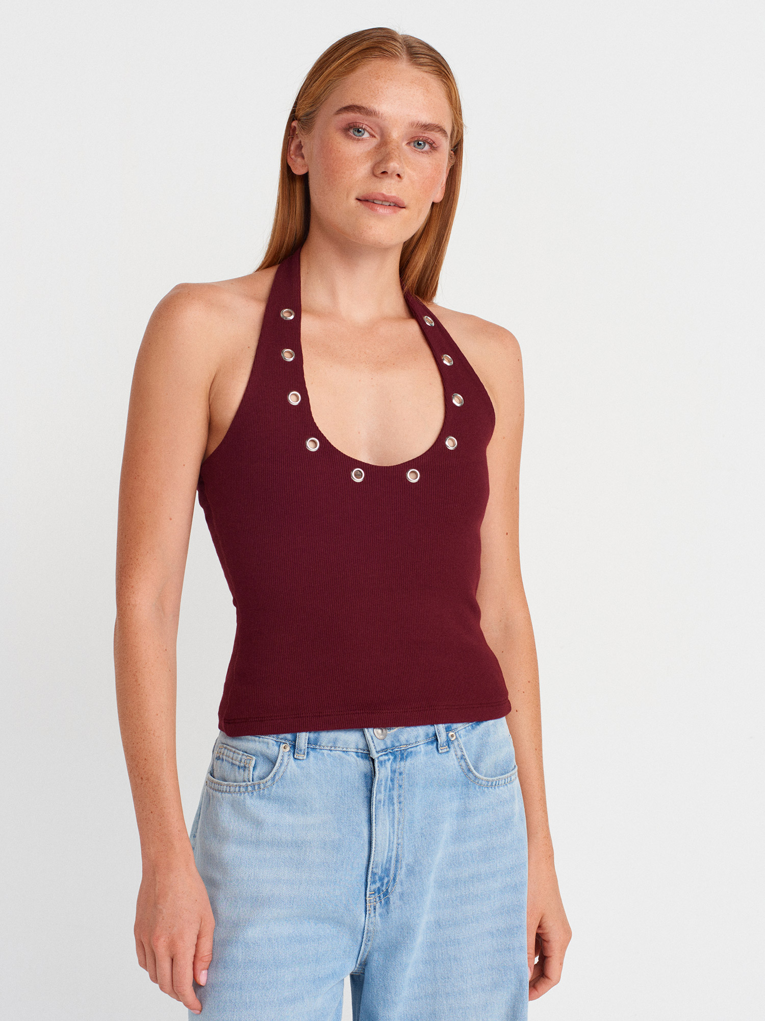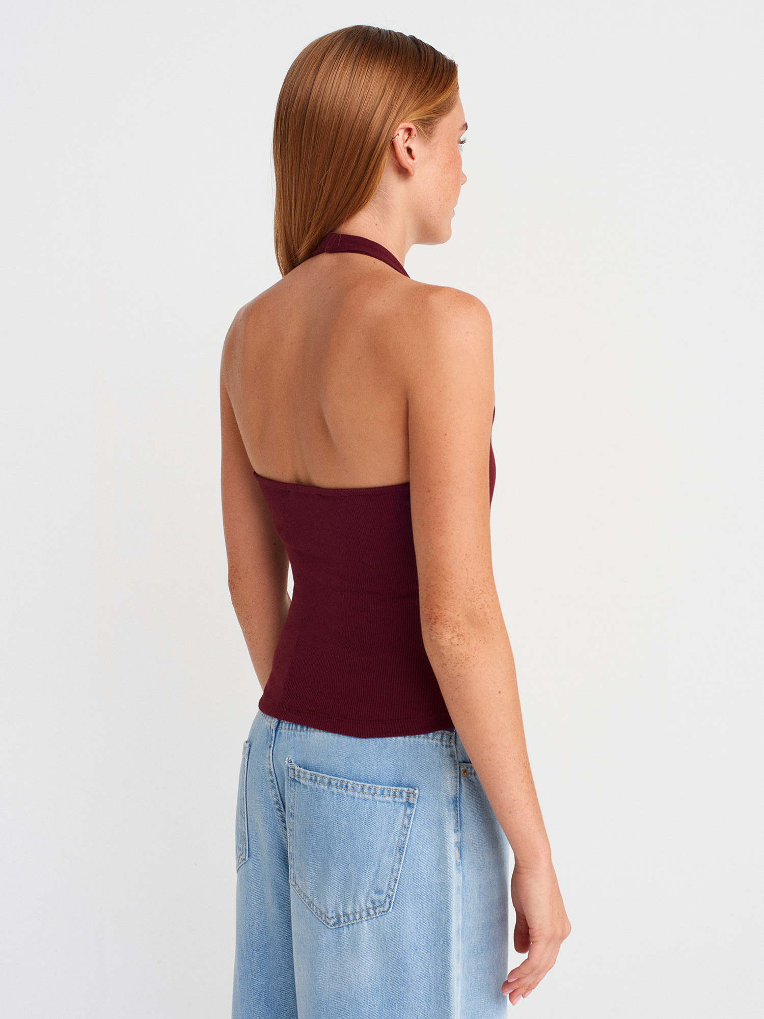 21162 Halter Yaka Top-Bordo