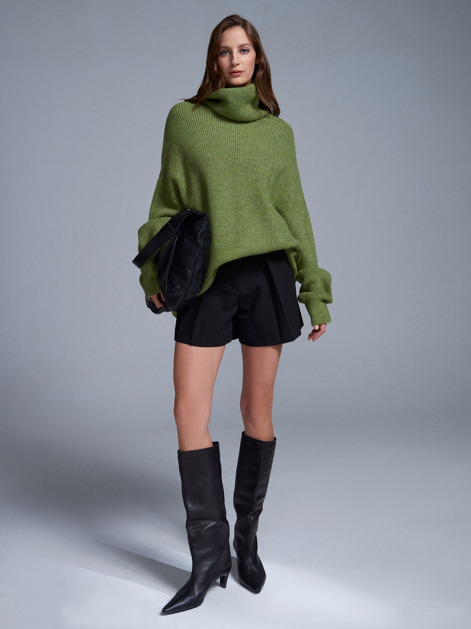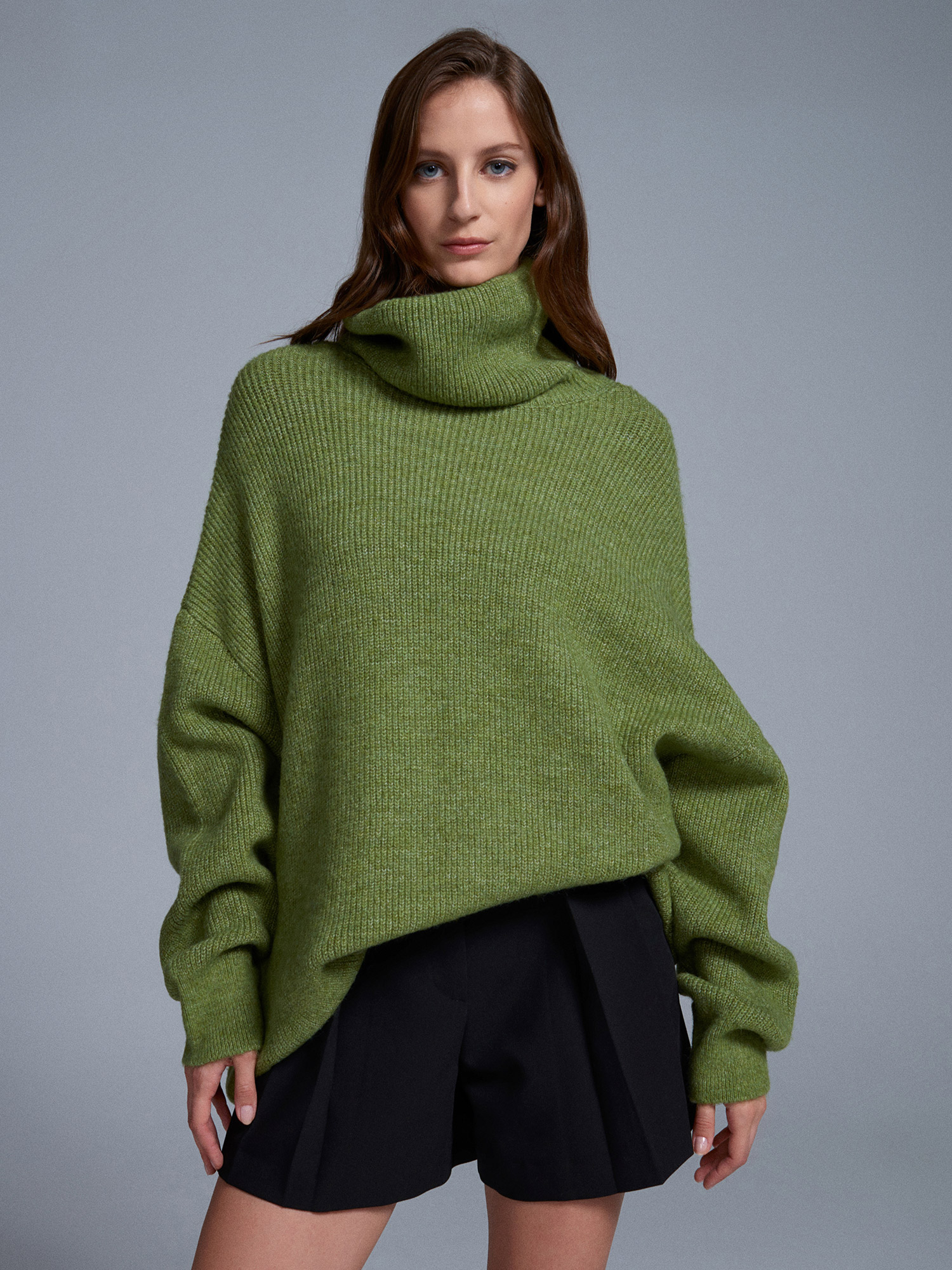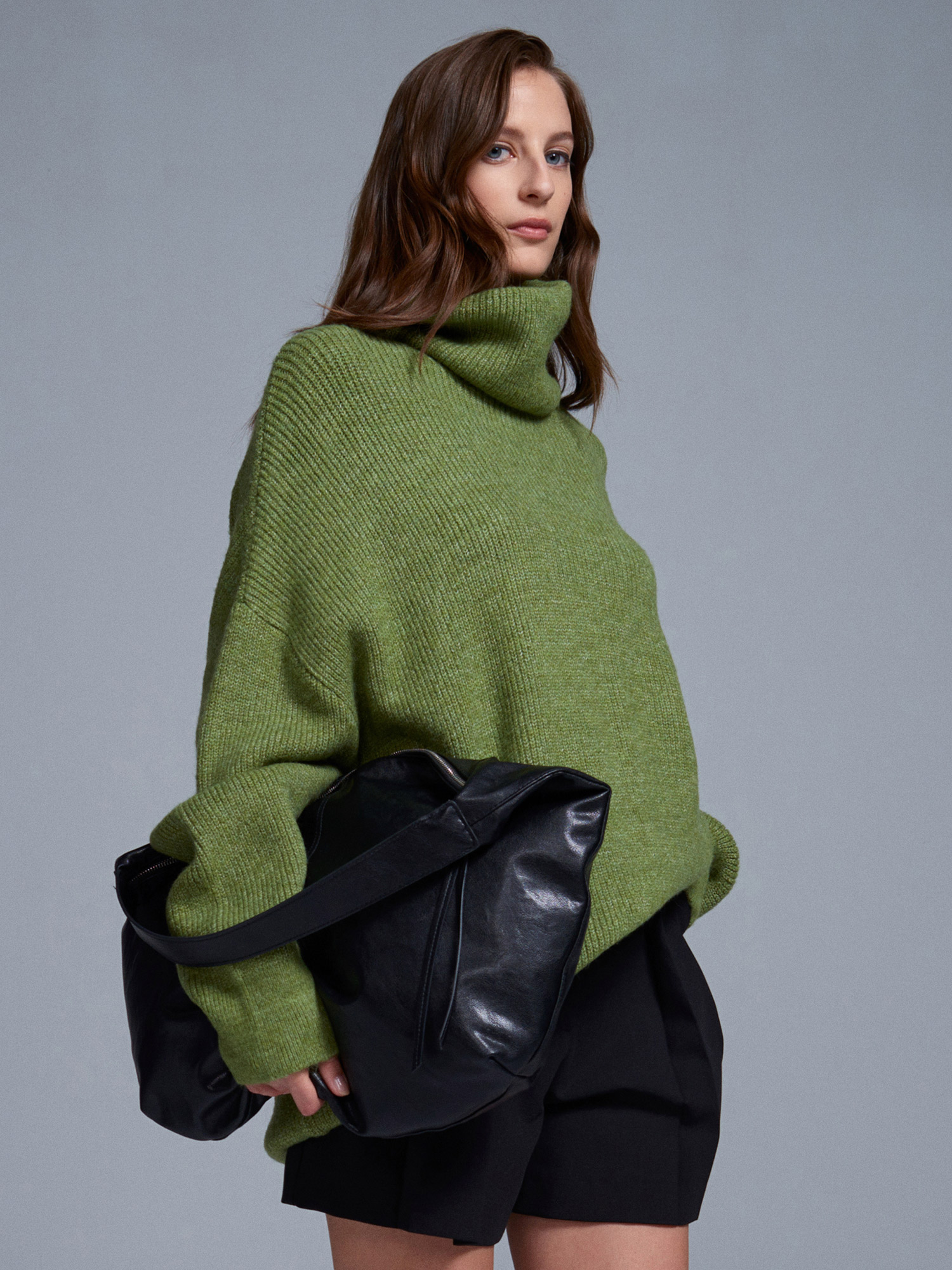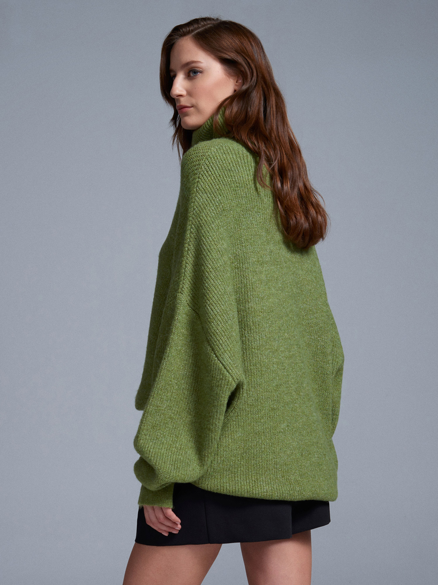 2268 Balıkçı Yaka Oversize Kazak-Açık Yeşil