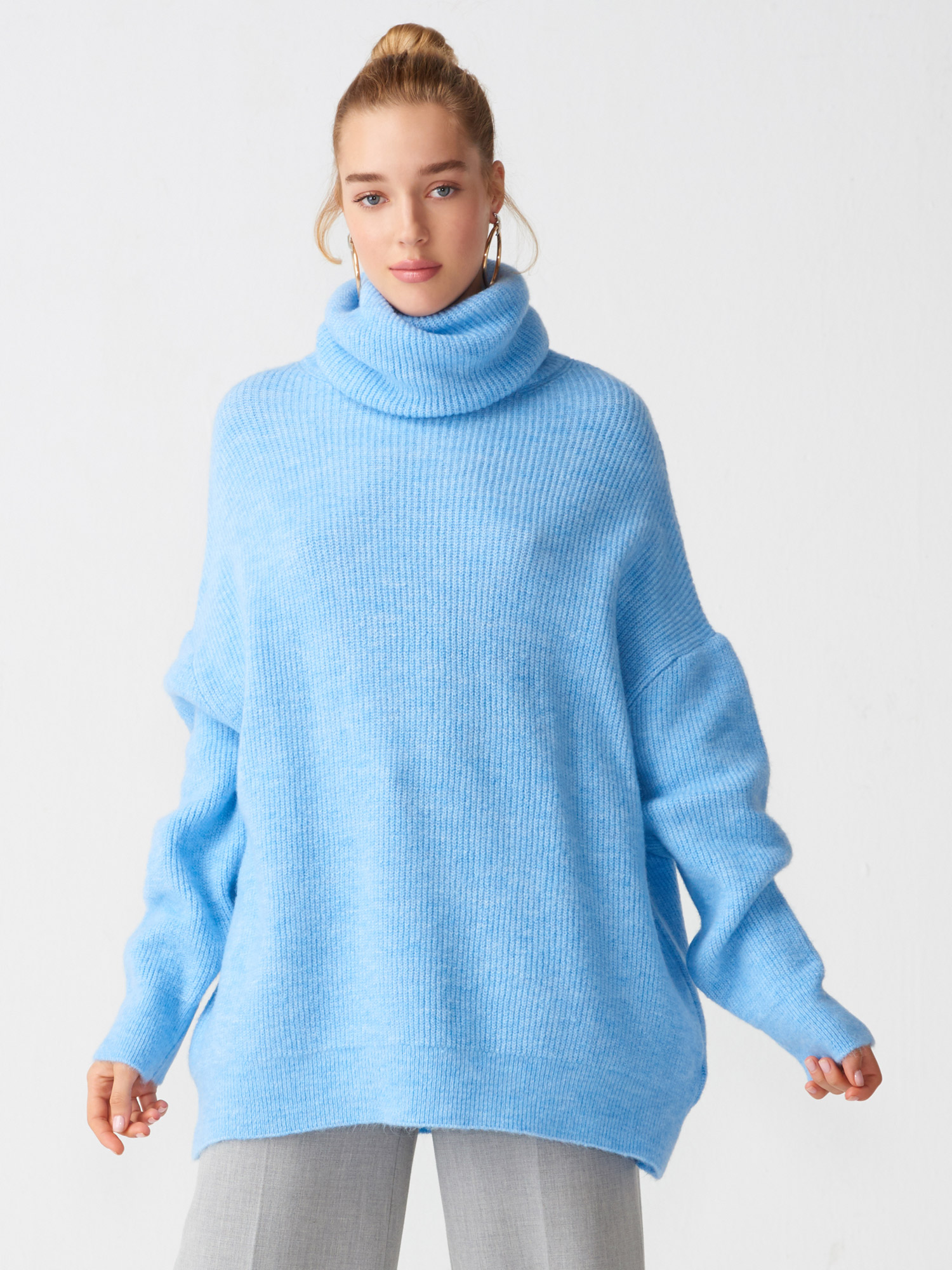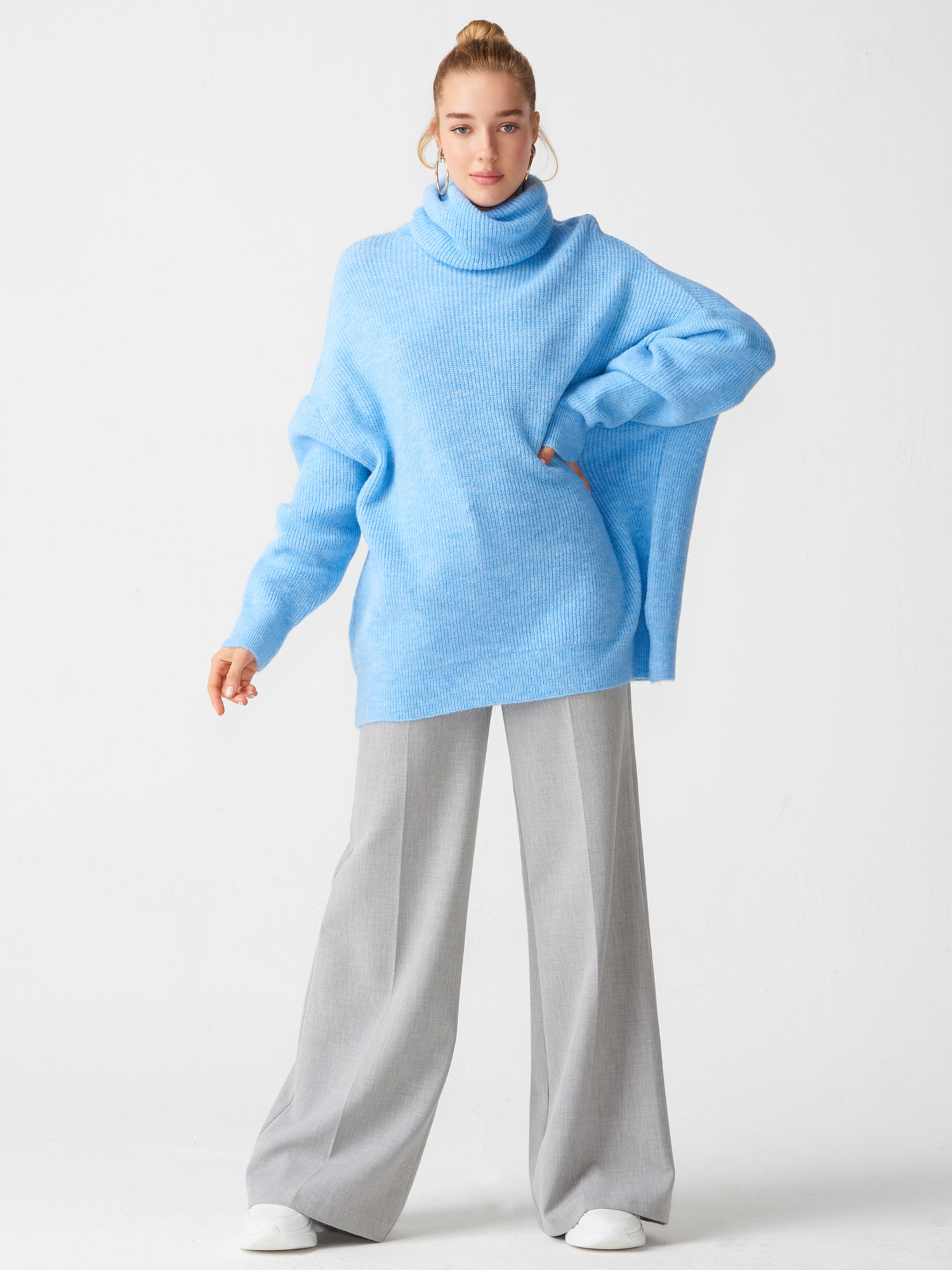2268 Balıkçı Yaka Oversize Kazak-Bebe Mavi