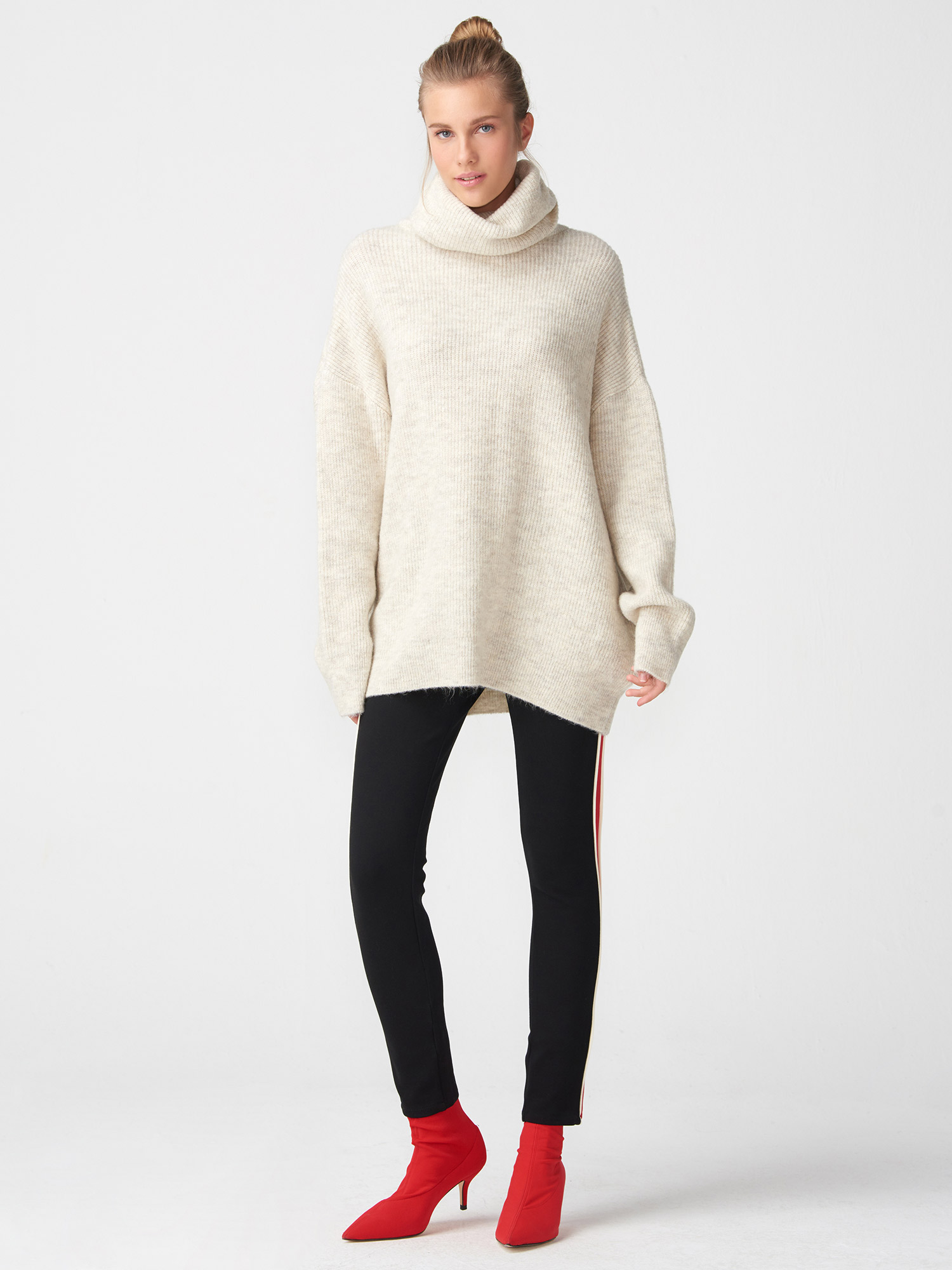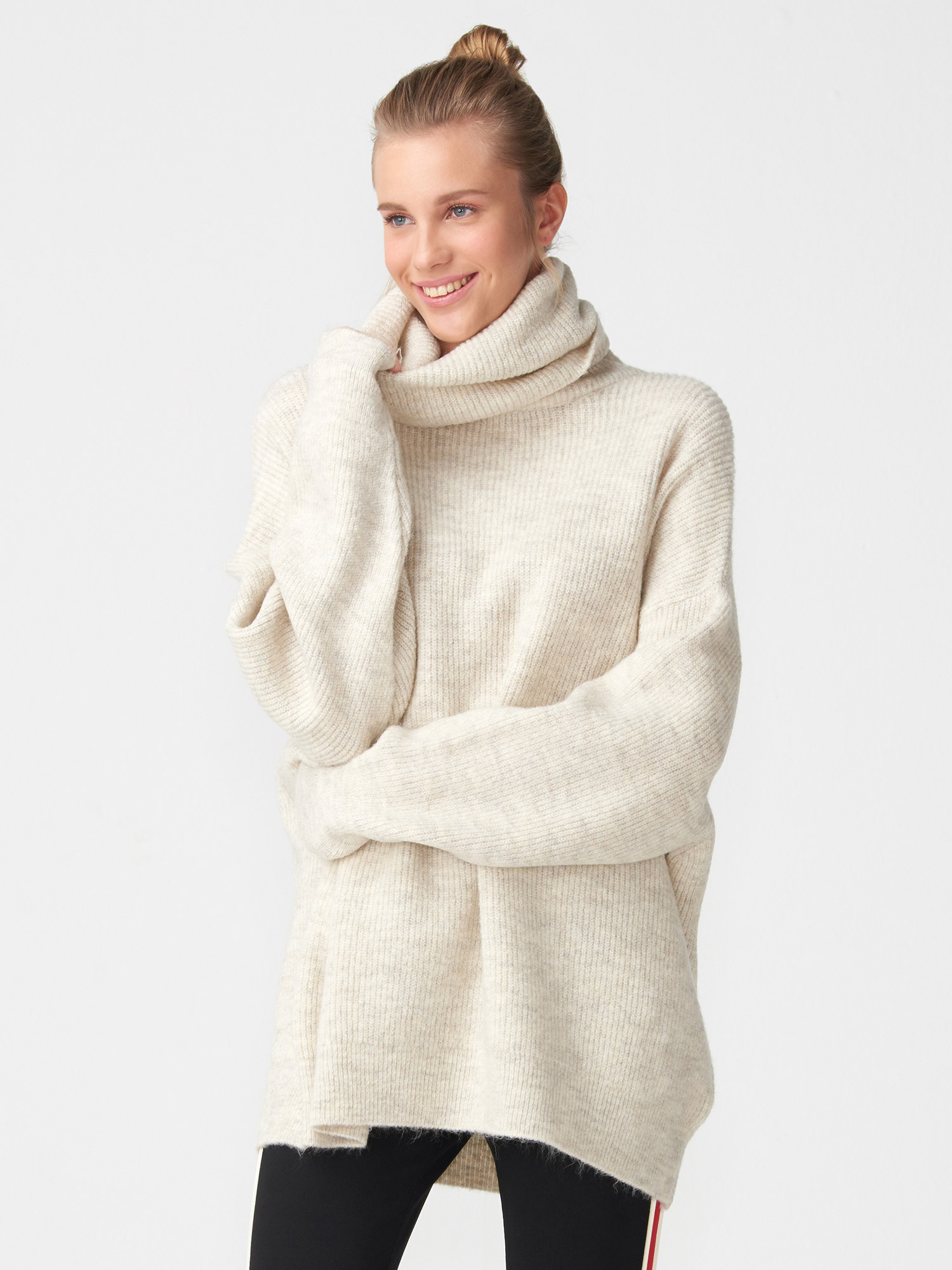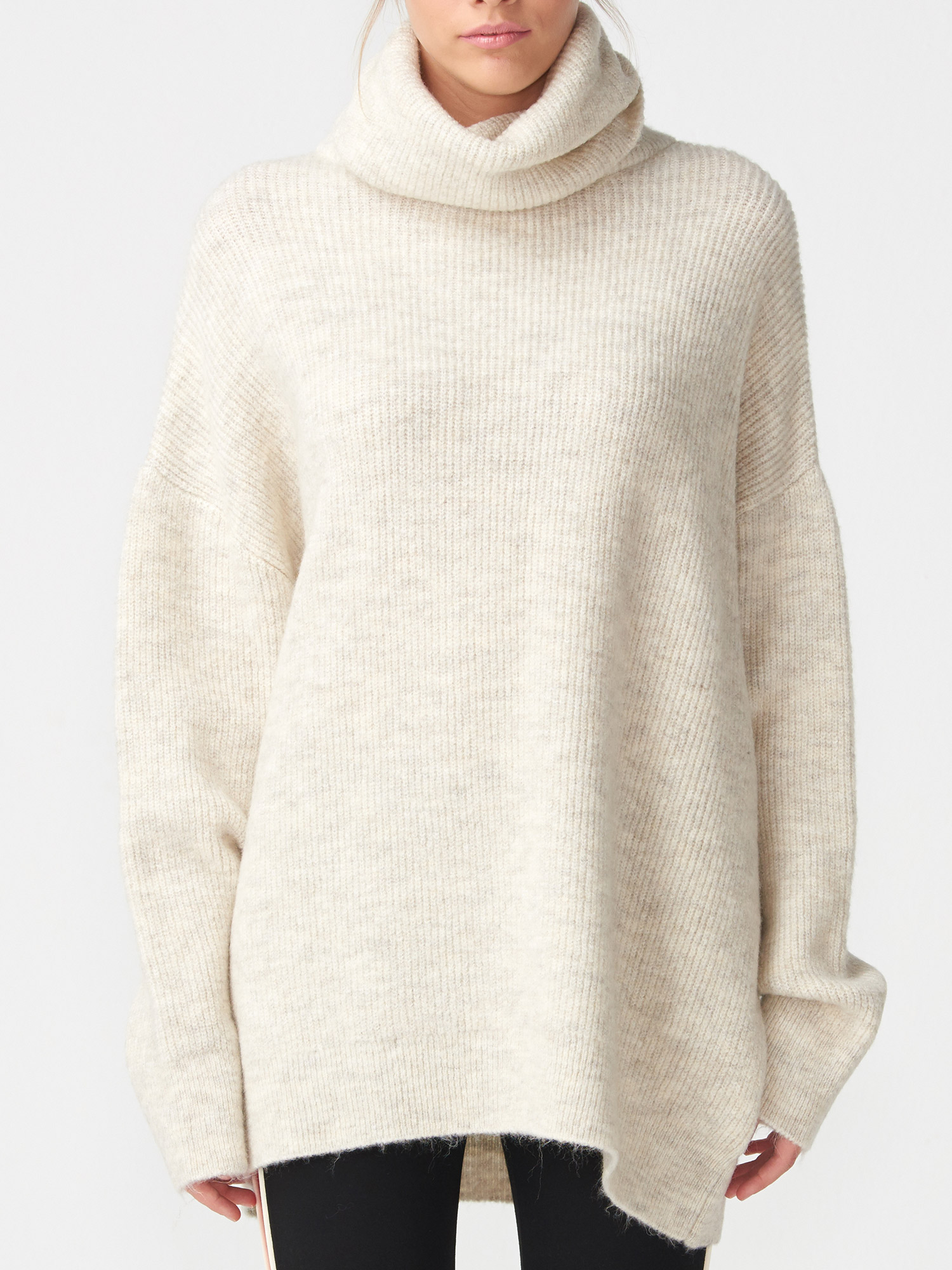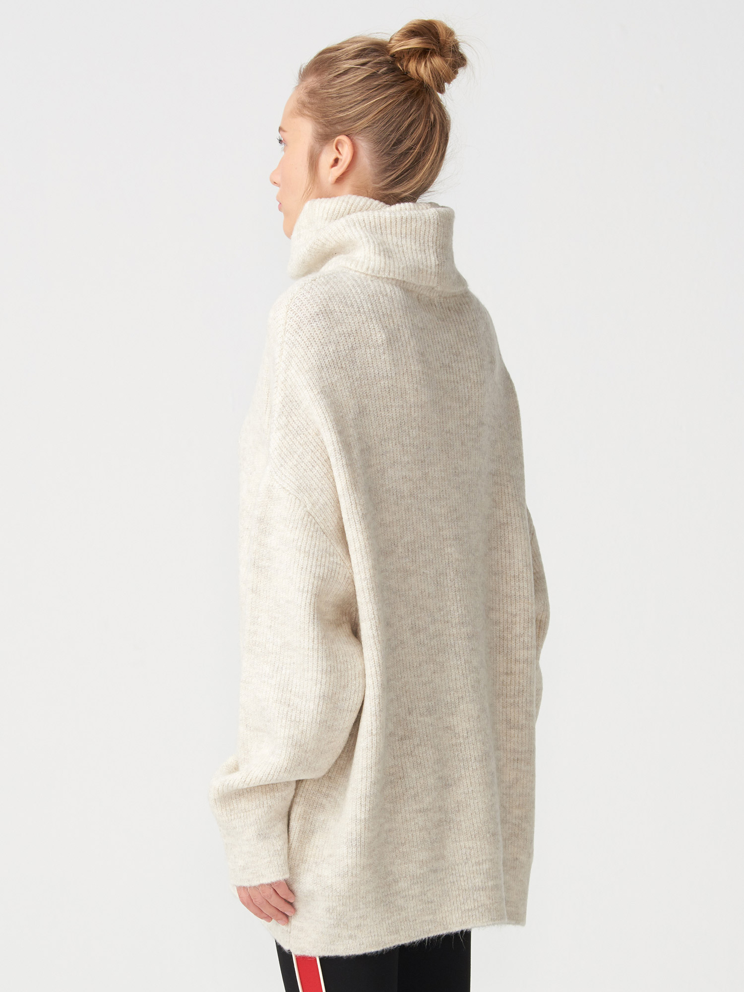 2268 Balıkçı Yaka Oversize Kazak-Bej