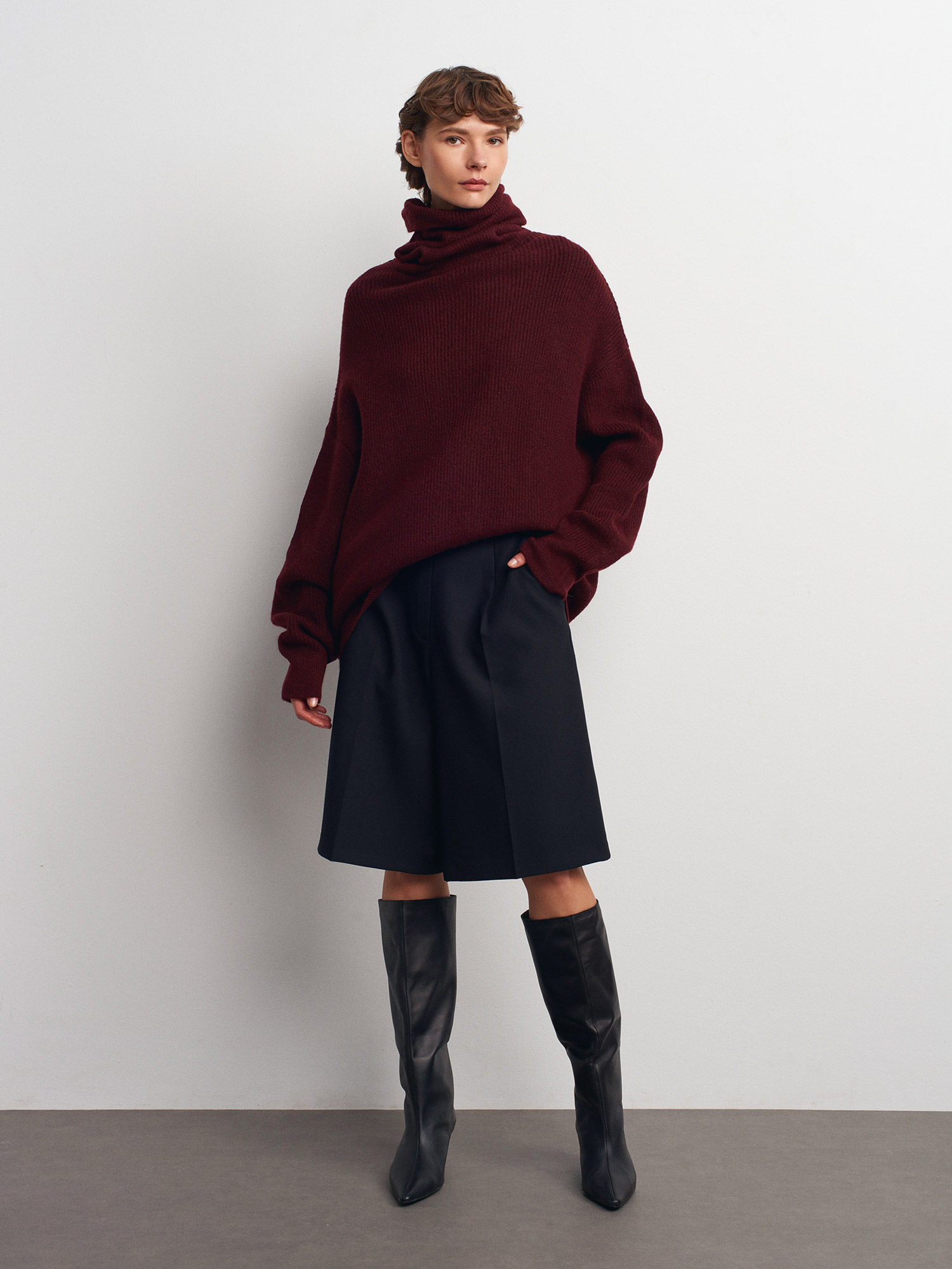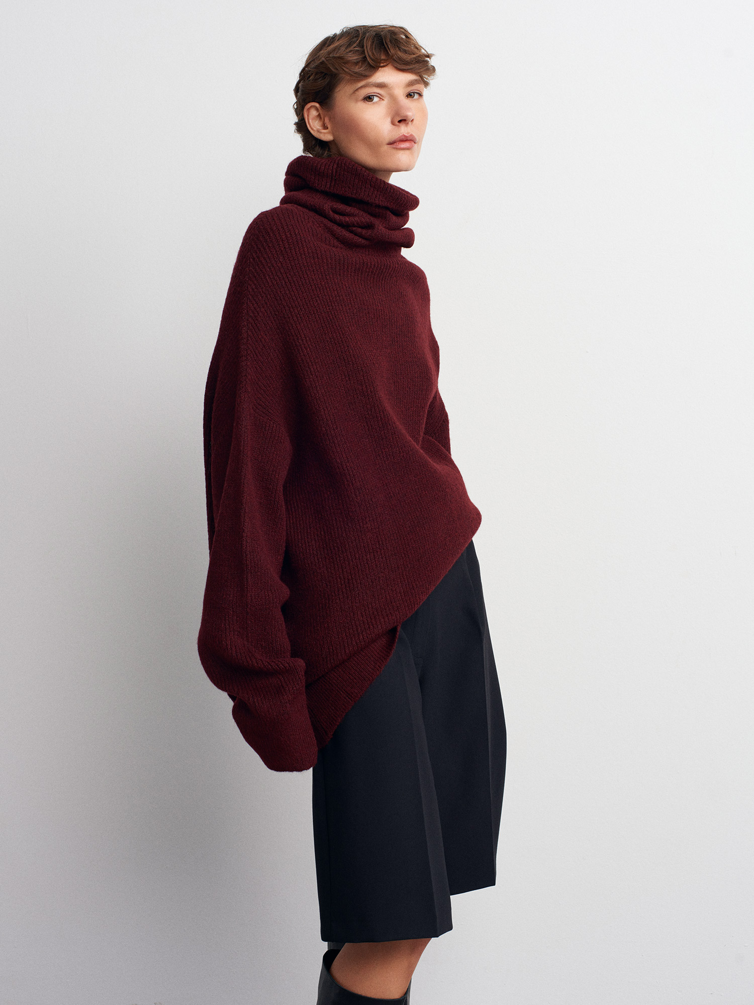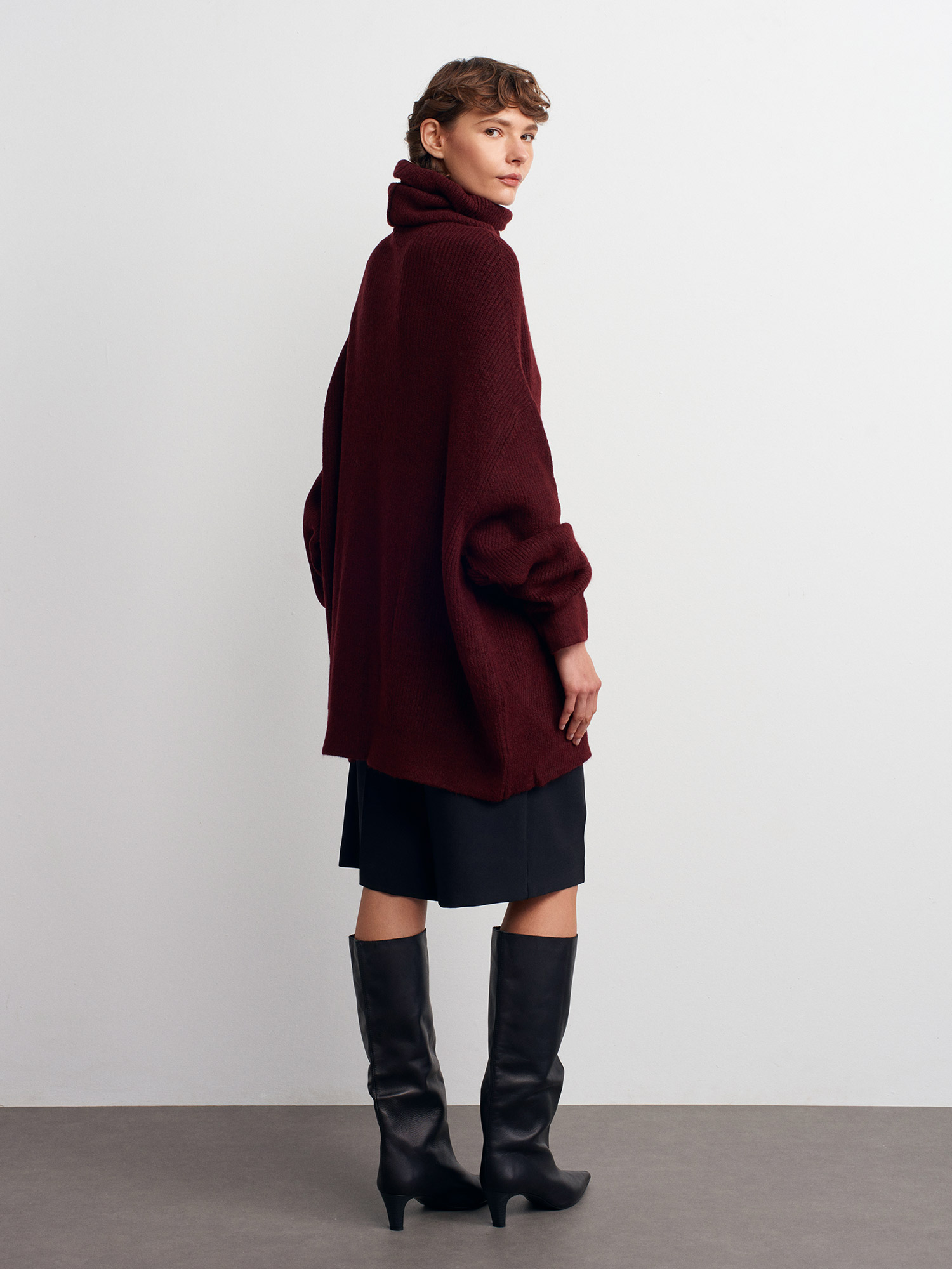 2268 Balıkçı Yaka Oversize Kazak-Koyu Bordo