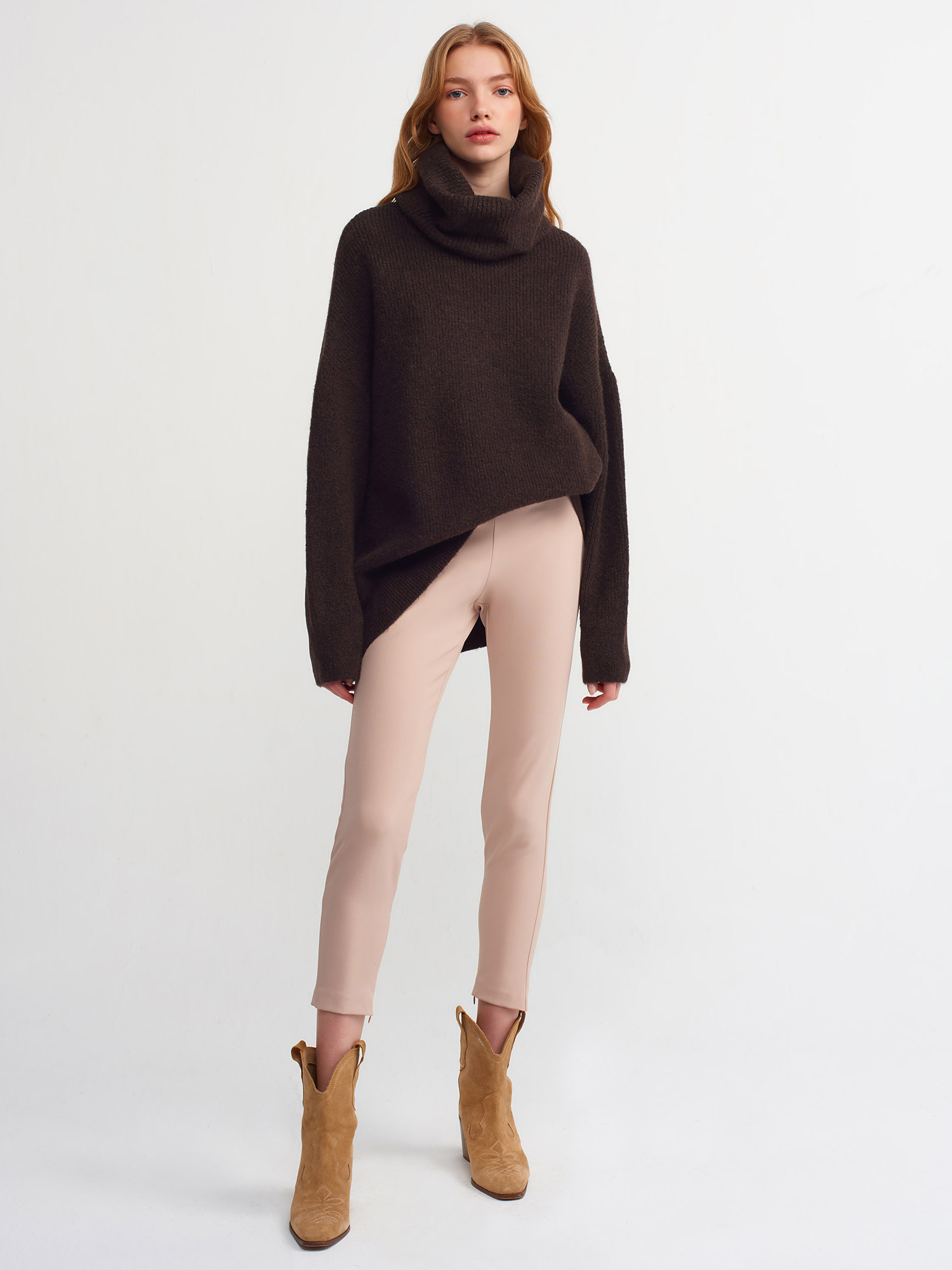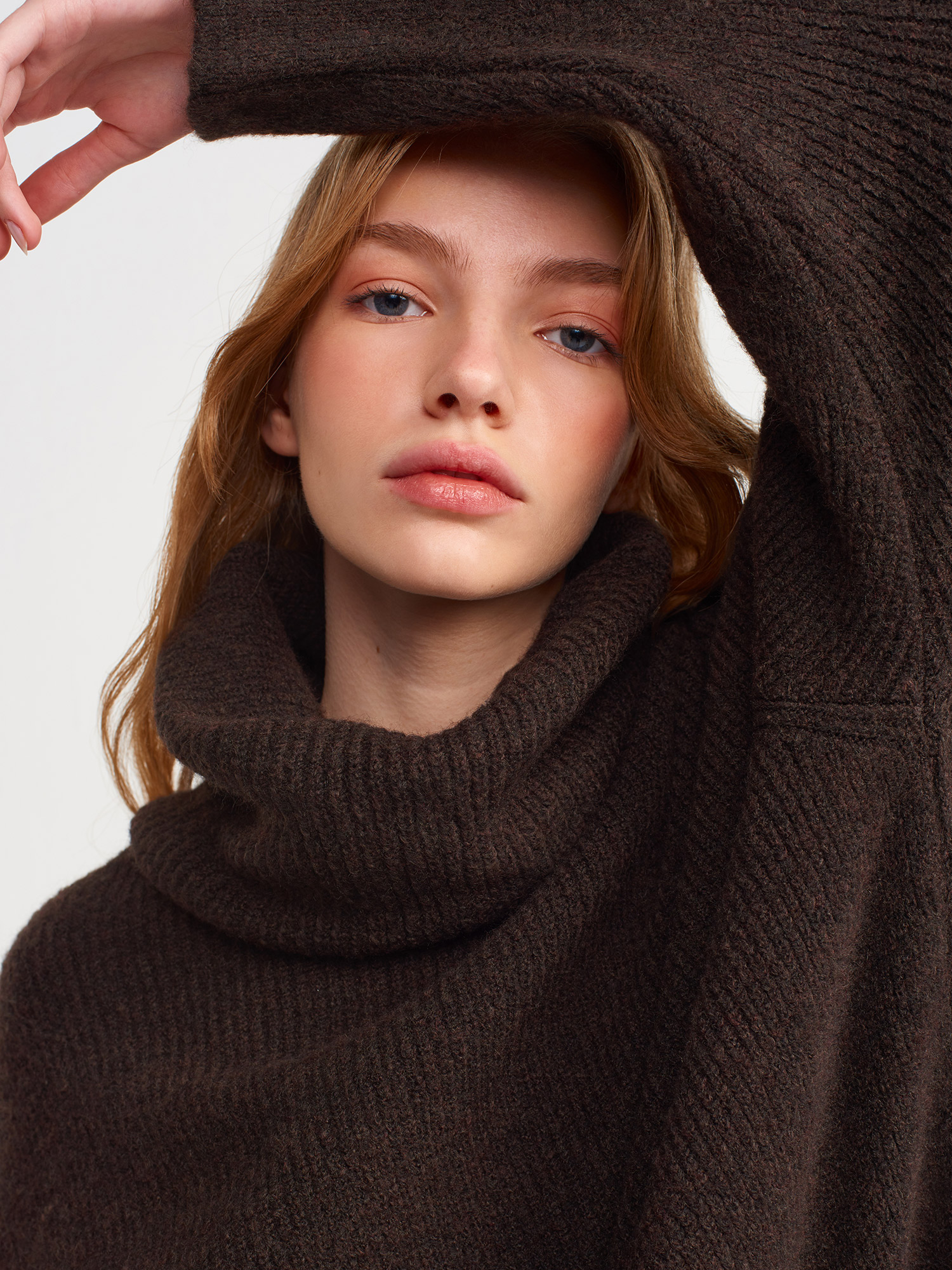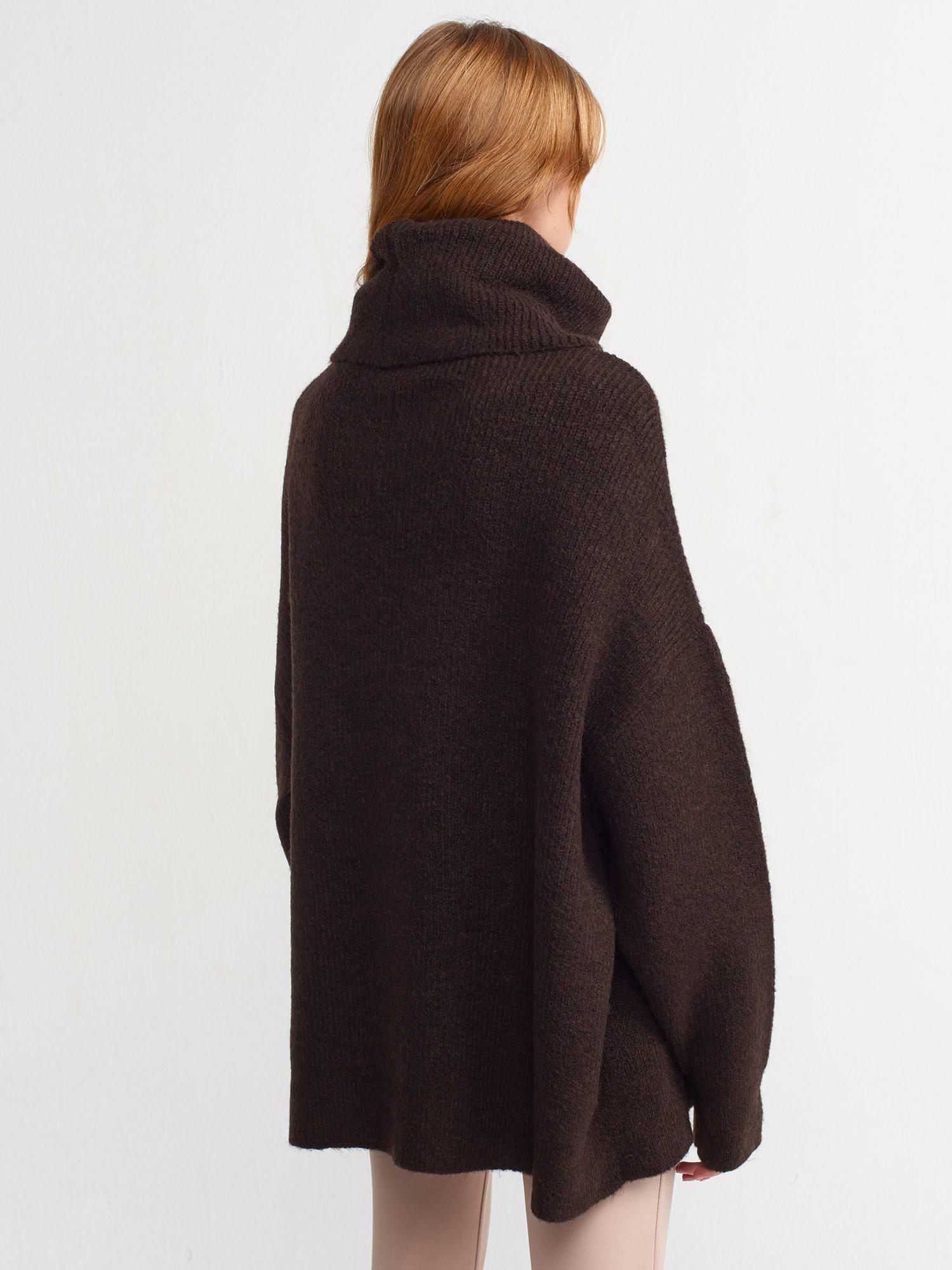 2268 Balıkçı Yaka Oversize Kazak-Koyu Kahve