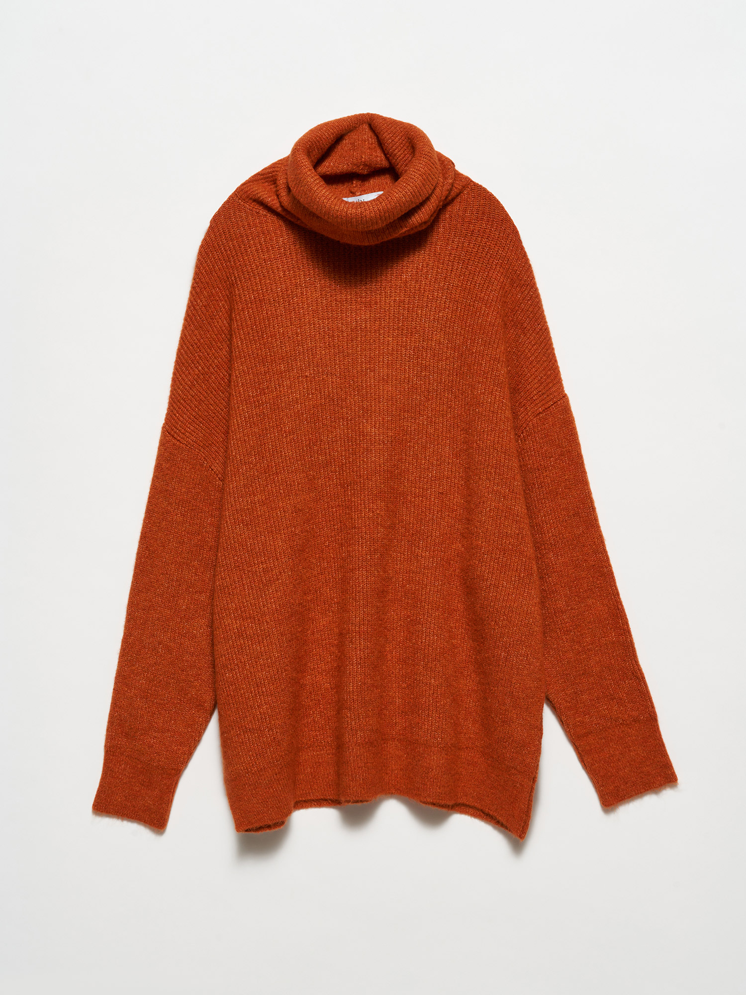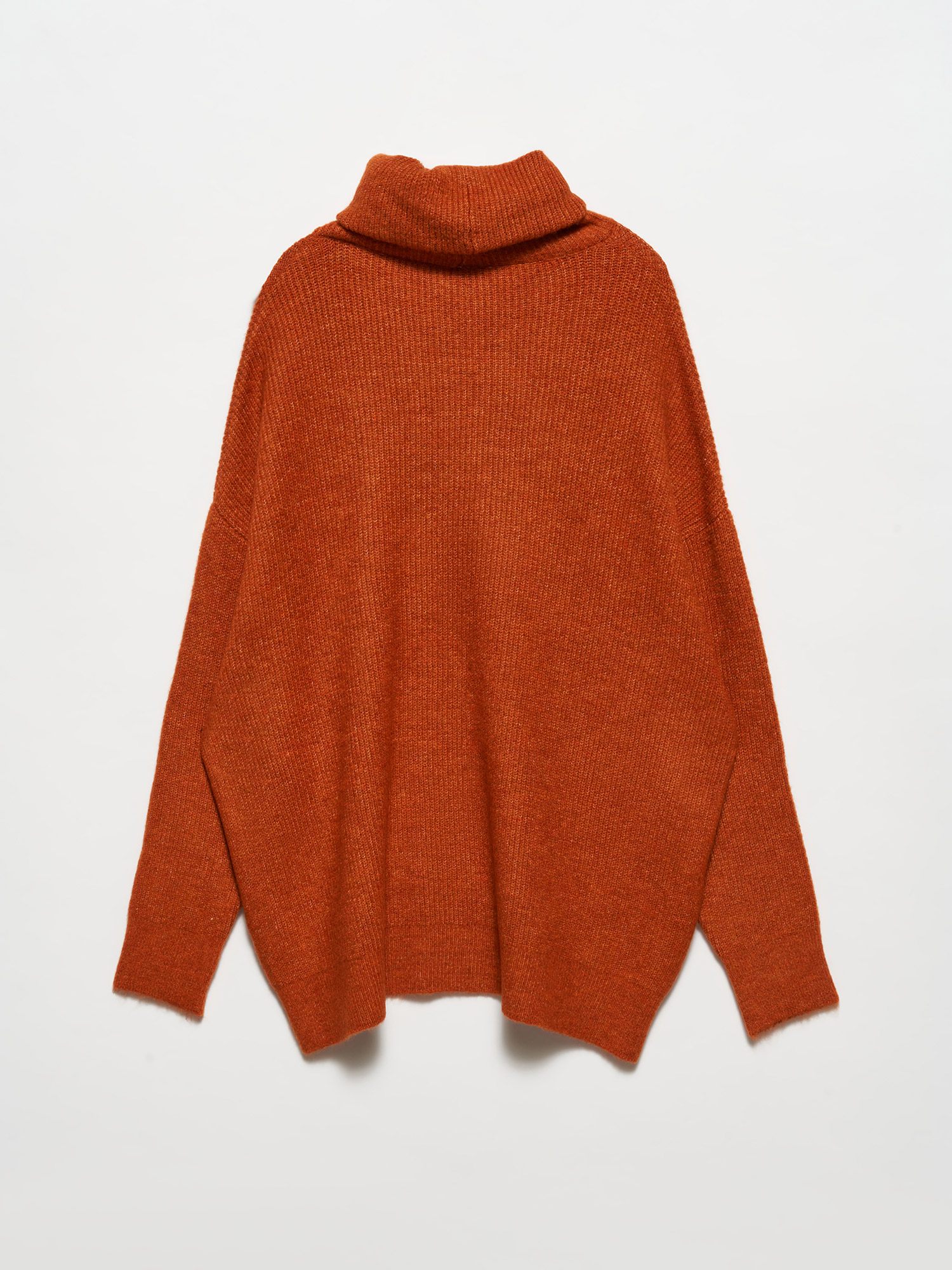 2268 Balıkçı Yaka Oversize Kazak-Y.Turuncu