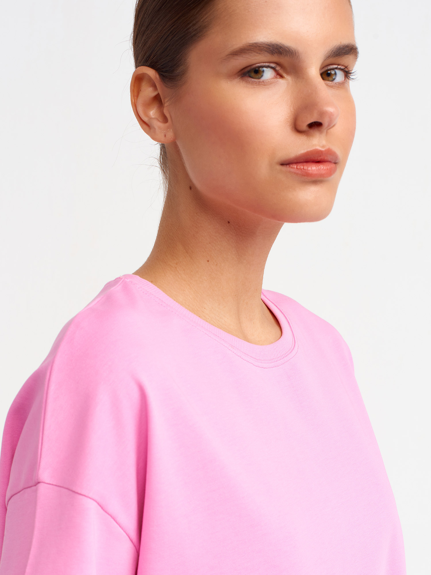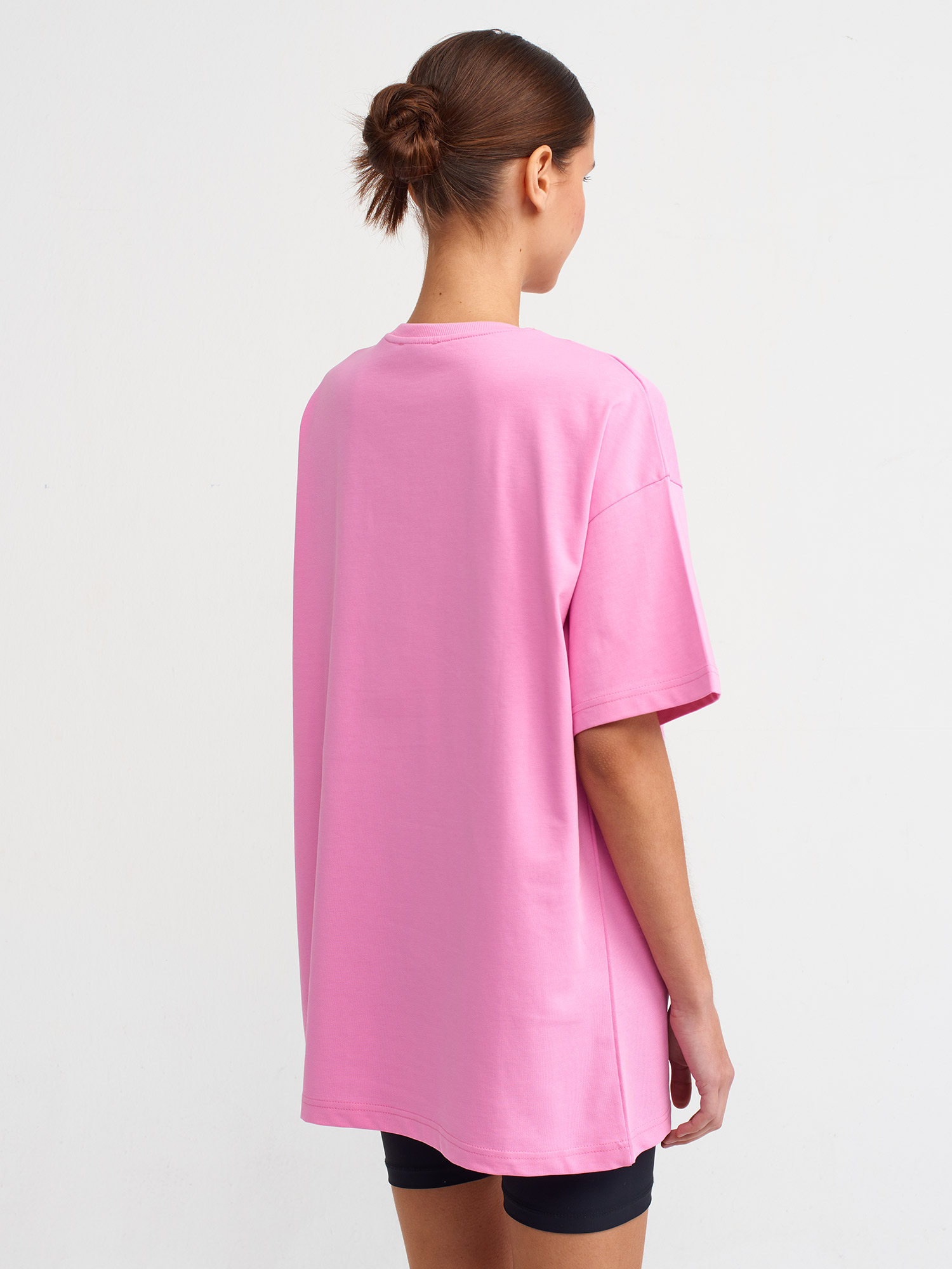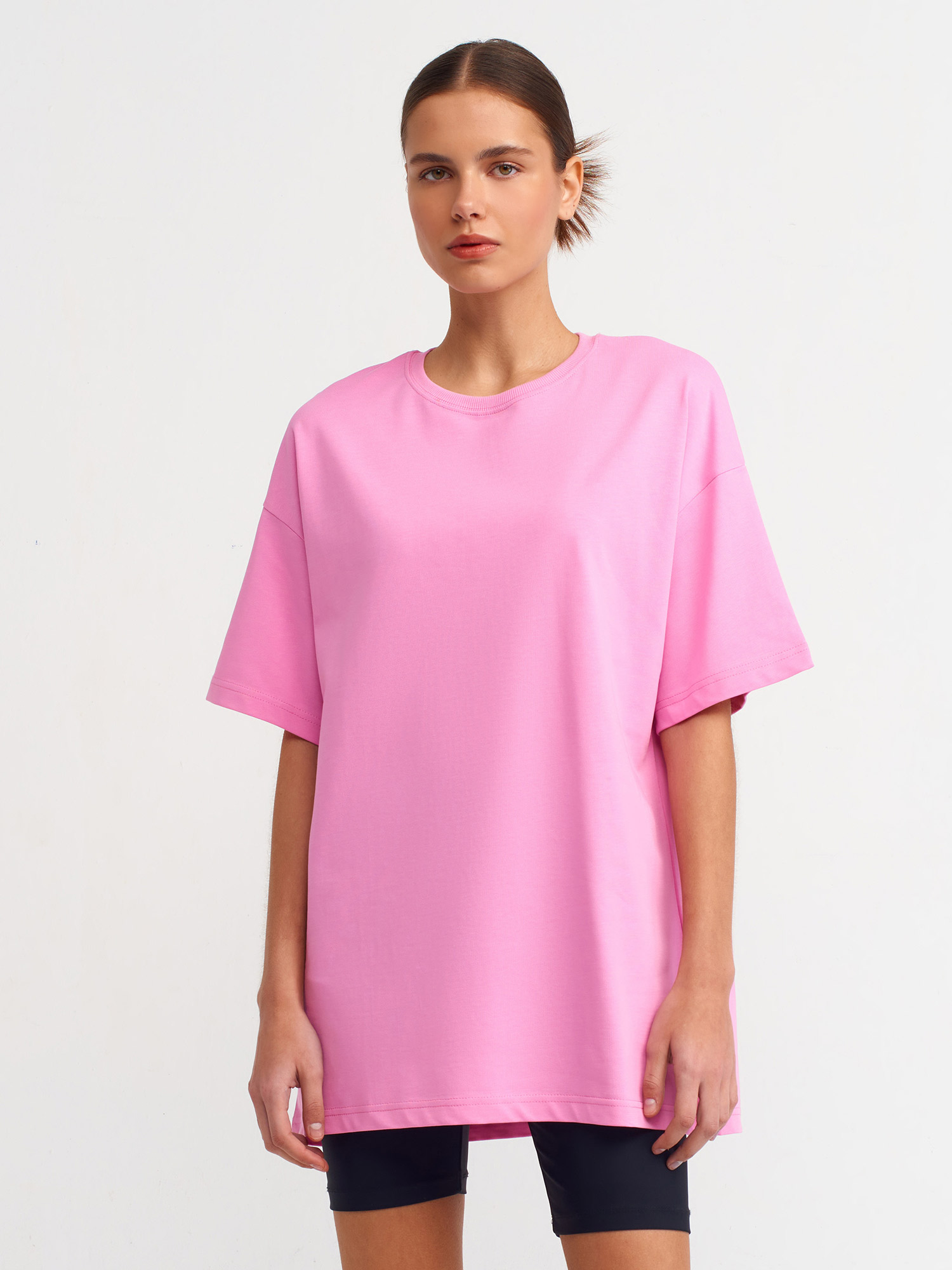 30310 Pamuklu Oversize T-Shirt-Pembe