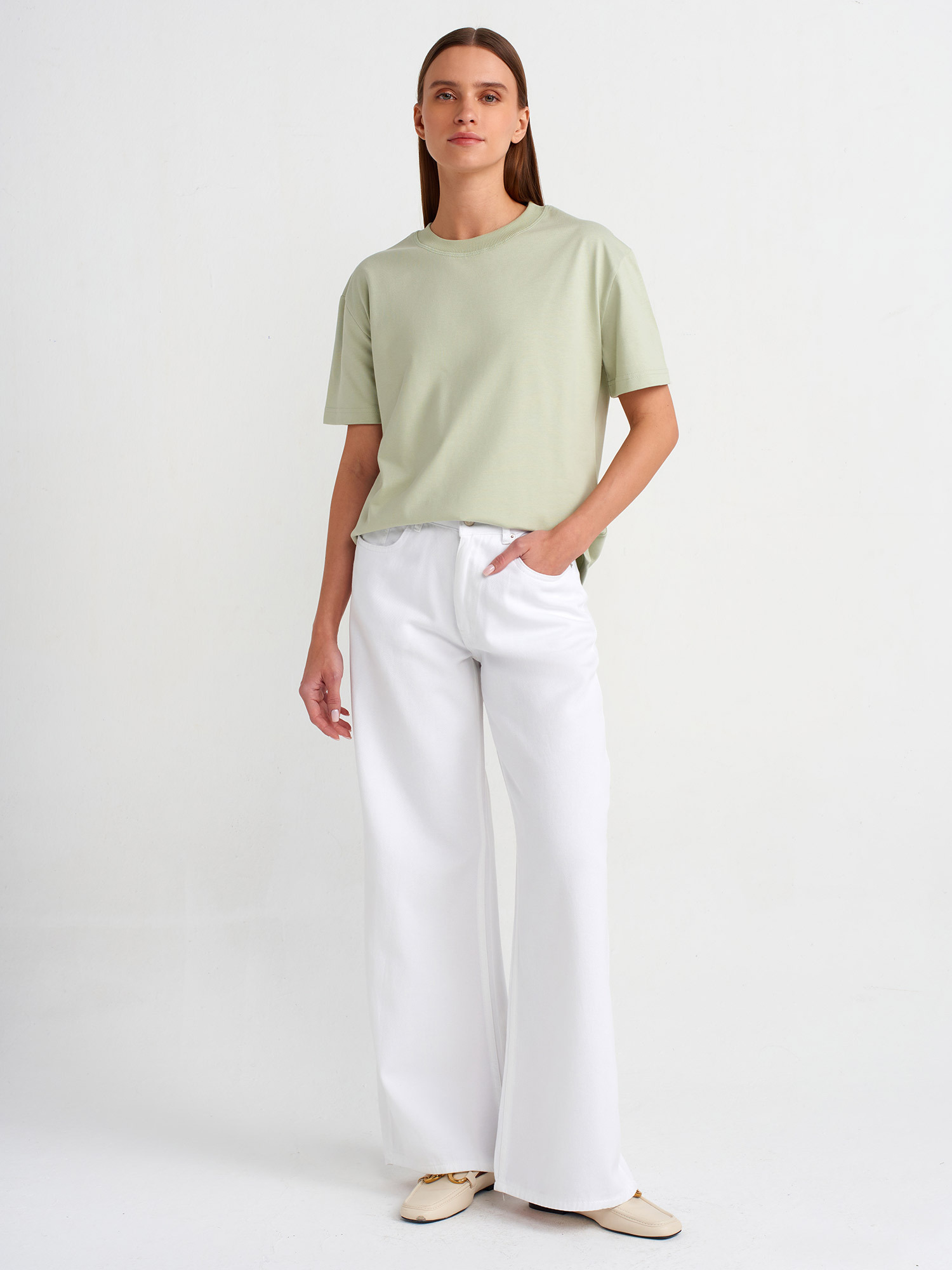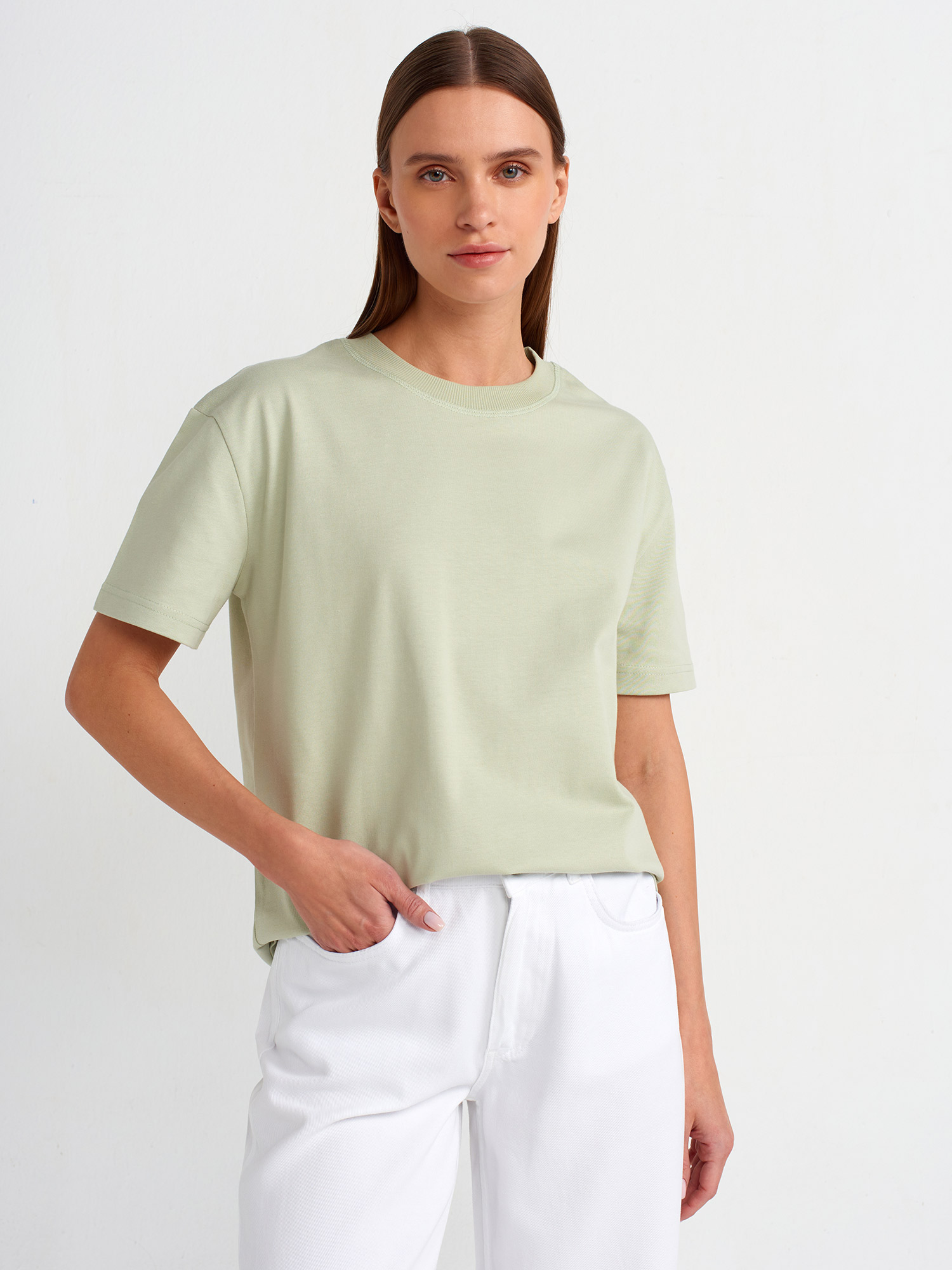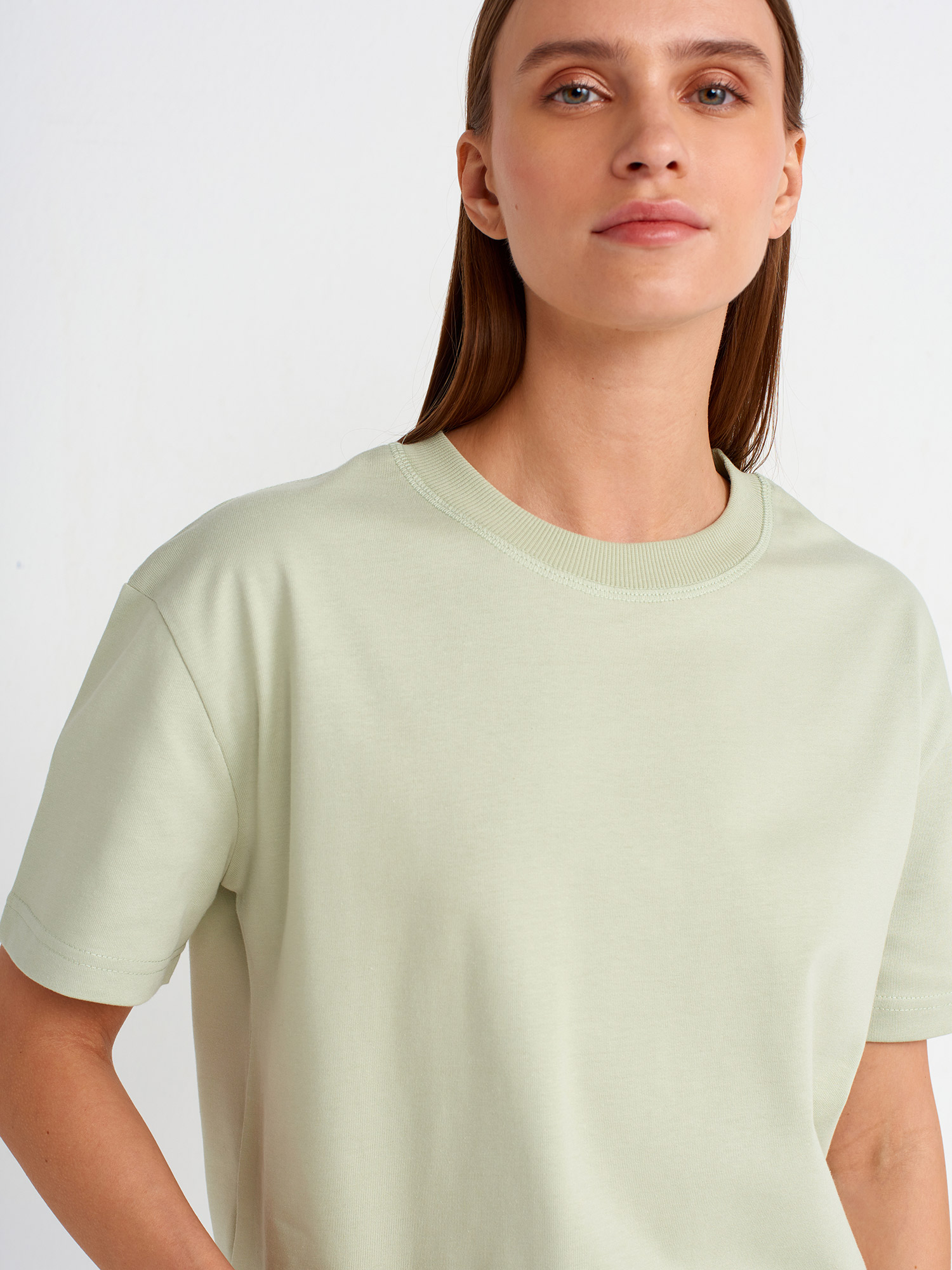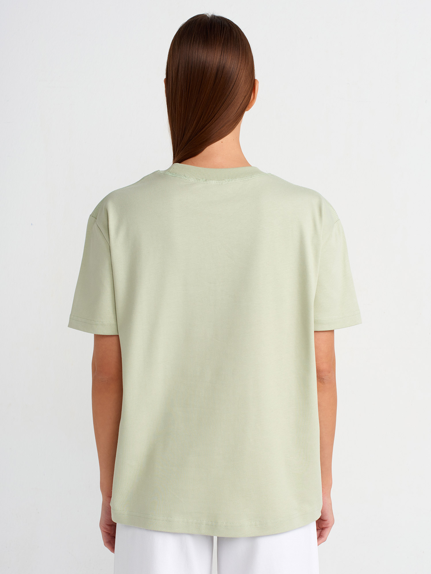 30312 Dekoratif Dikişli Bisiklet Yaka Tshirt-Mint