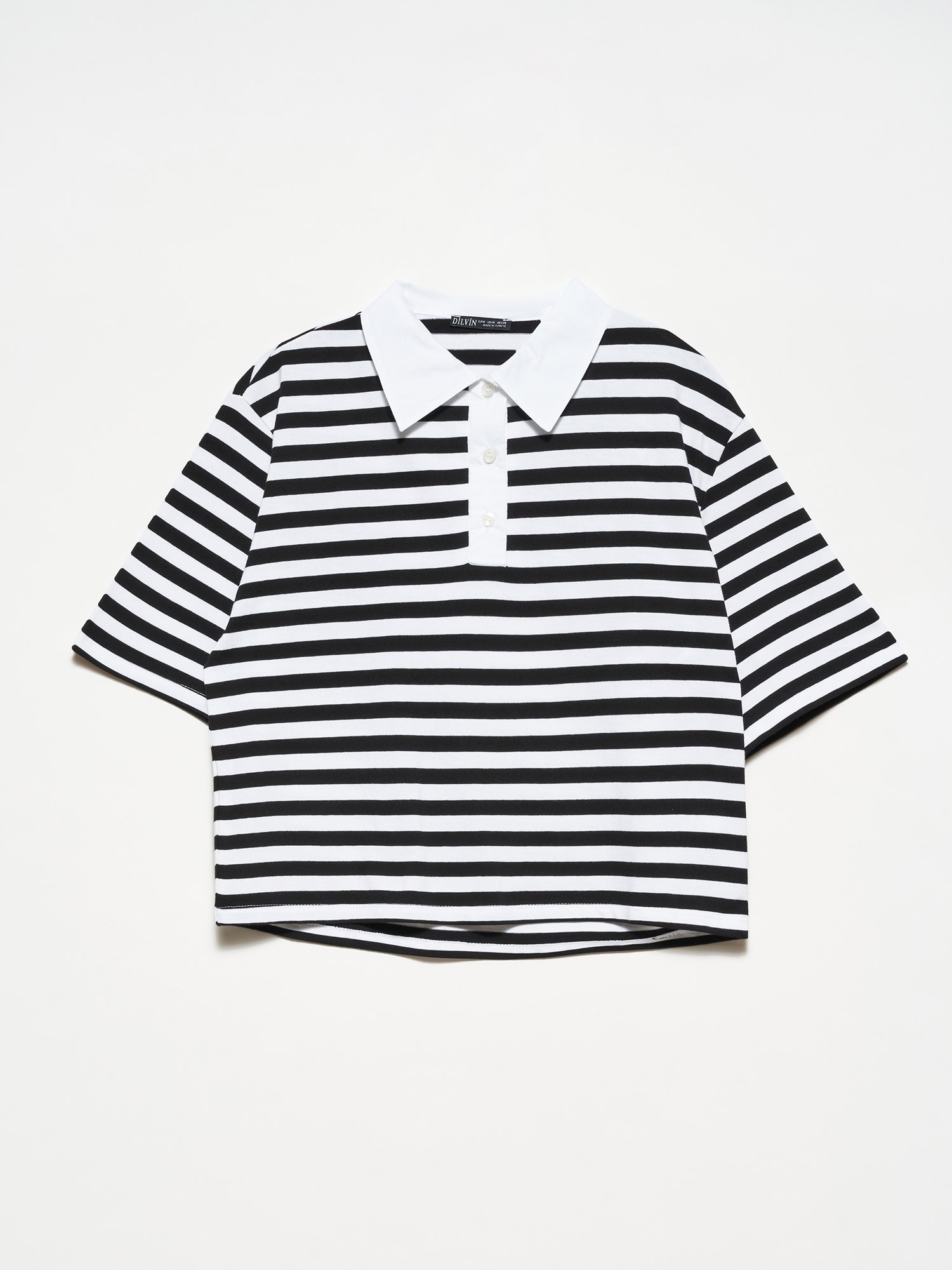 30333 Kısa Kollu Polo Çizgili Tshirt-Siyah