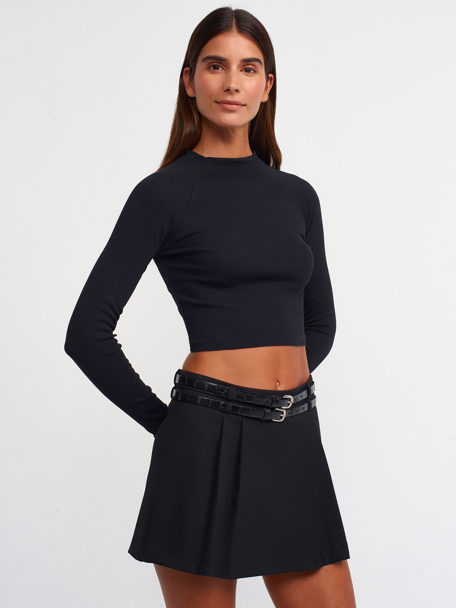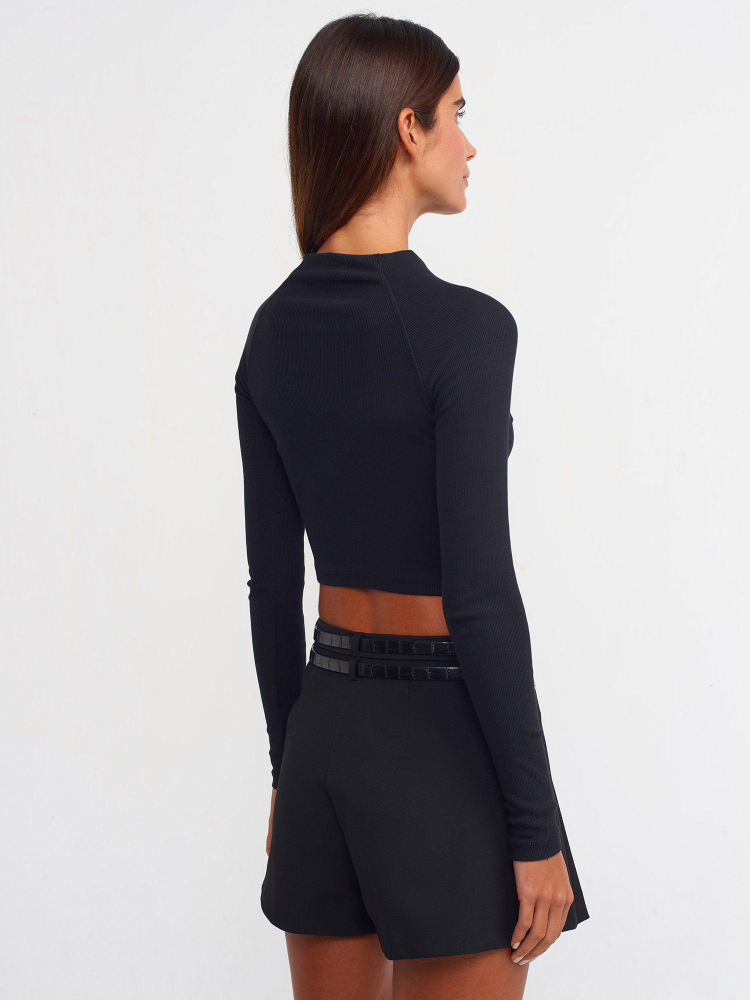 30452 Reglan Kol Uzun Kollu Top-Siyah