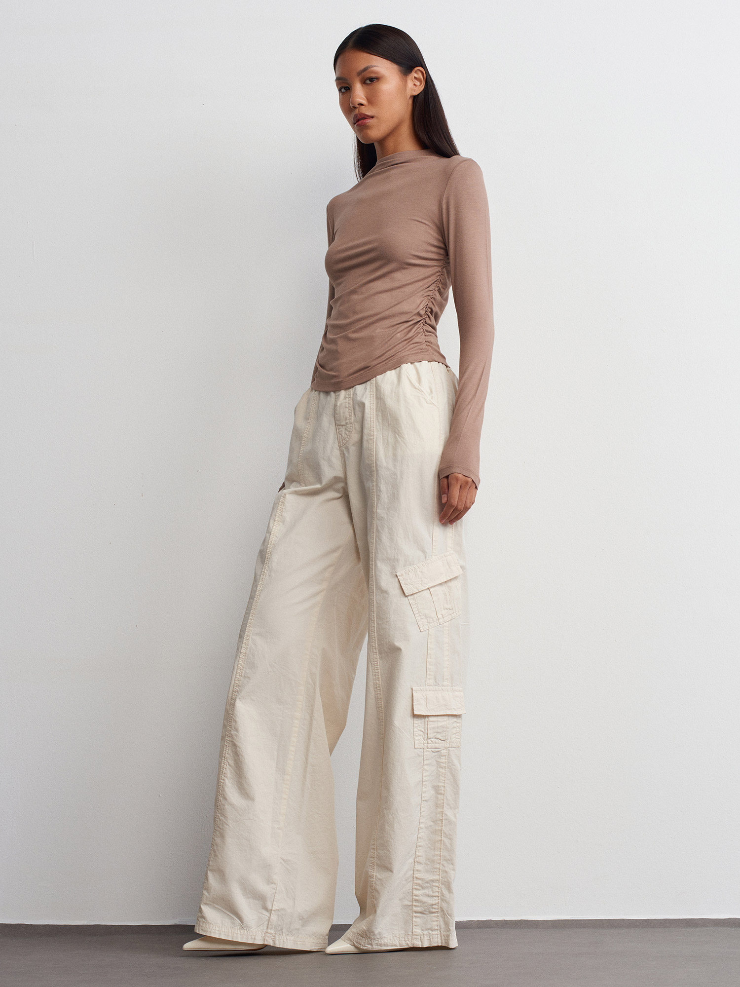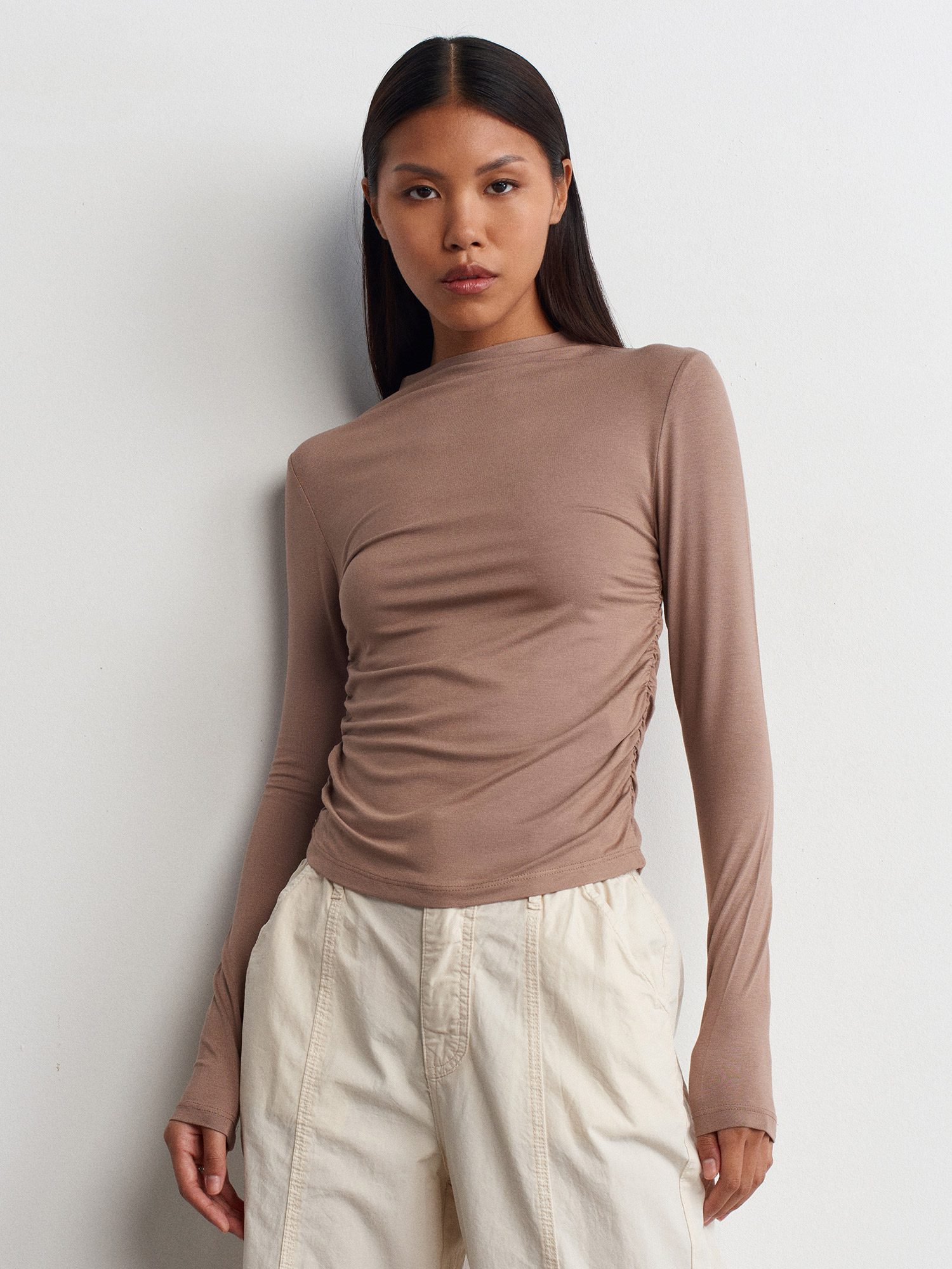 30504 Büzgülü Viskon Uzun Kollu Top-Vizon
