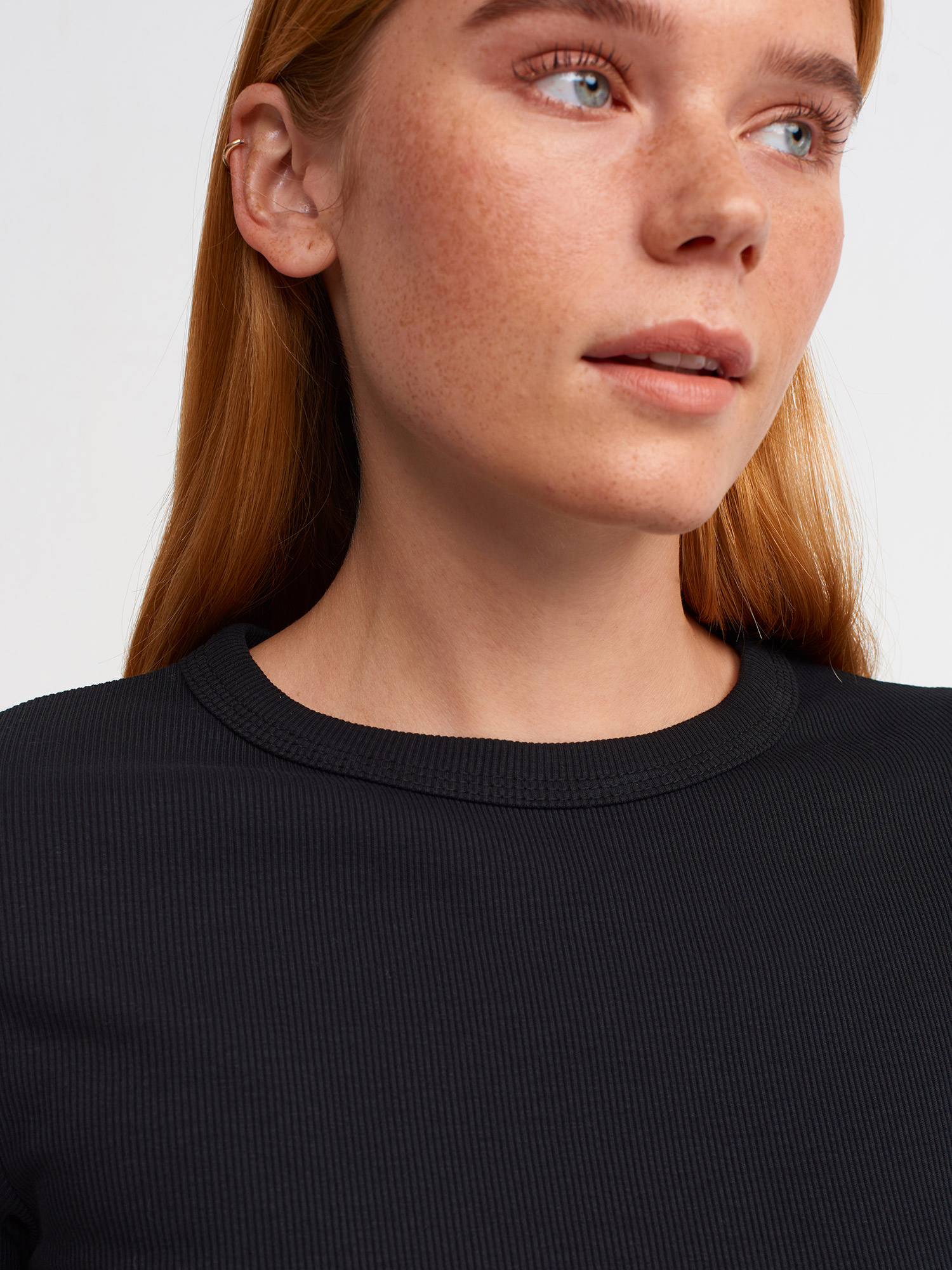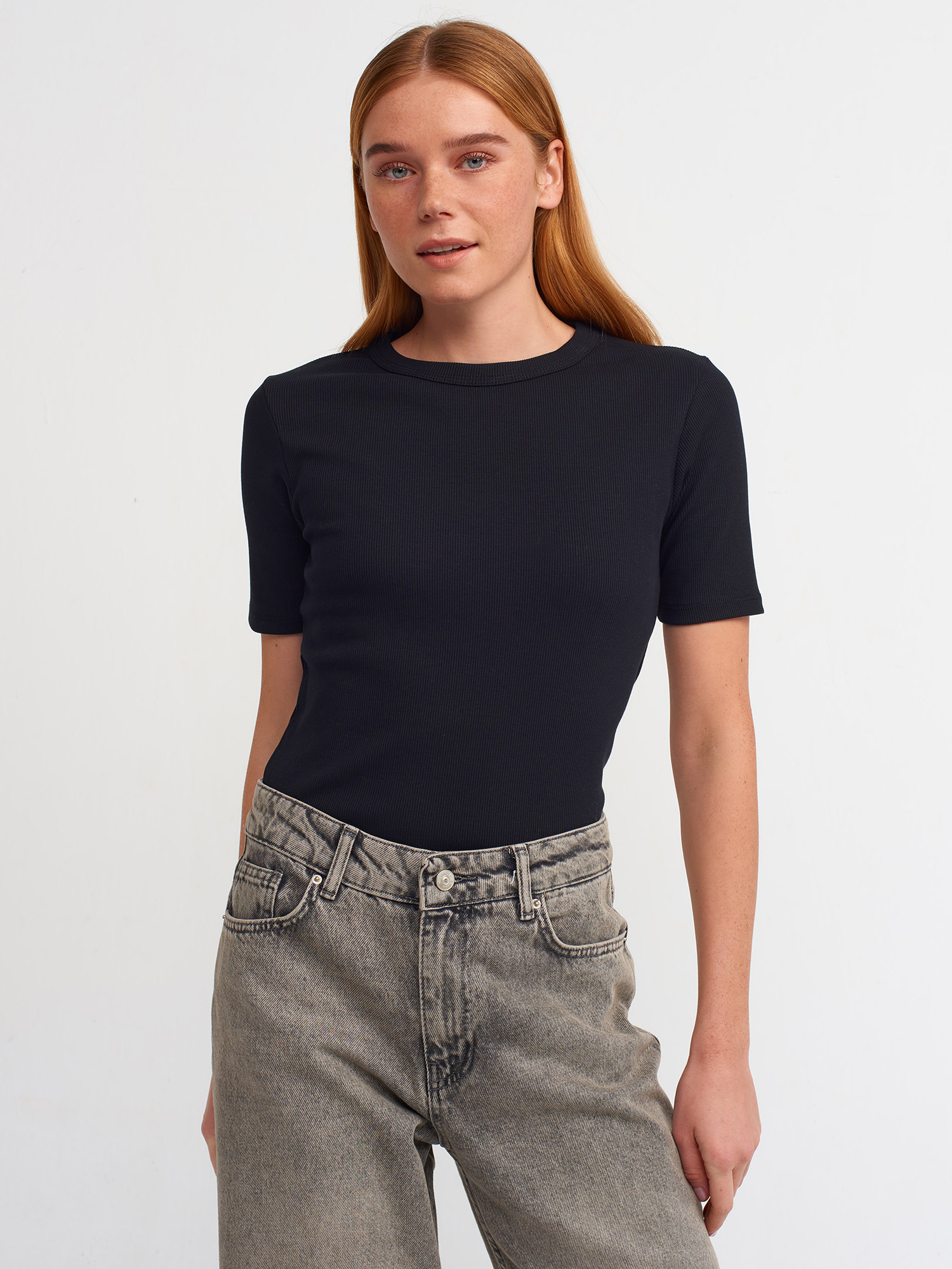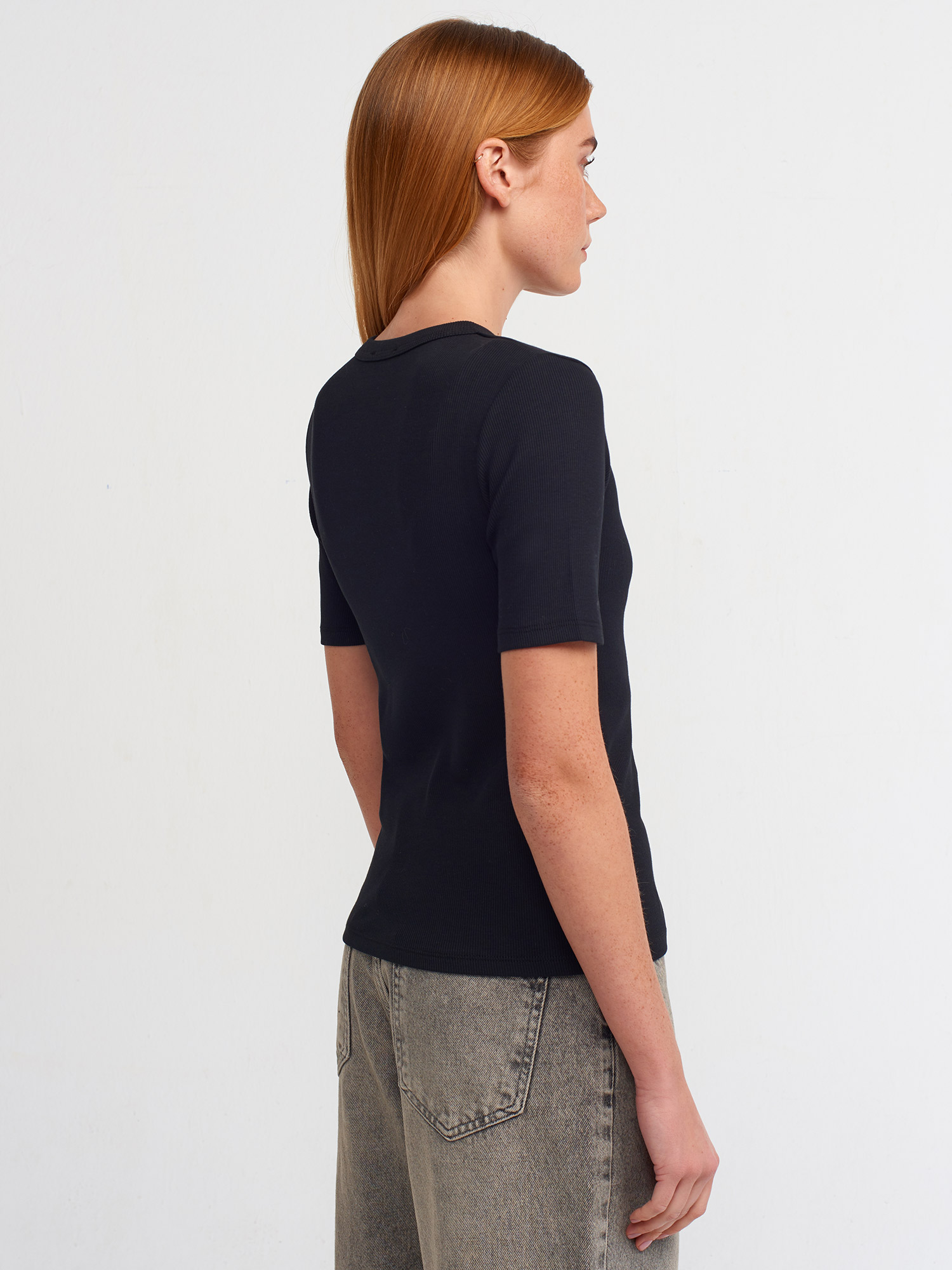 30583 Bsiklet Yaka Pamuklu Tshirt-Siyah