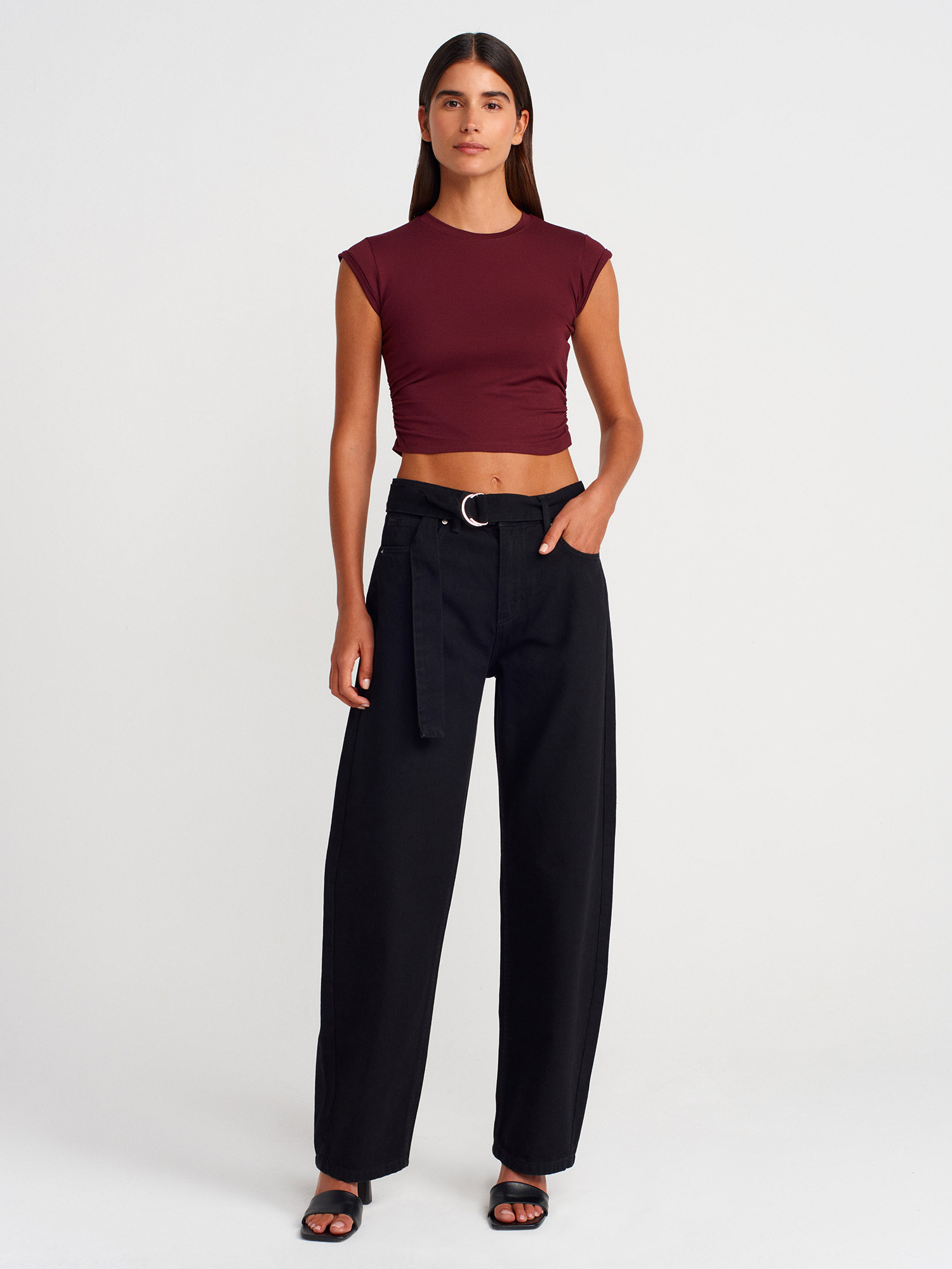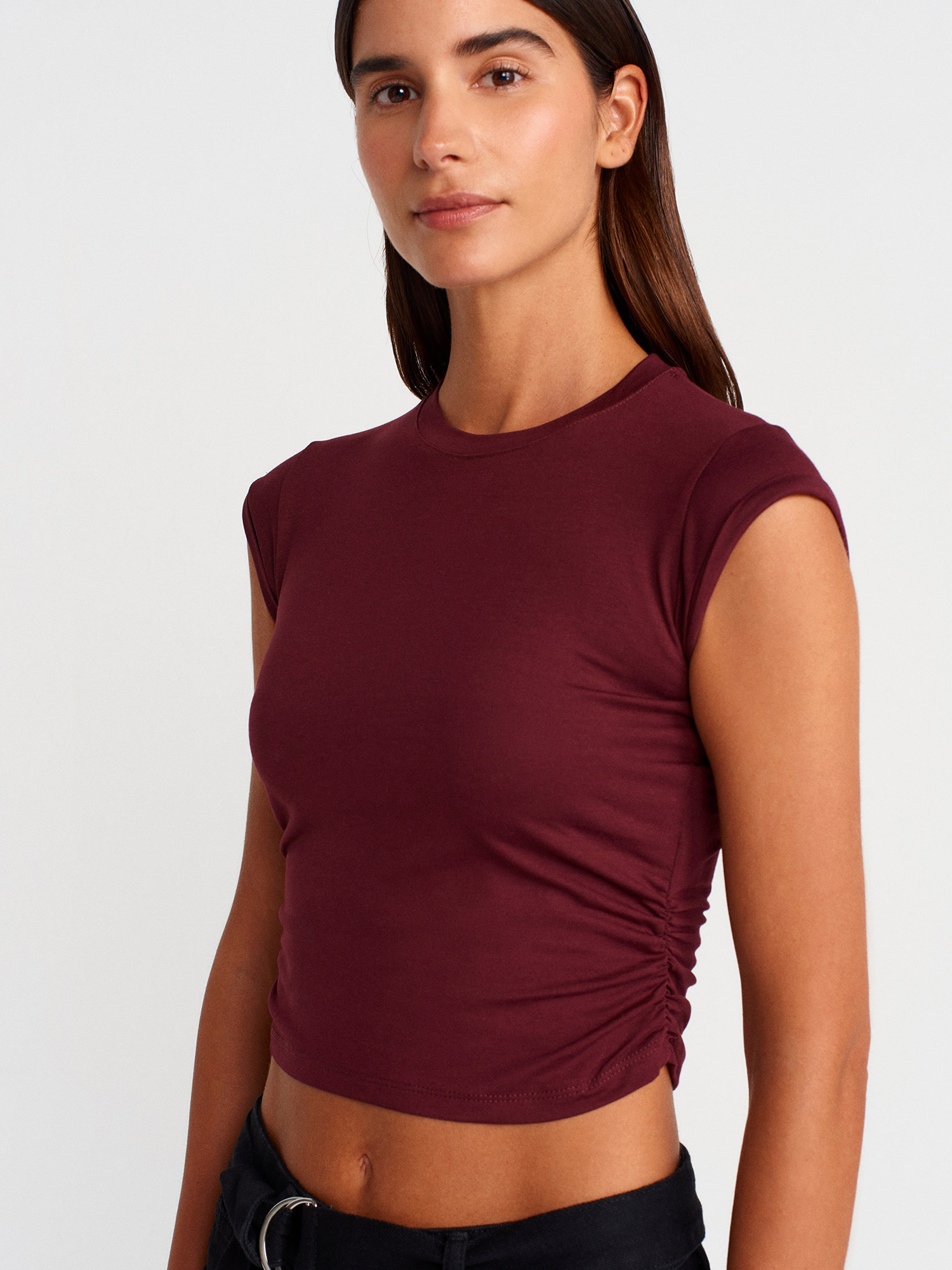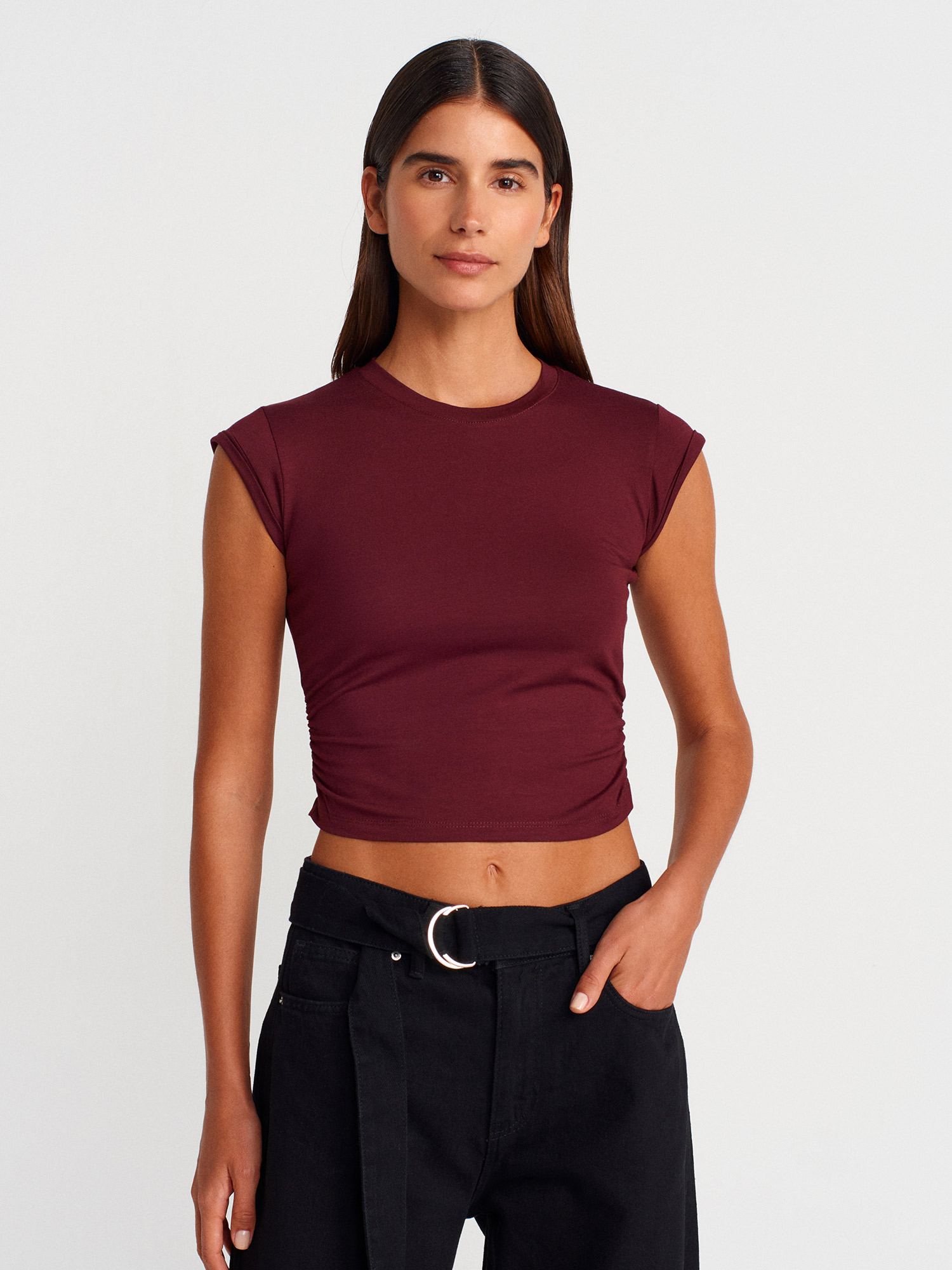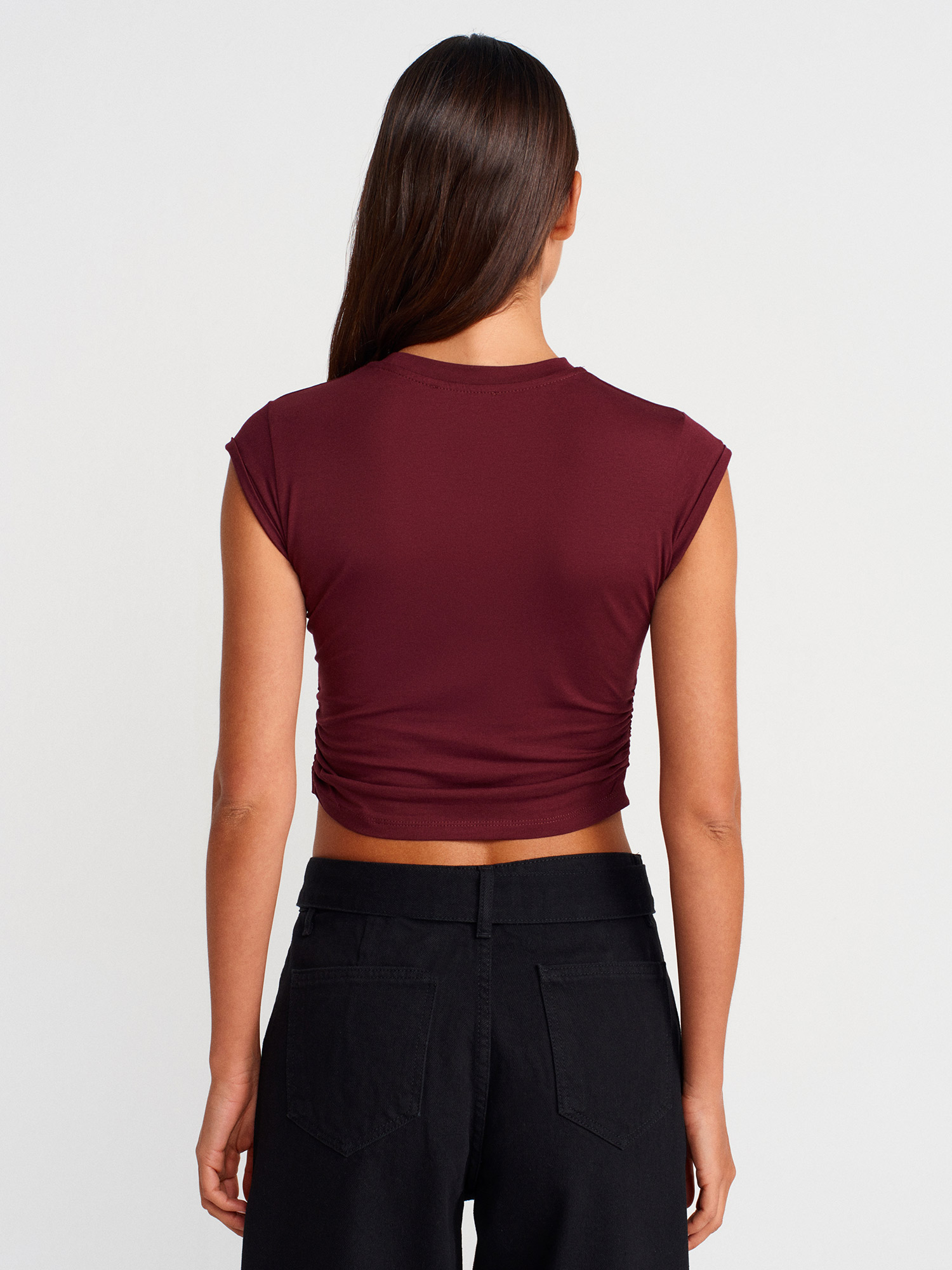 30899 Yanları Büzgü Detaylı Top-Bordo