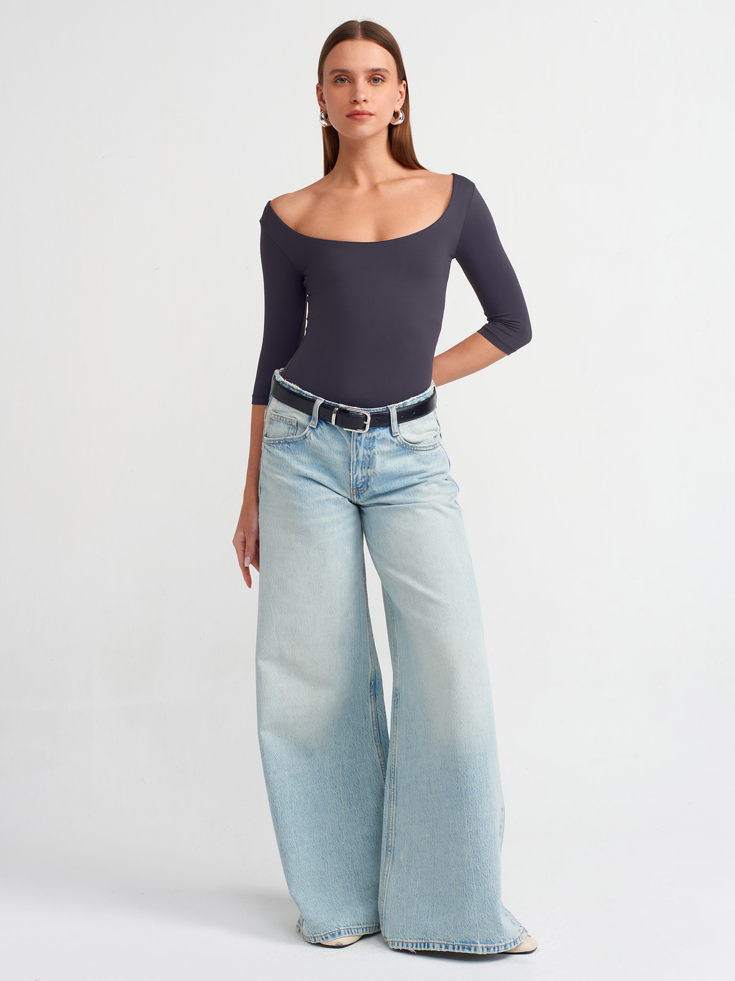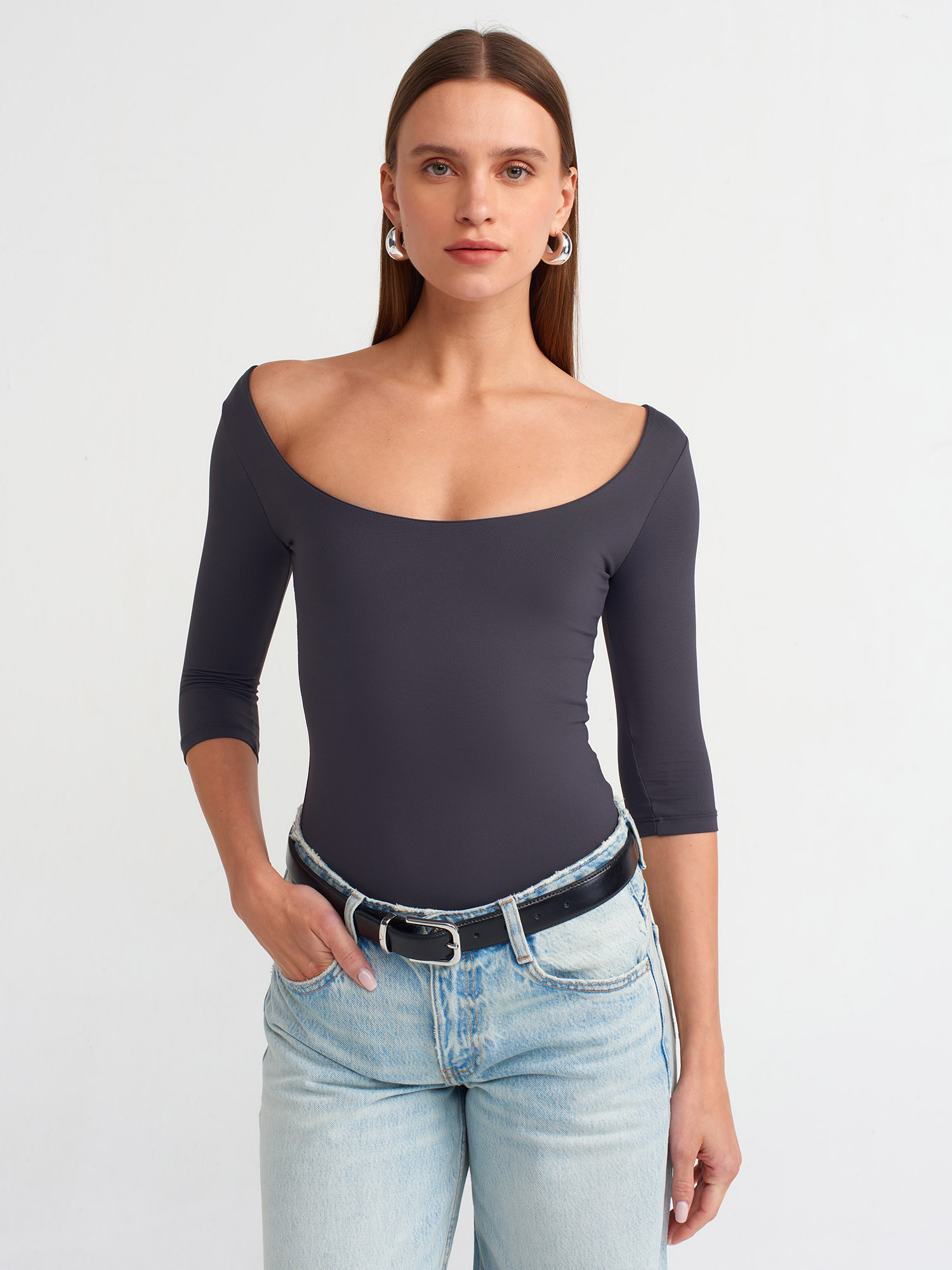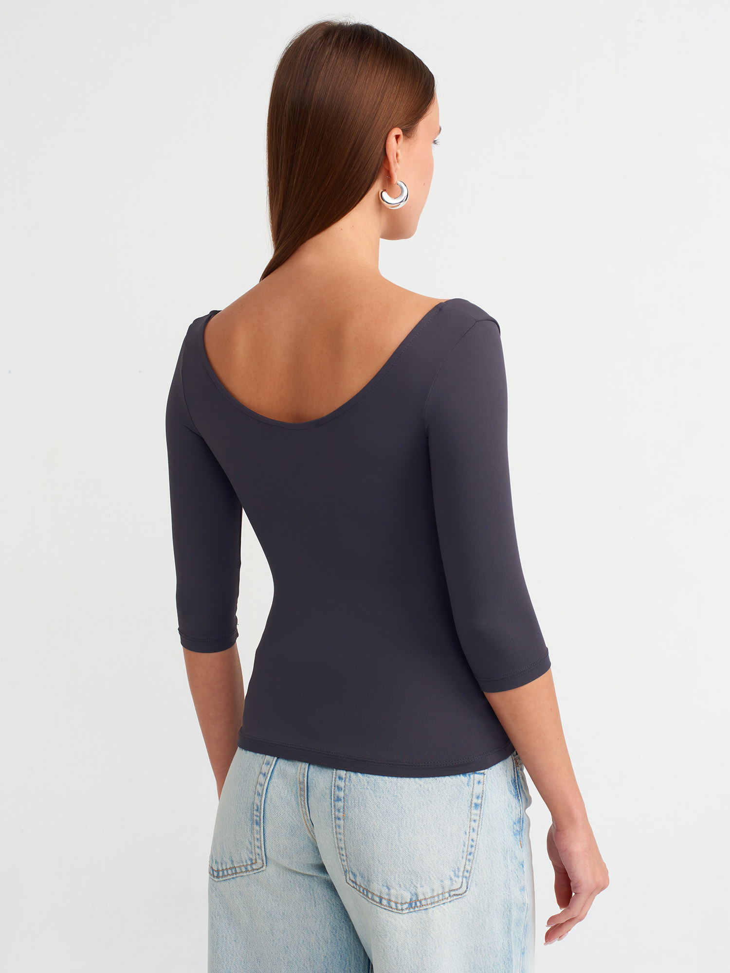 30900 Kayık Yaka Poliamid T-shirt-Antrasit