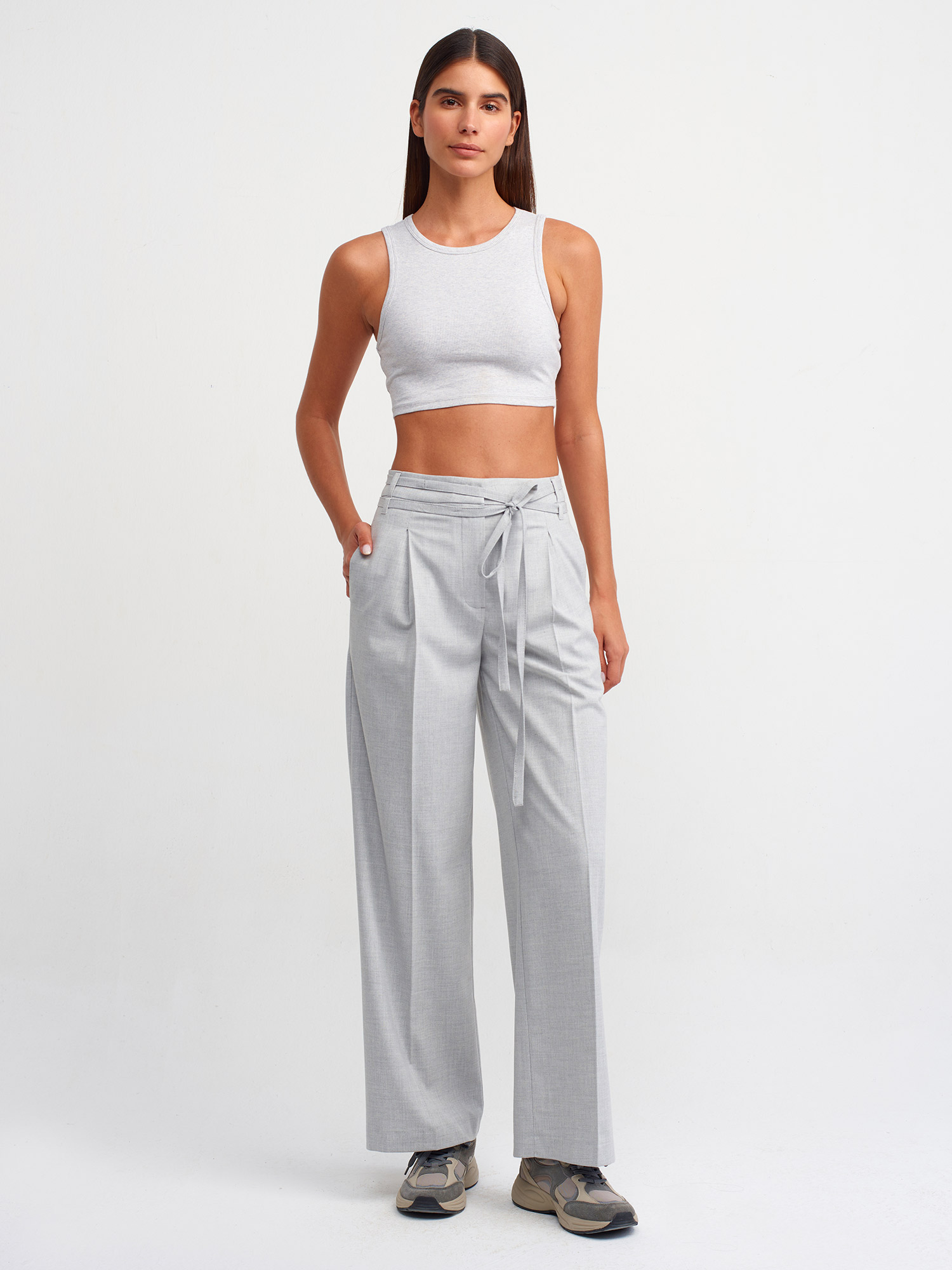 30962 Dikiş Detaylı Crop Top-Gri Melanj