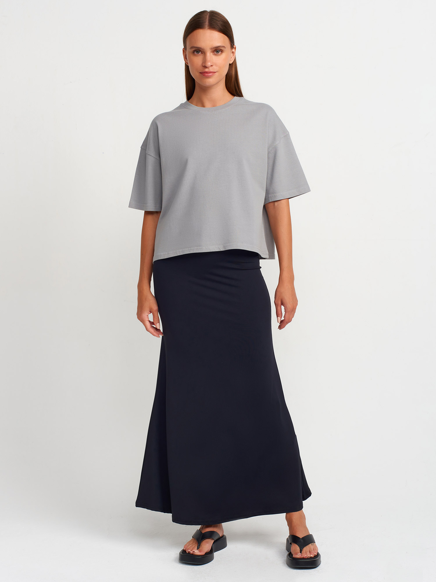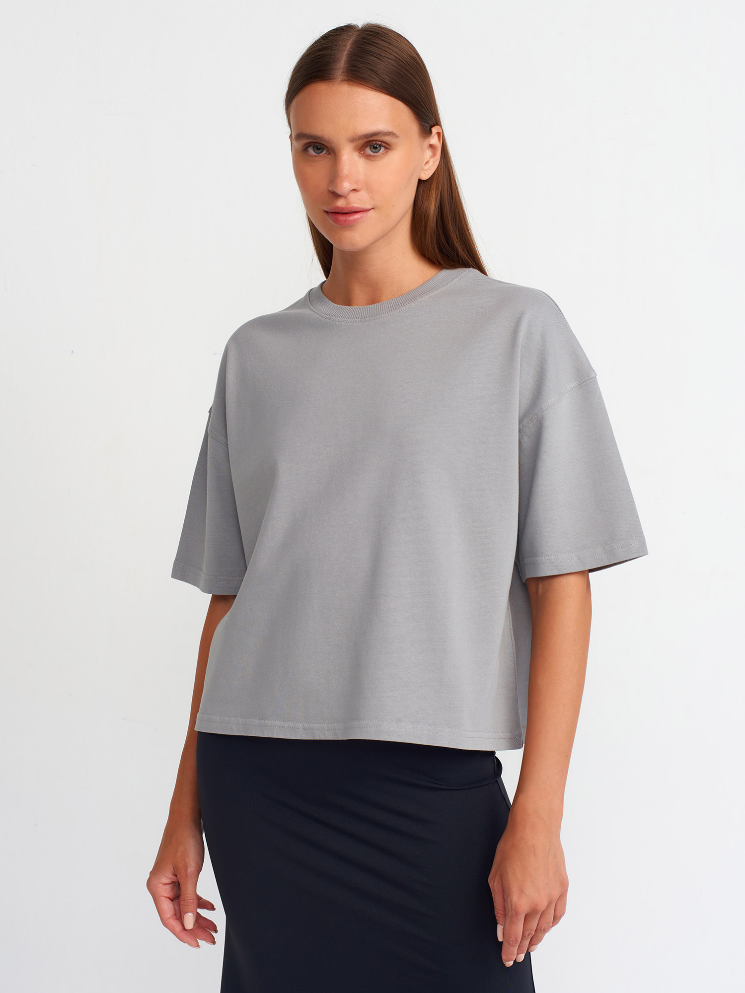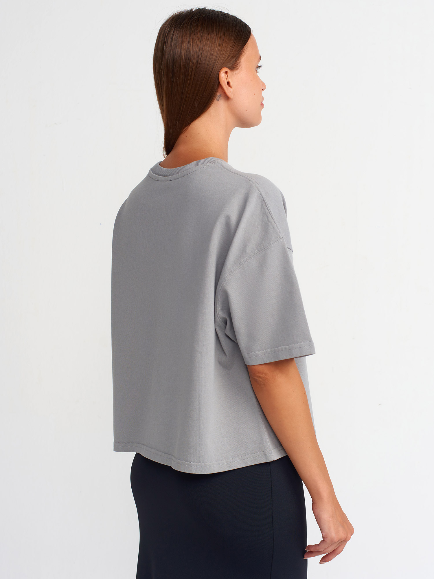 31017 %100 Pamuk Kısa Kollu Pamuklu T-shirt-Gri