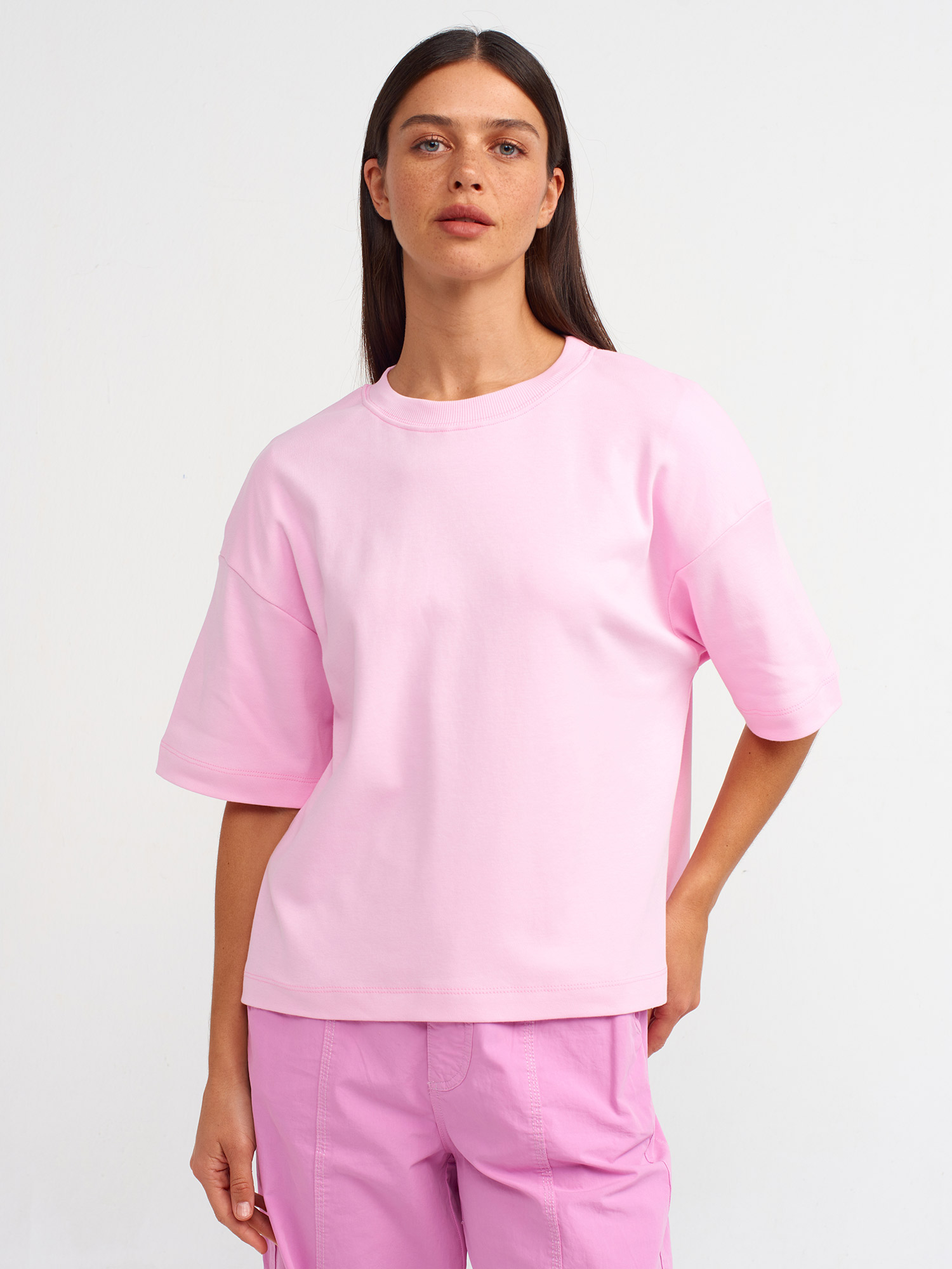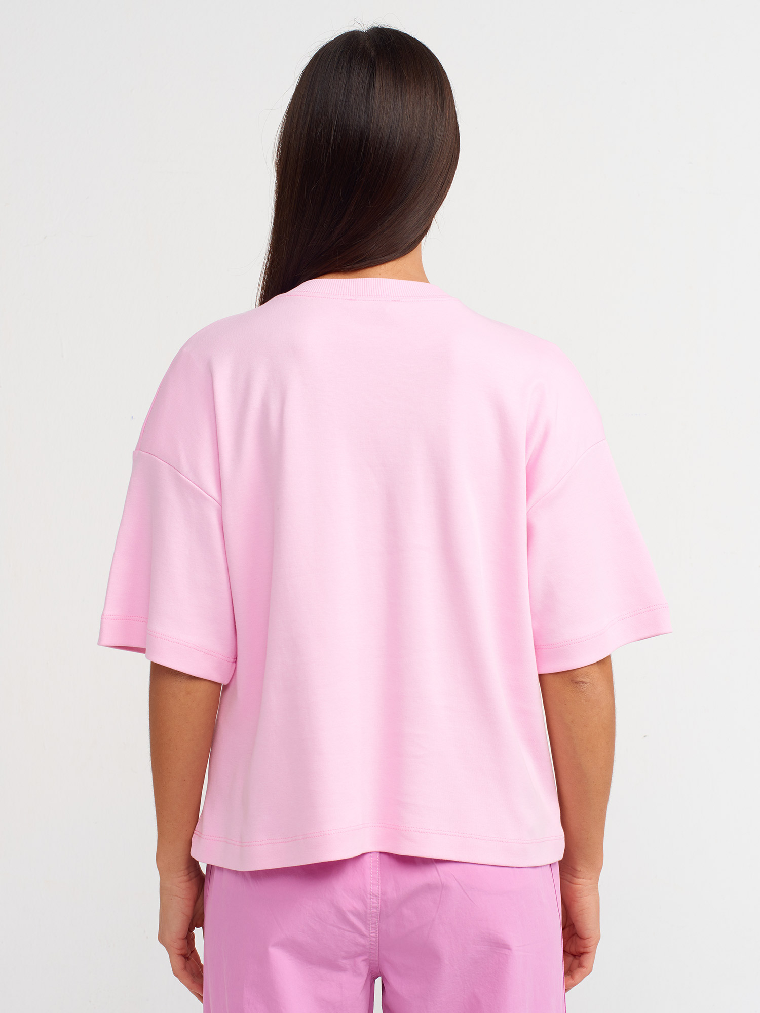 31067 Pamuklu Vatkalı T-shirt-Pembe