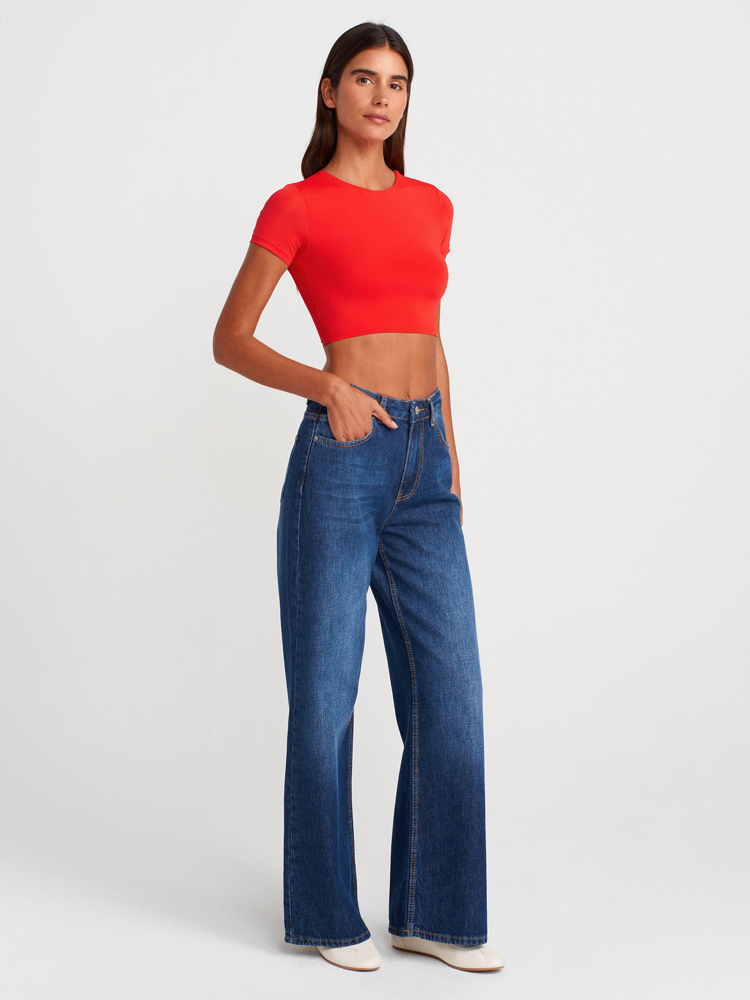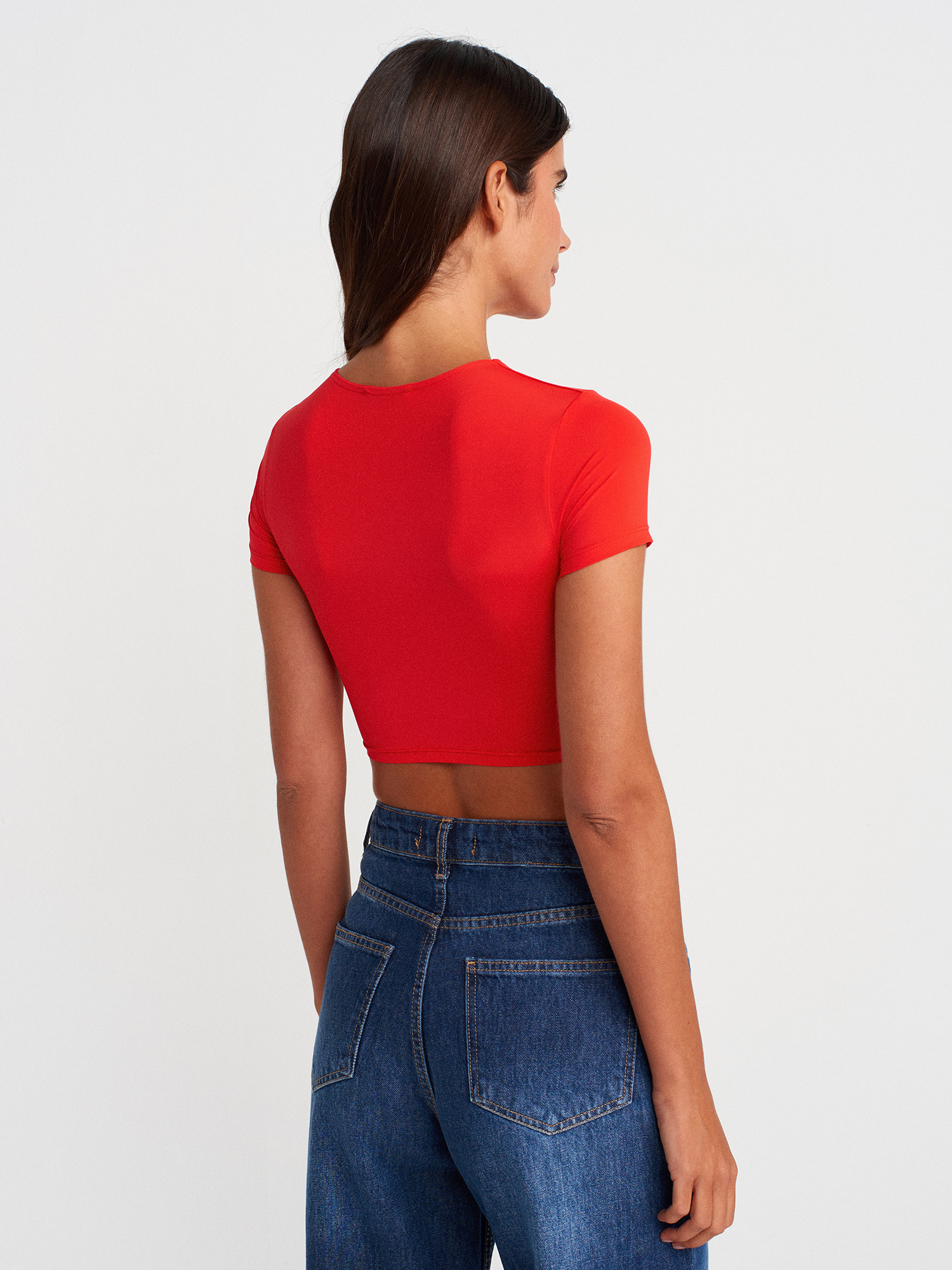 31175 Bisiklet Yaka Crop Top-K.Kırmızı