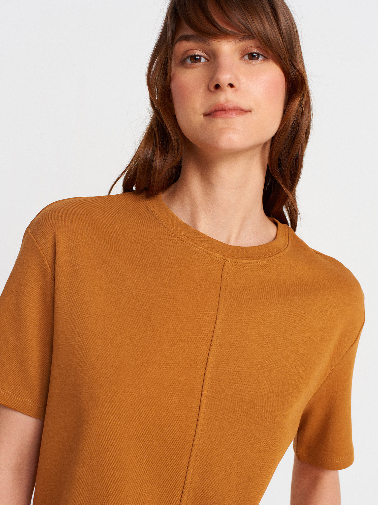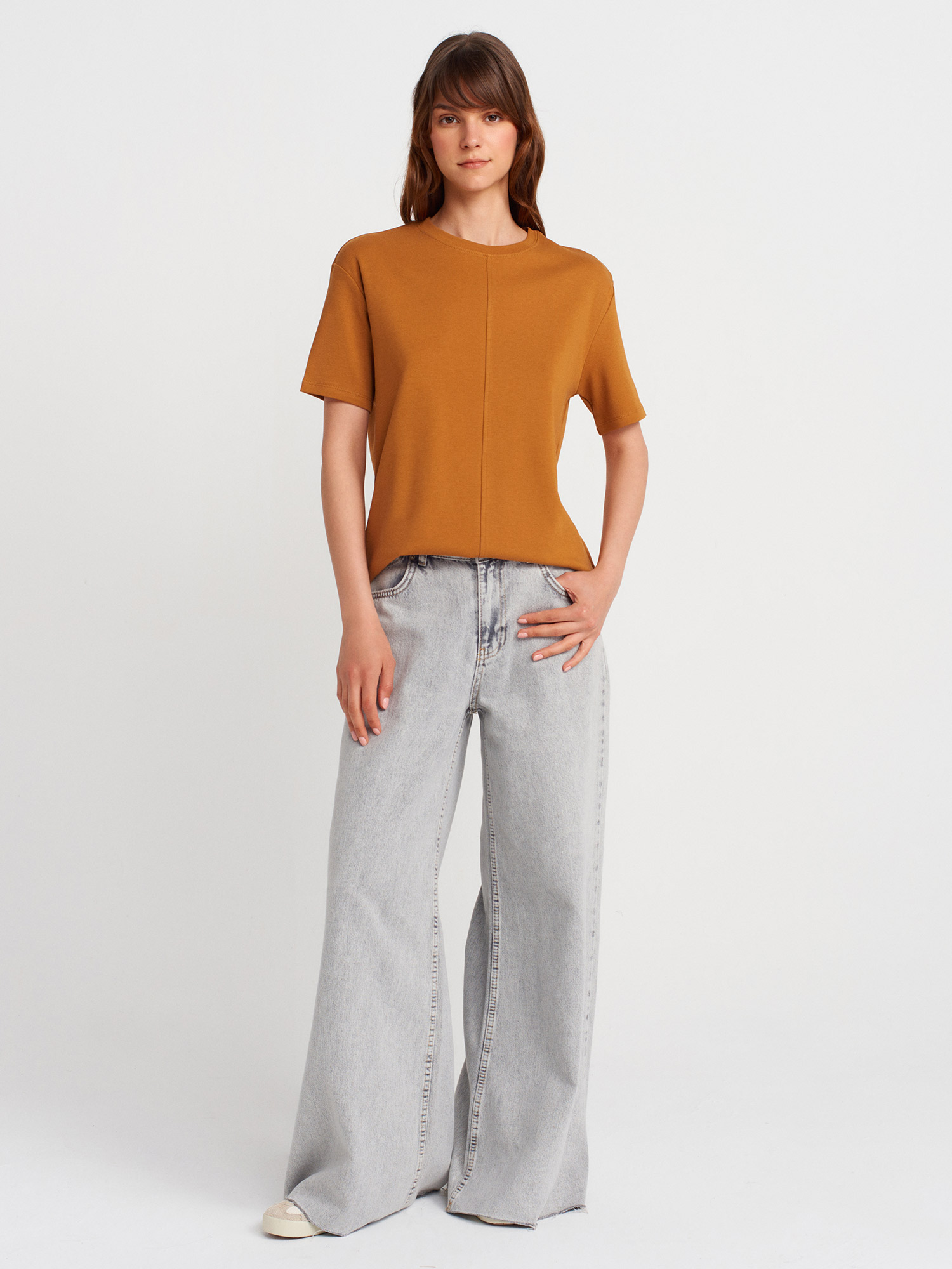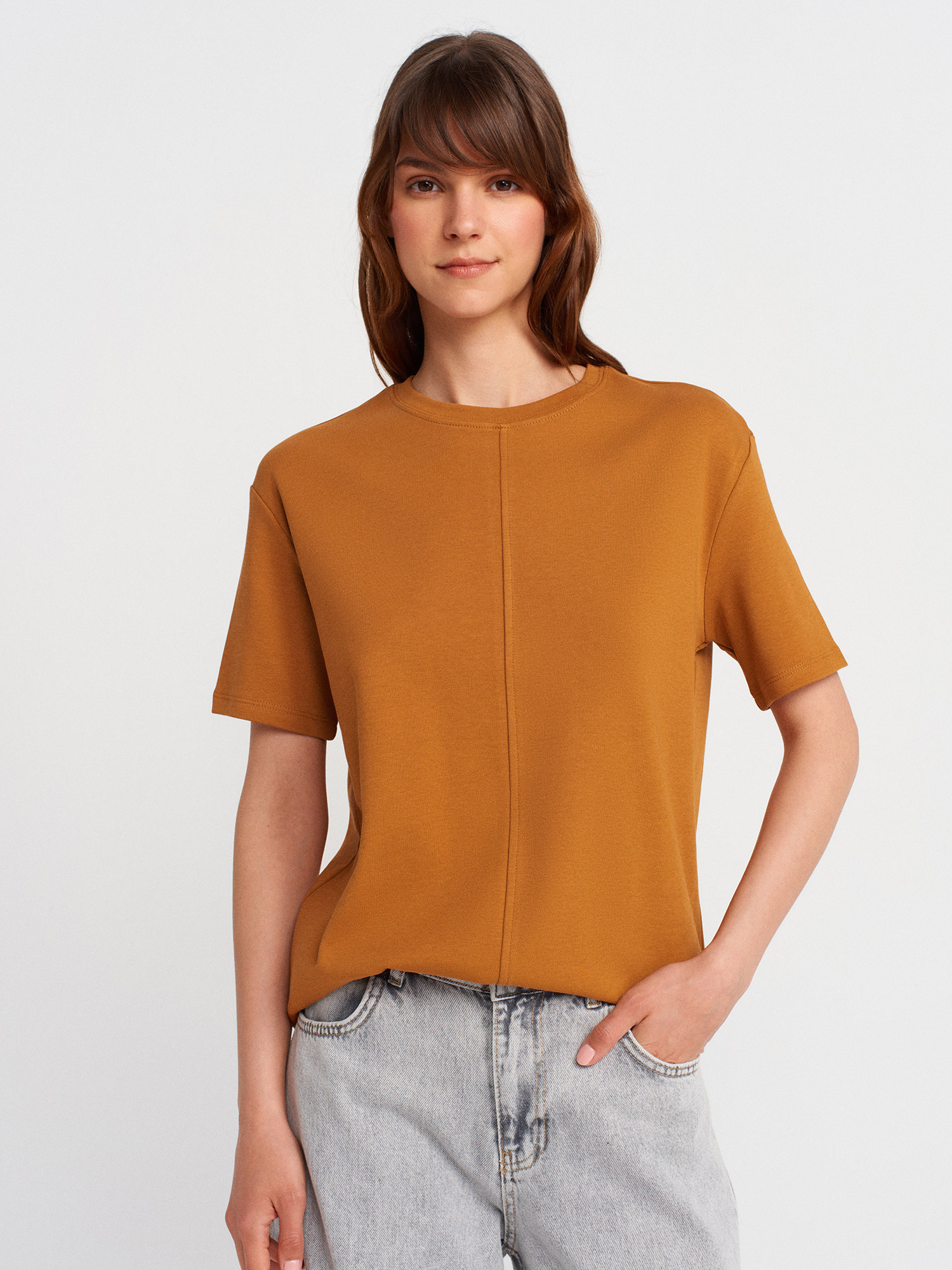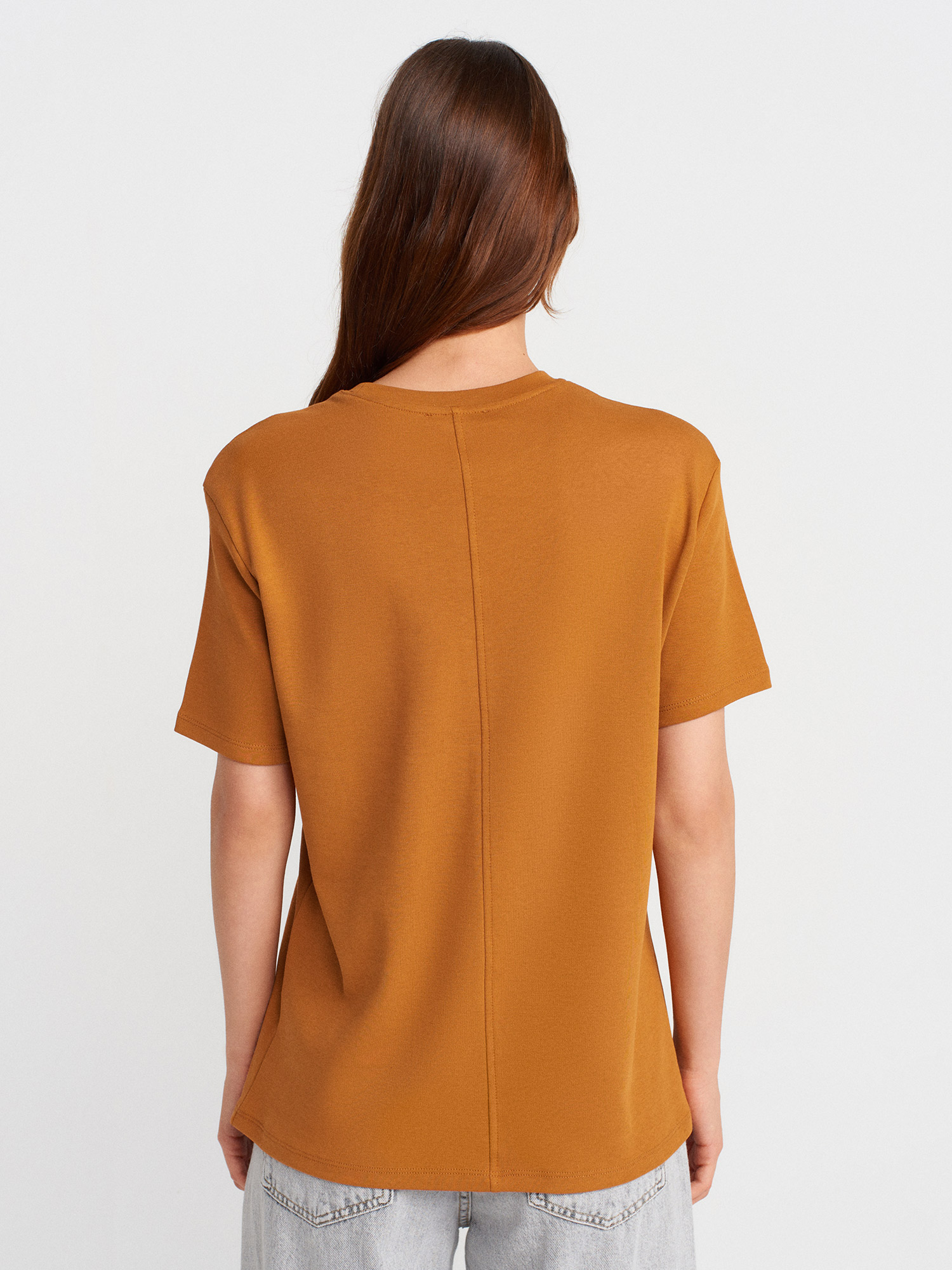 31218 Dikiş Detaylı T-shirt-A.Kiremit