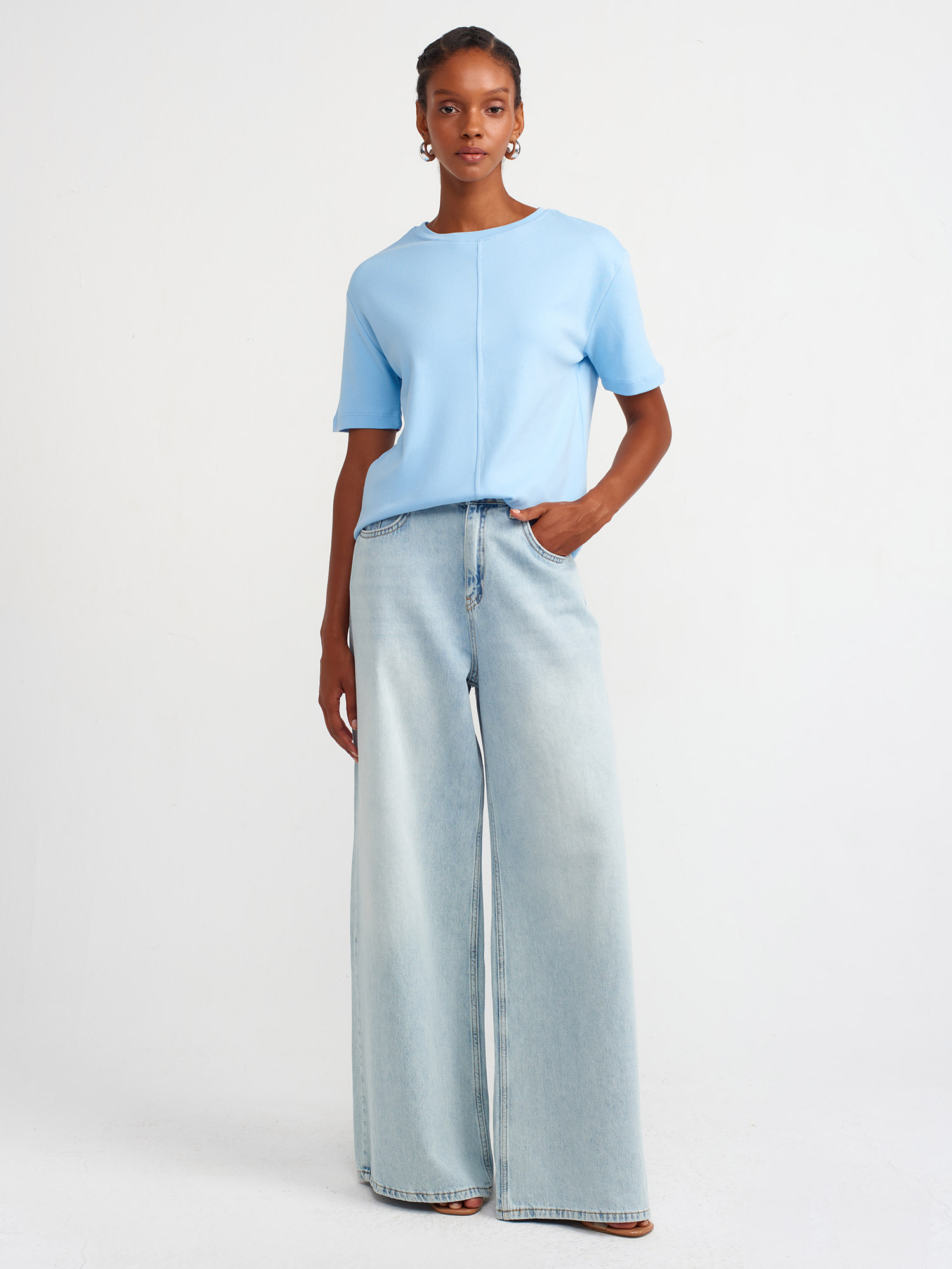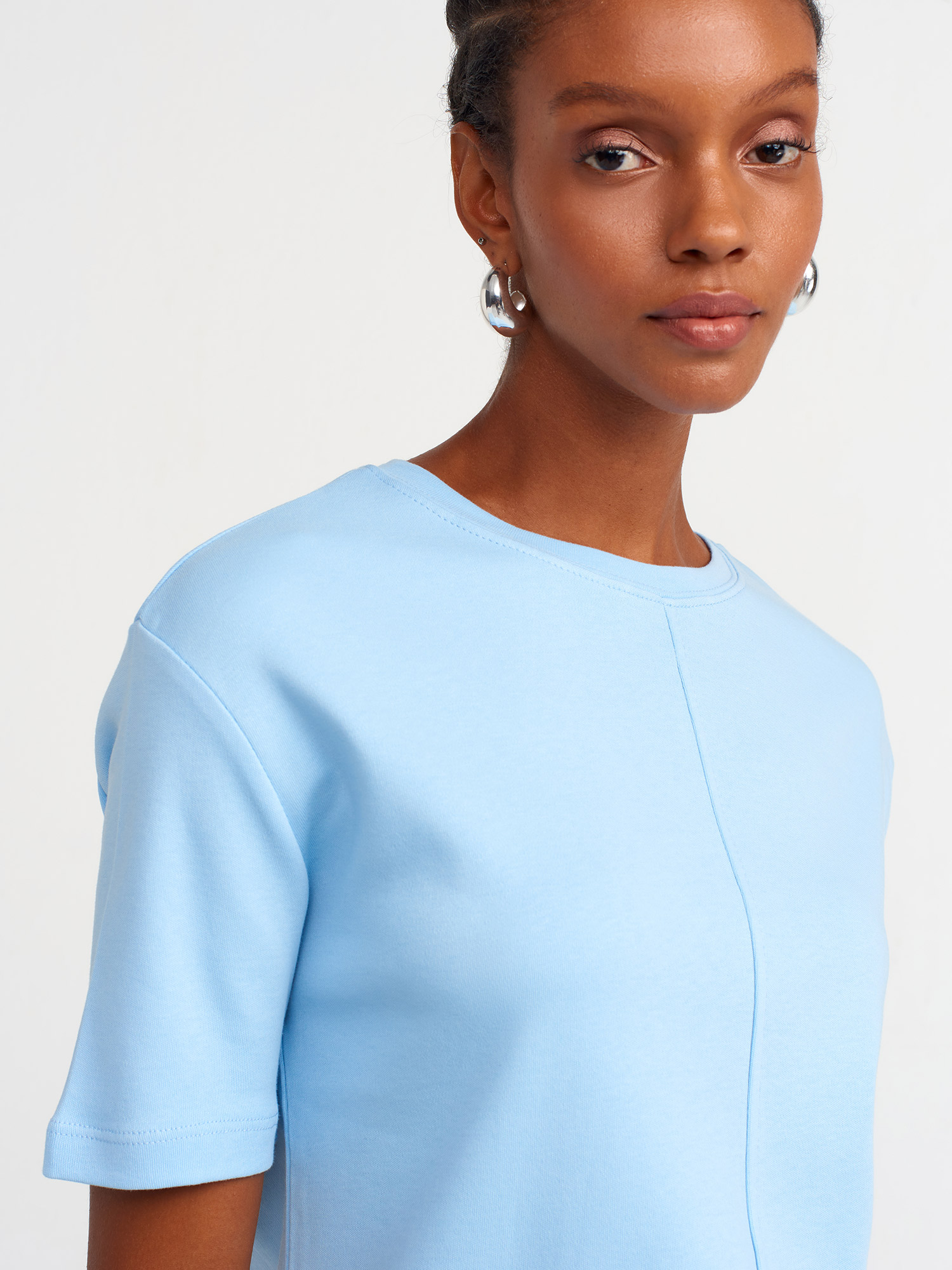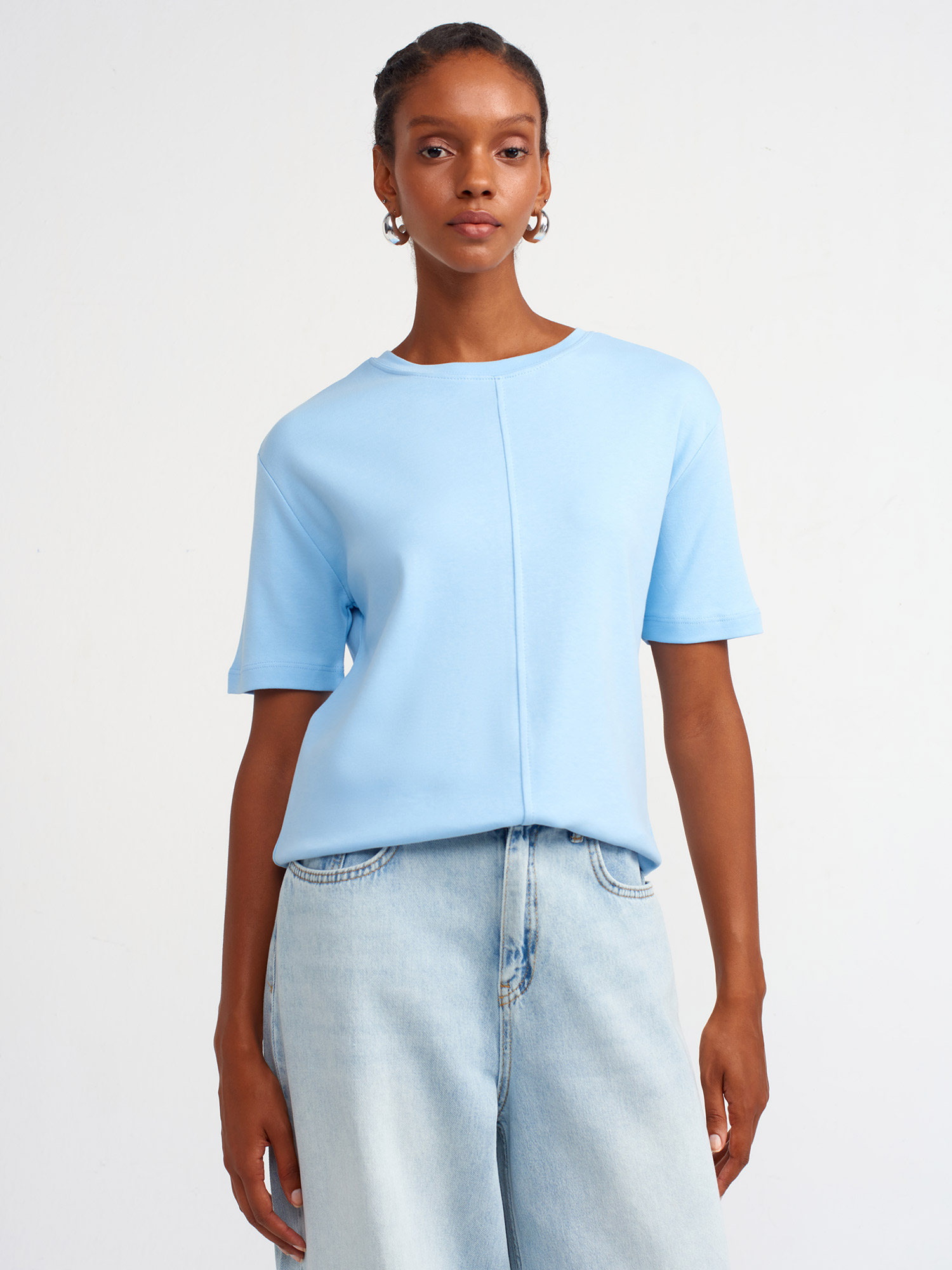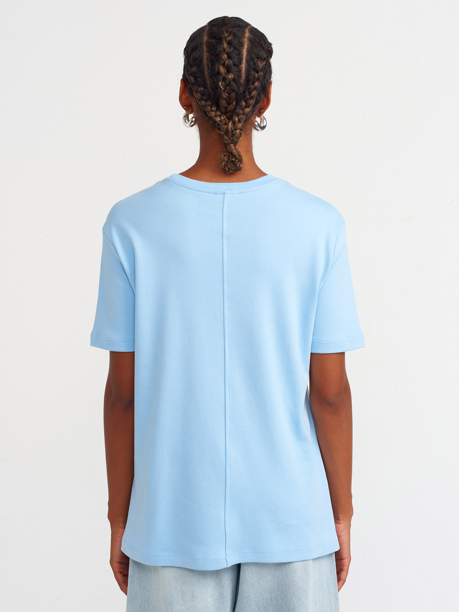 31218 Dikiş Detaylı T-Shirt-Mavi