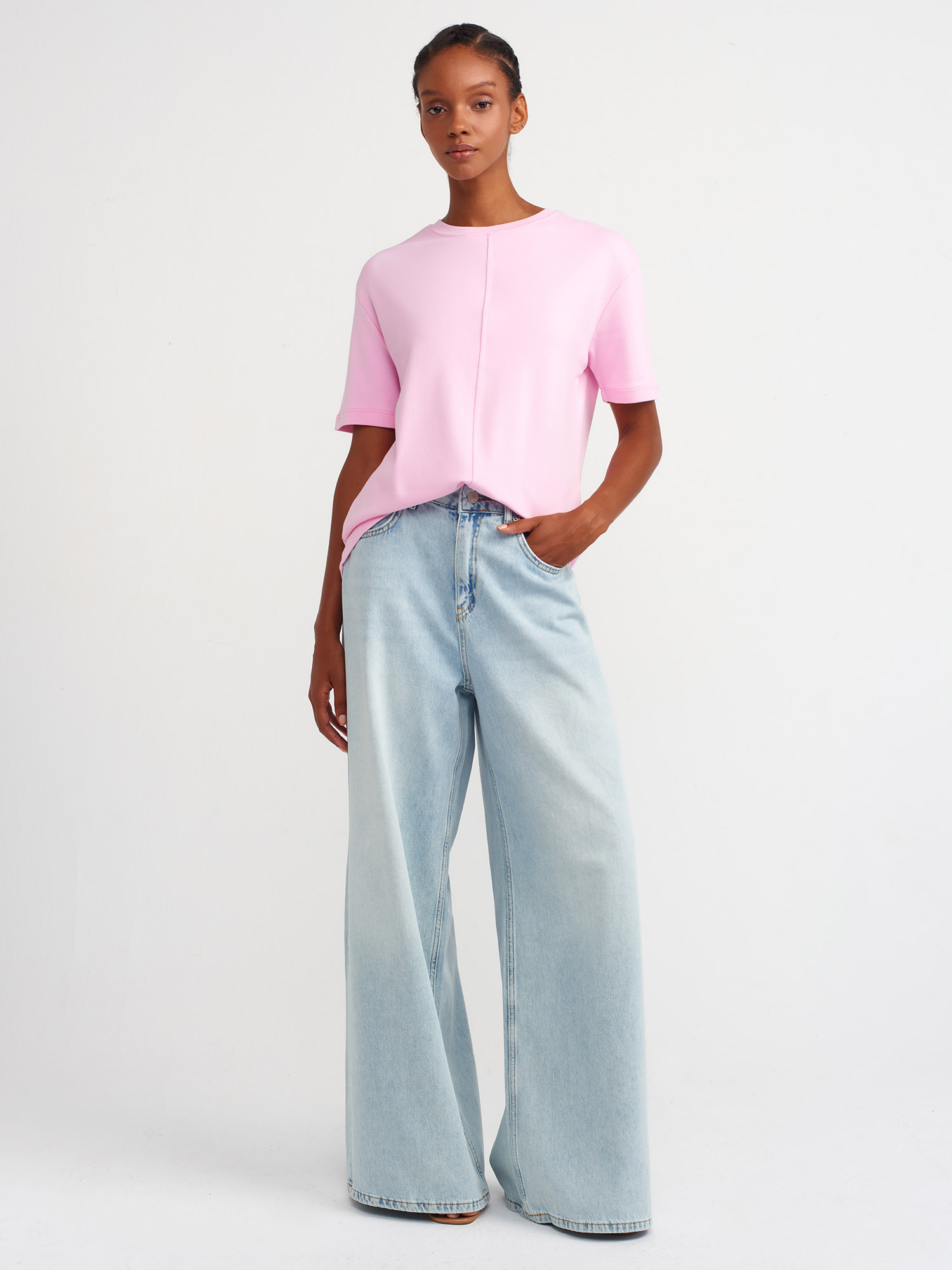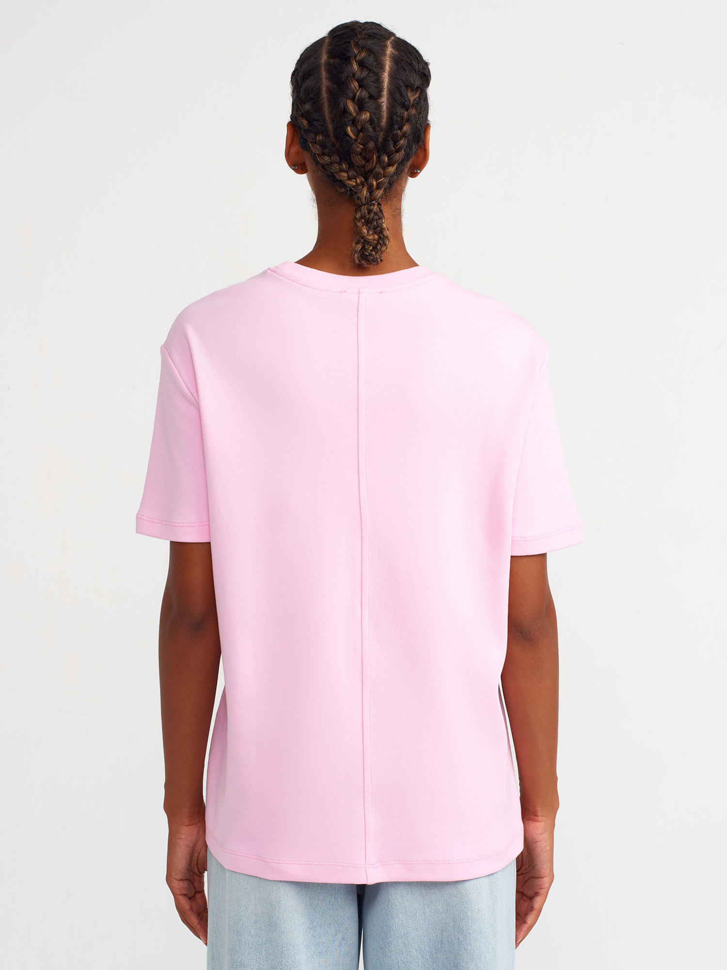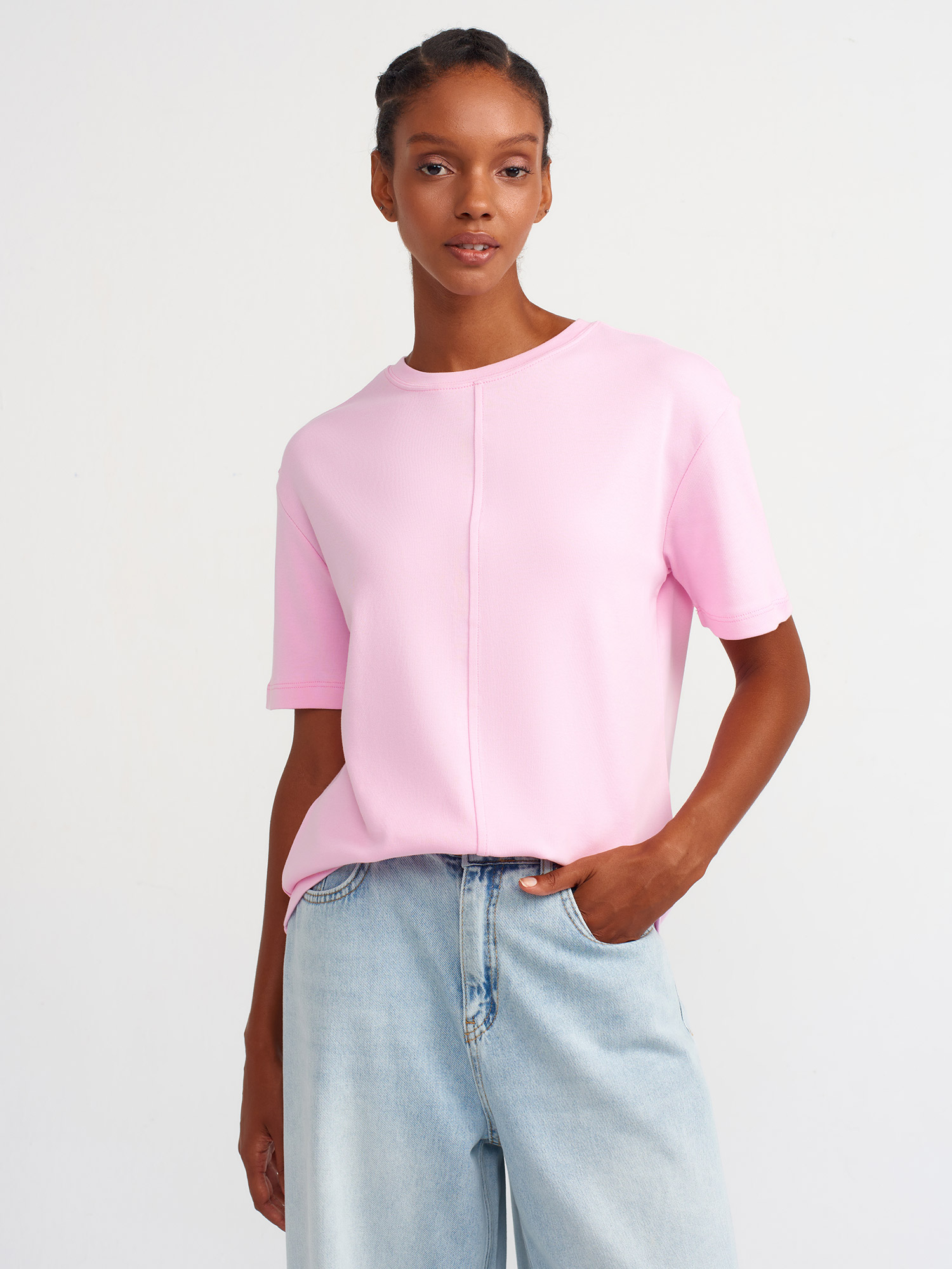 31218 Dikiş Detaylı T-shirt-Pembe