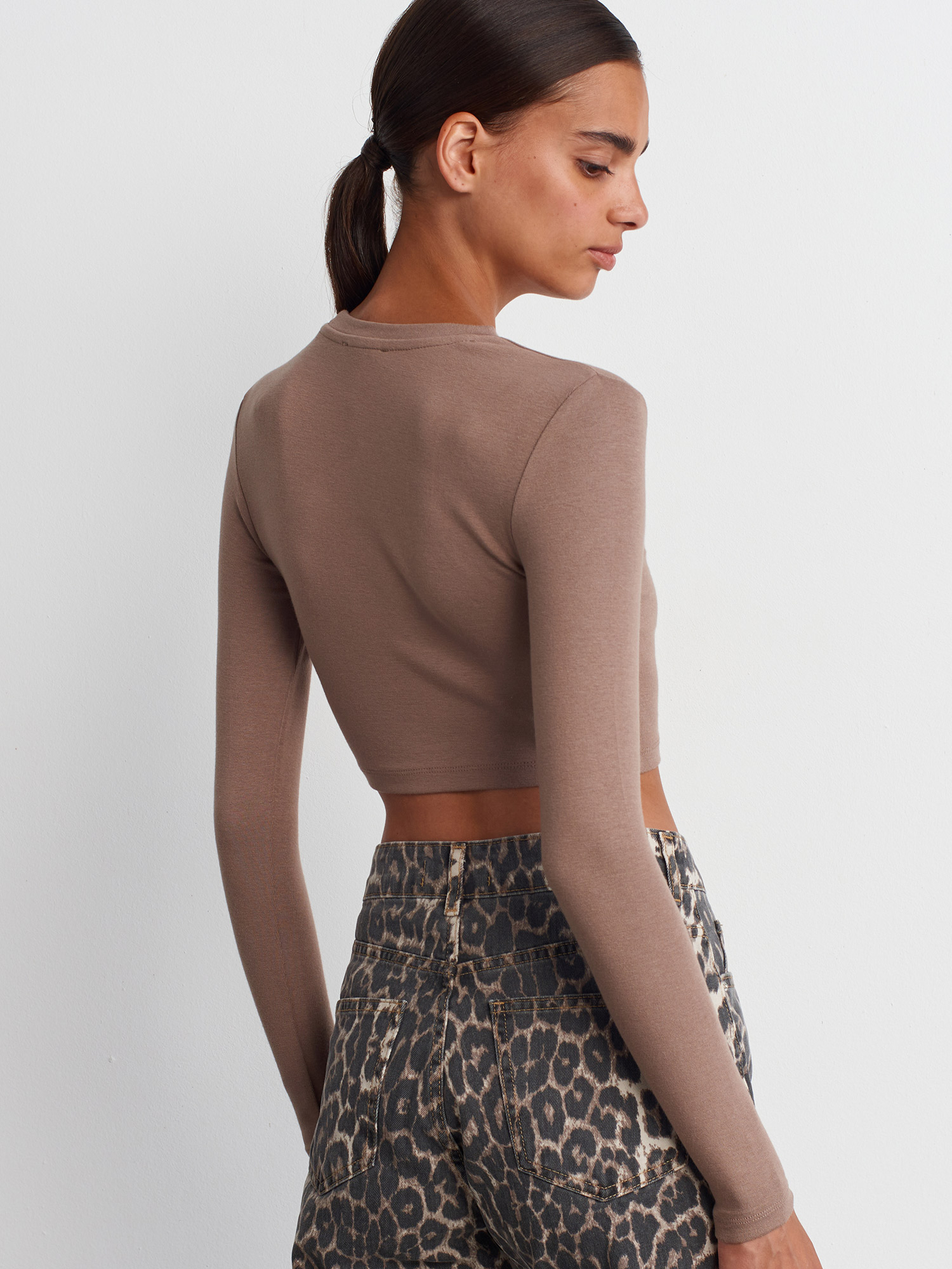 31236 Uzun Kollu Crop Top-Vizon