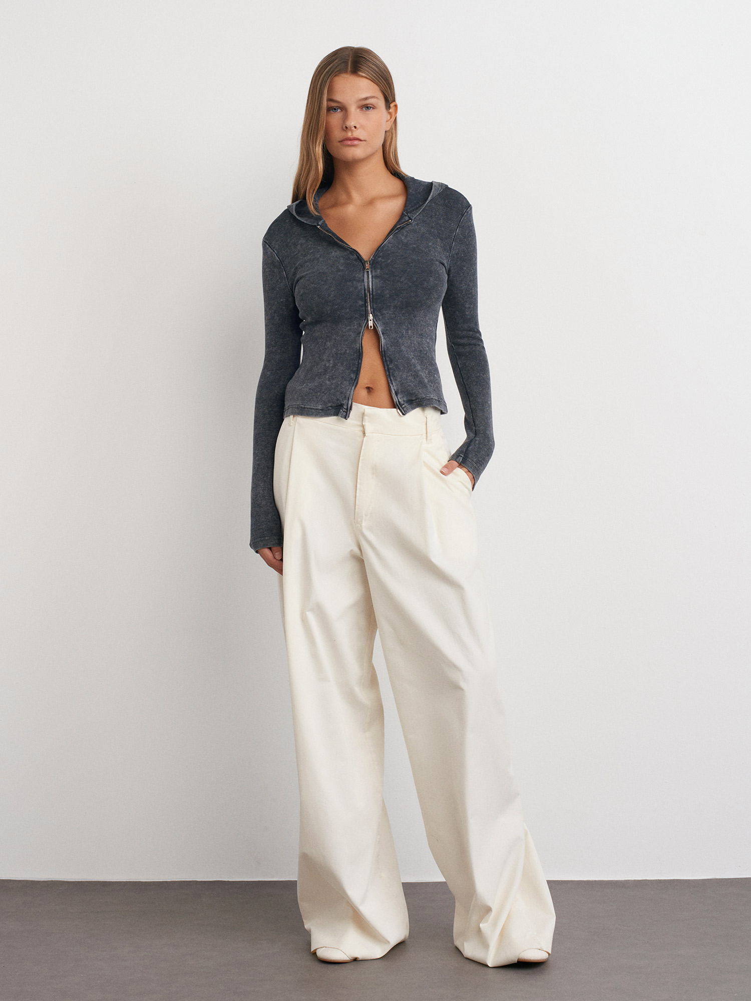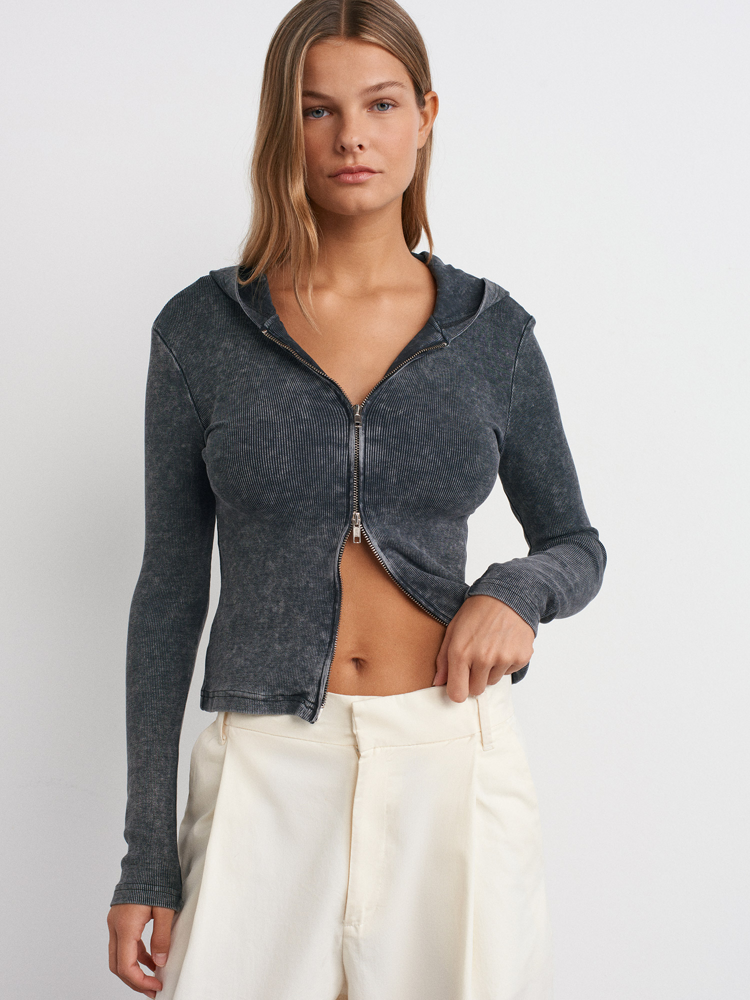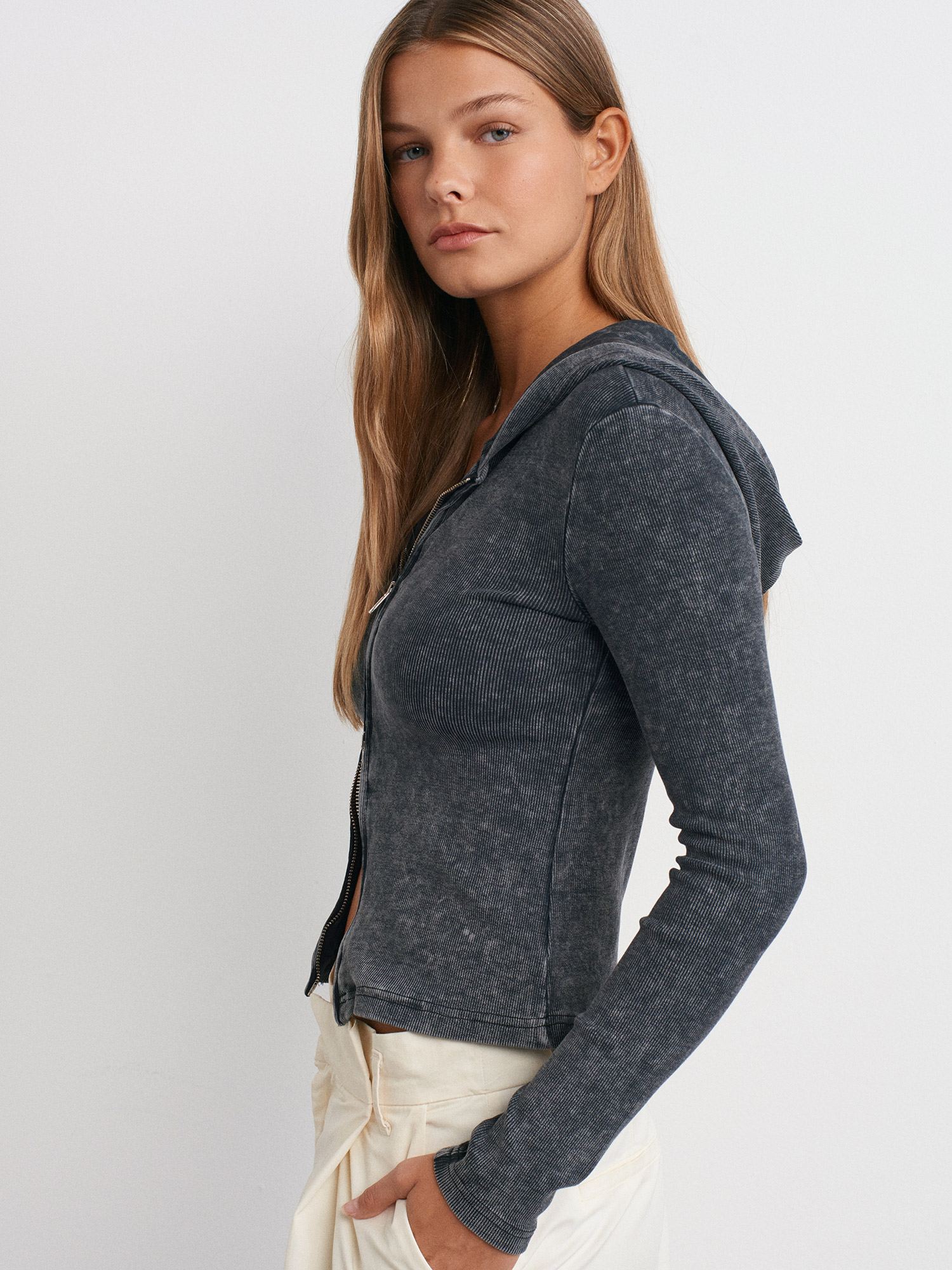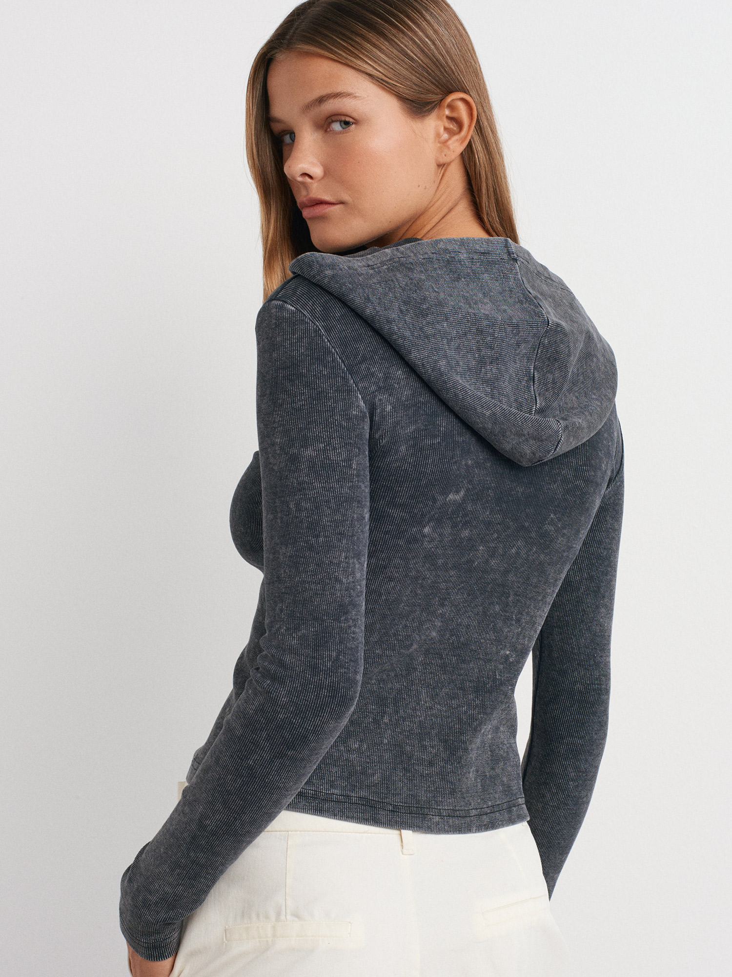 31265 Yıkama Efektli Kapüşonlu Top-Antrasit