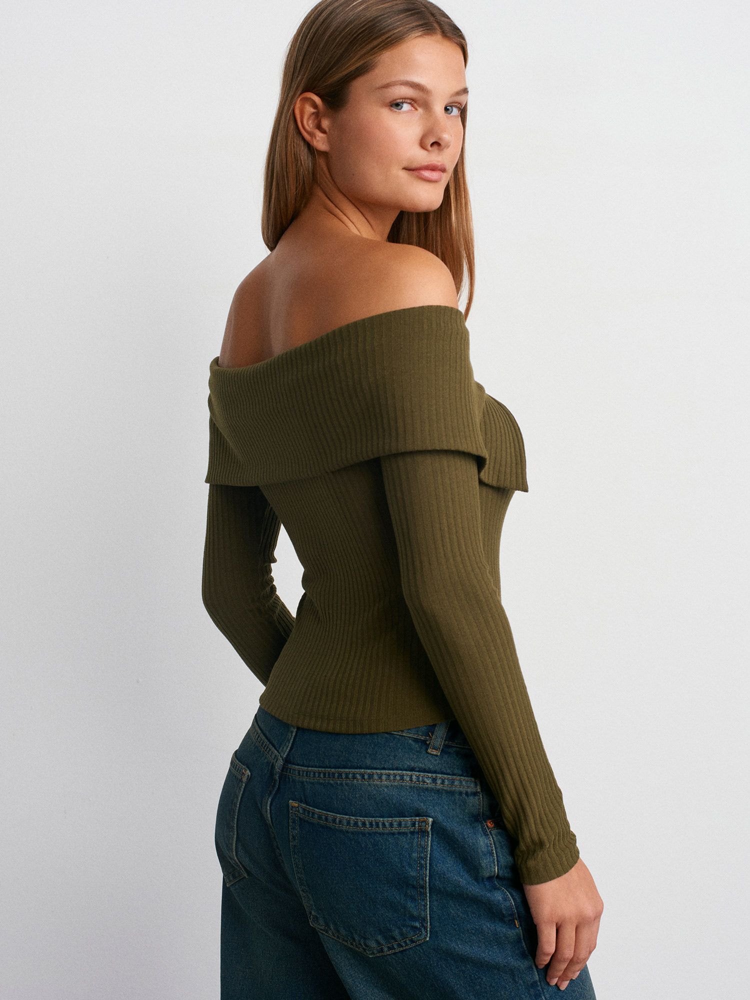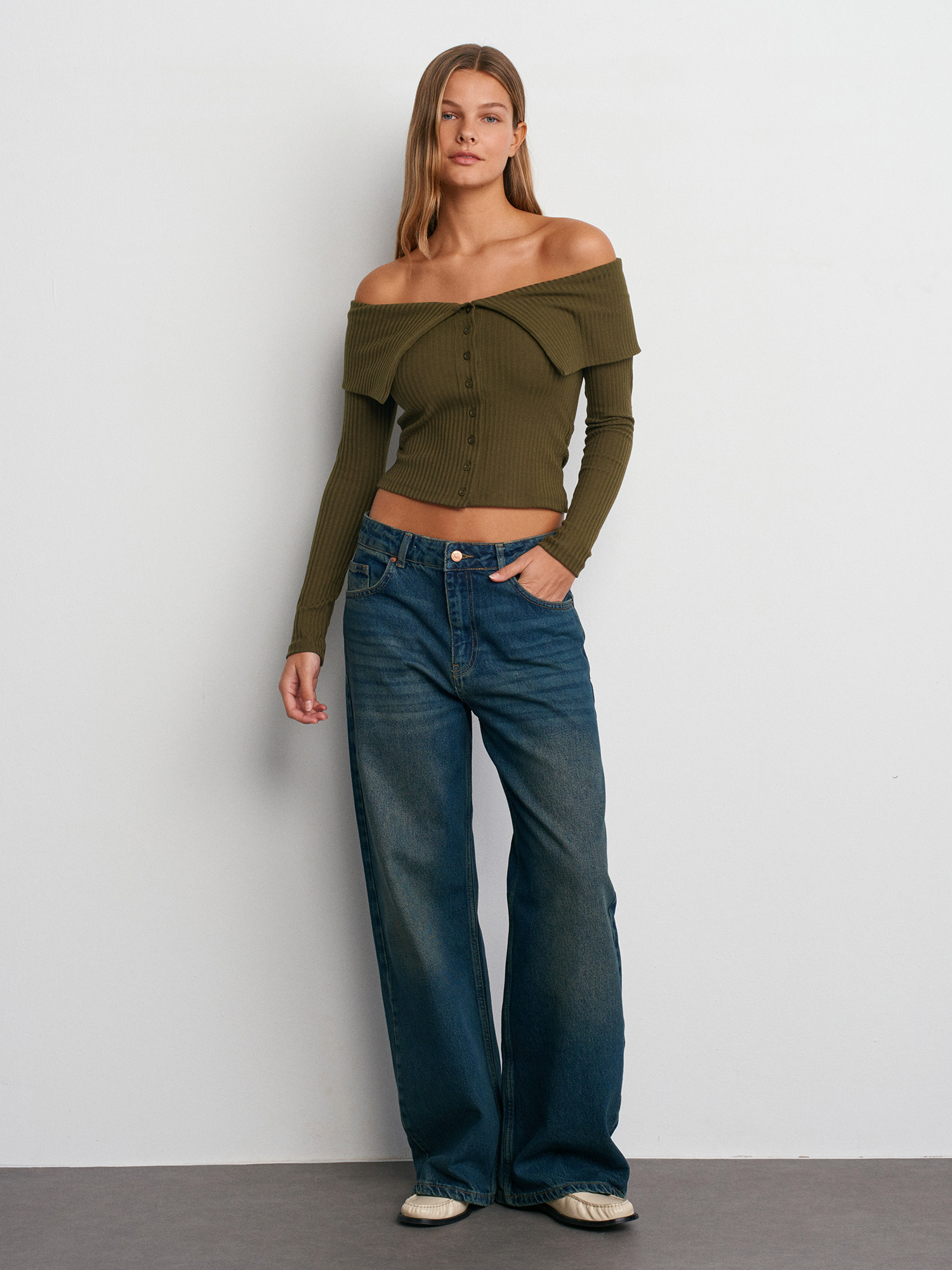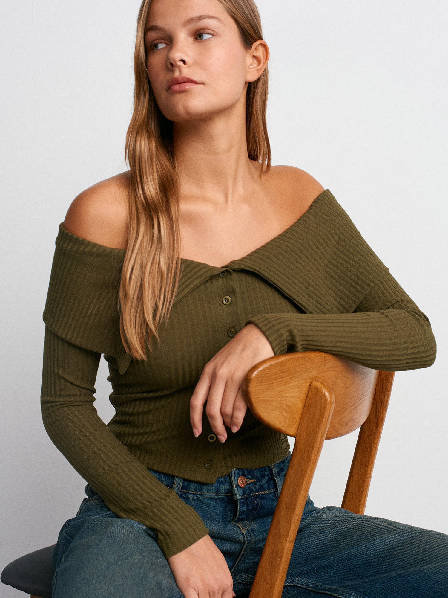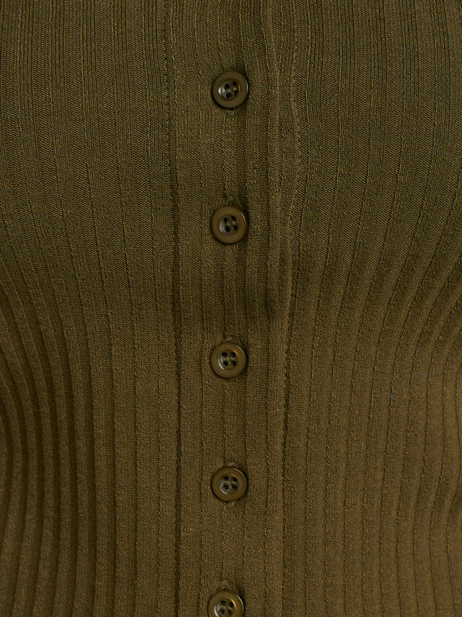 31269 Omuzları Açık Düğmeli Top-Yağ Yeşil