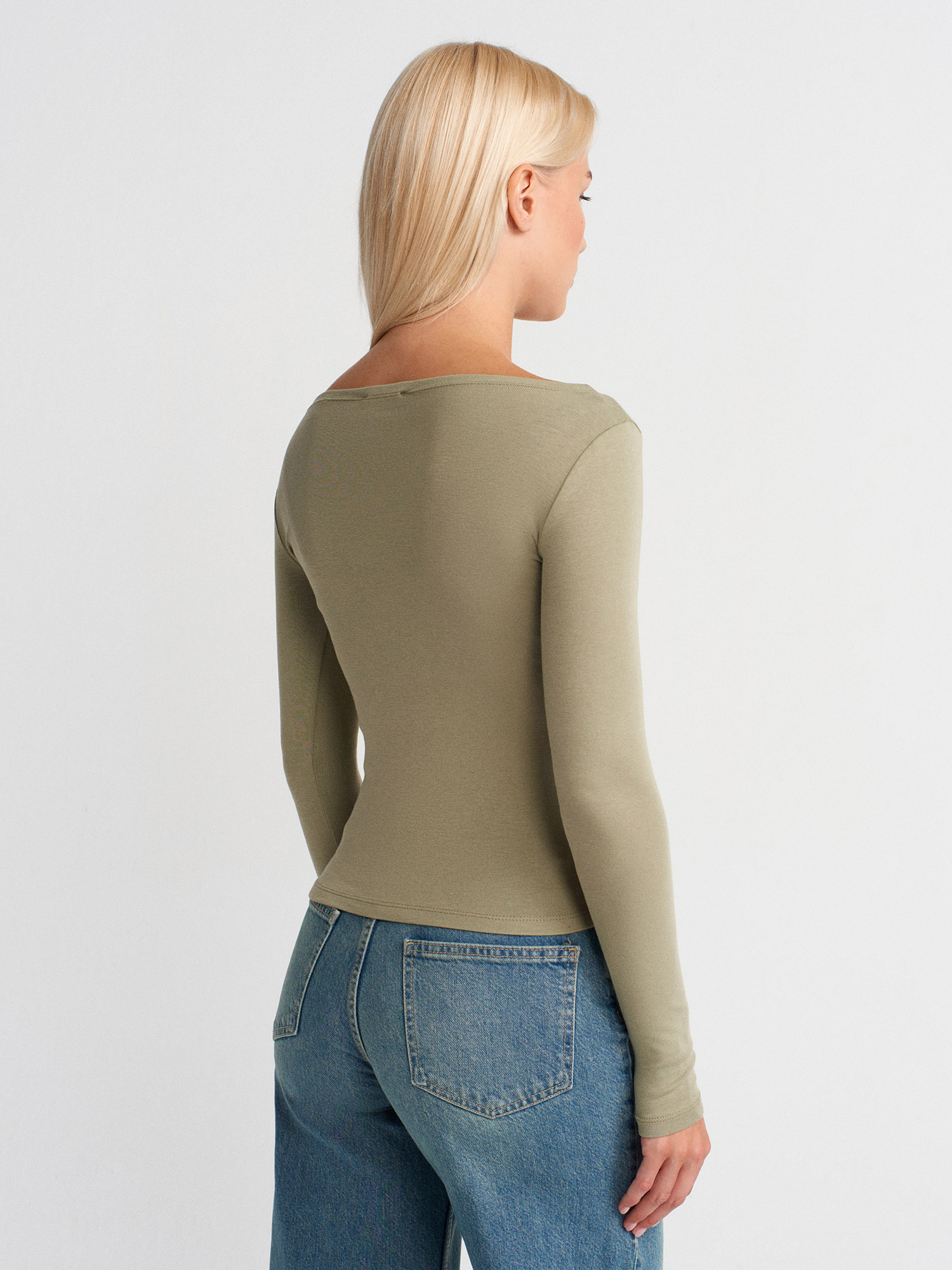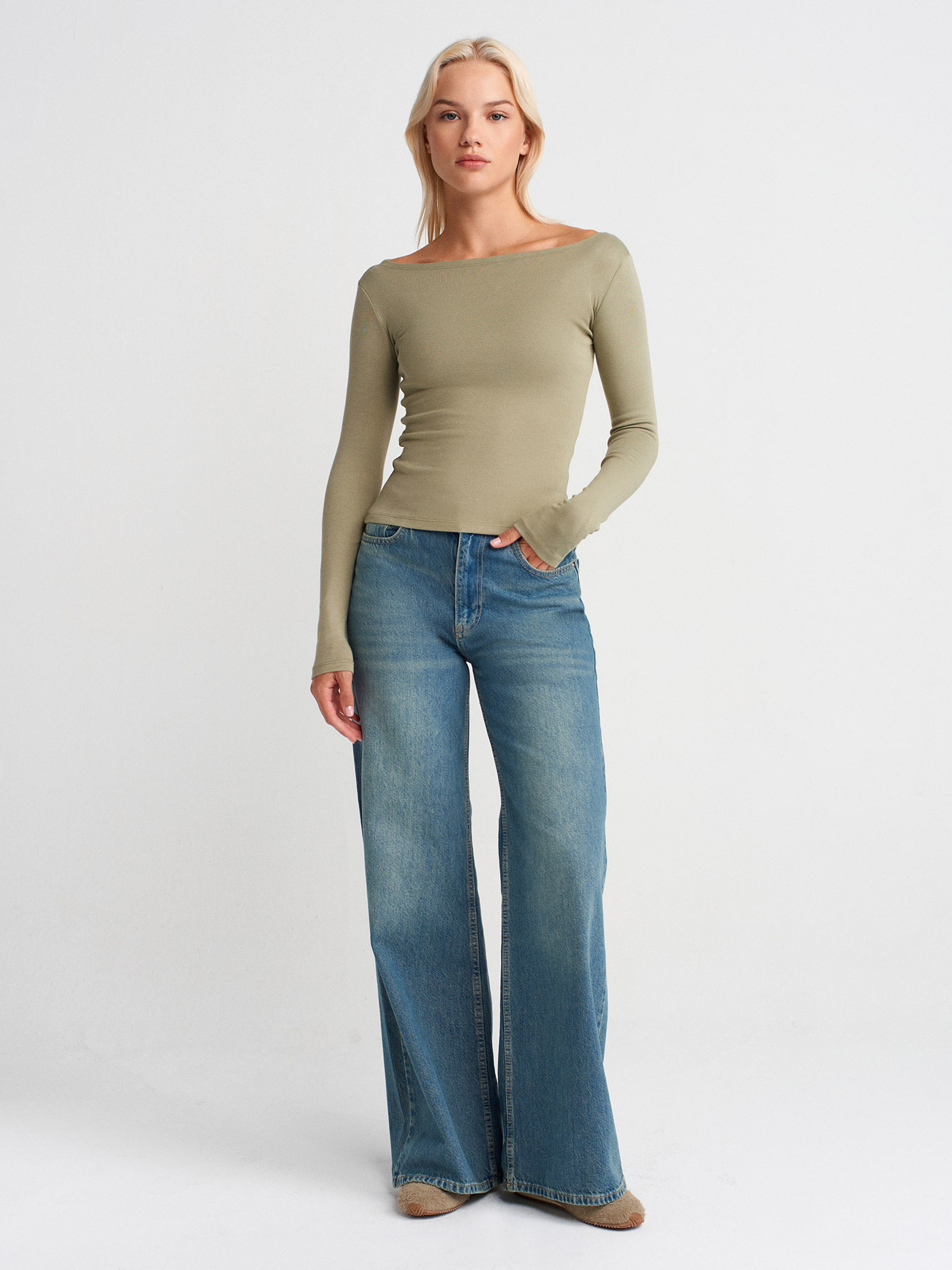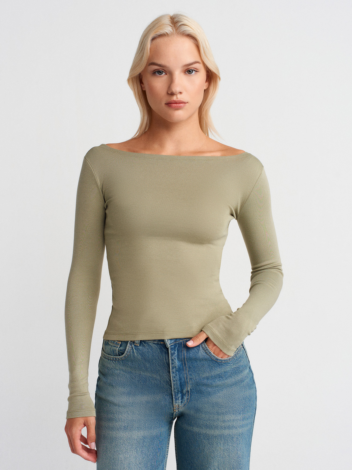 31332 Kayık Yaka Uzun Kollu Top-Çağla