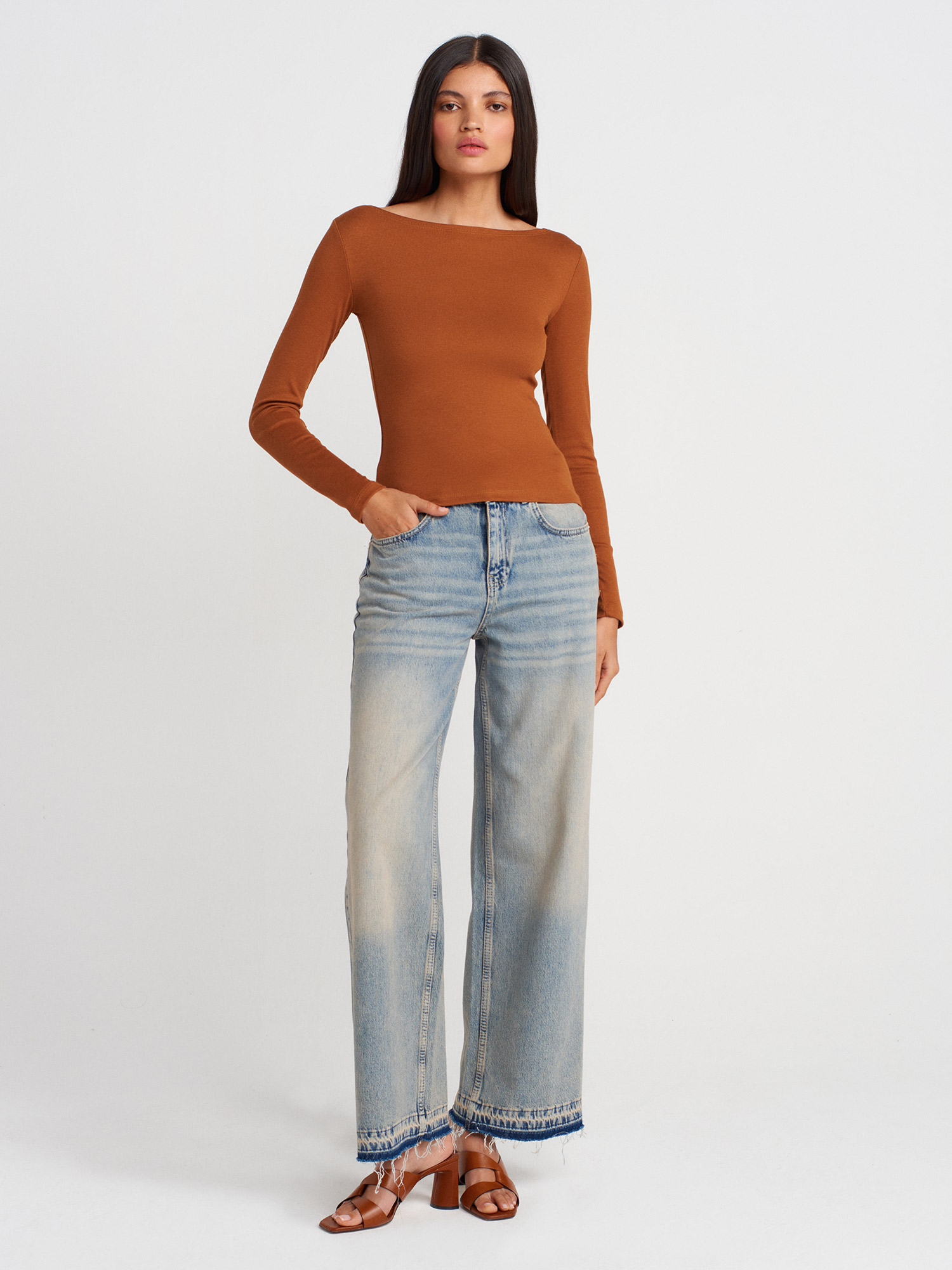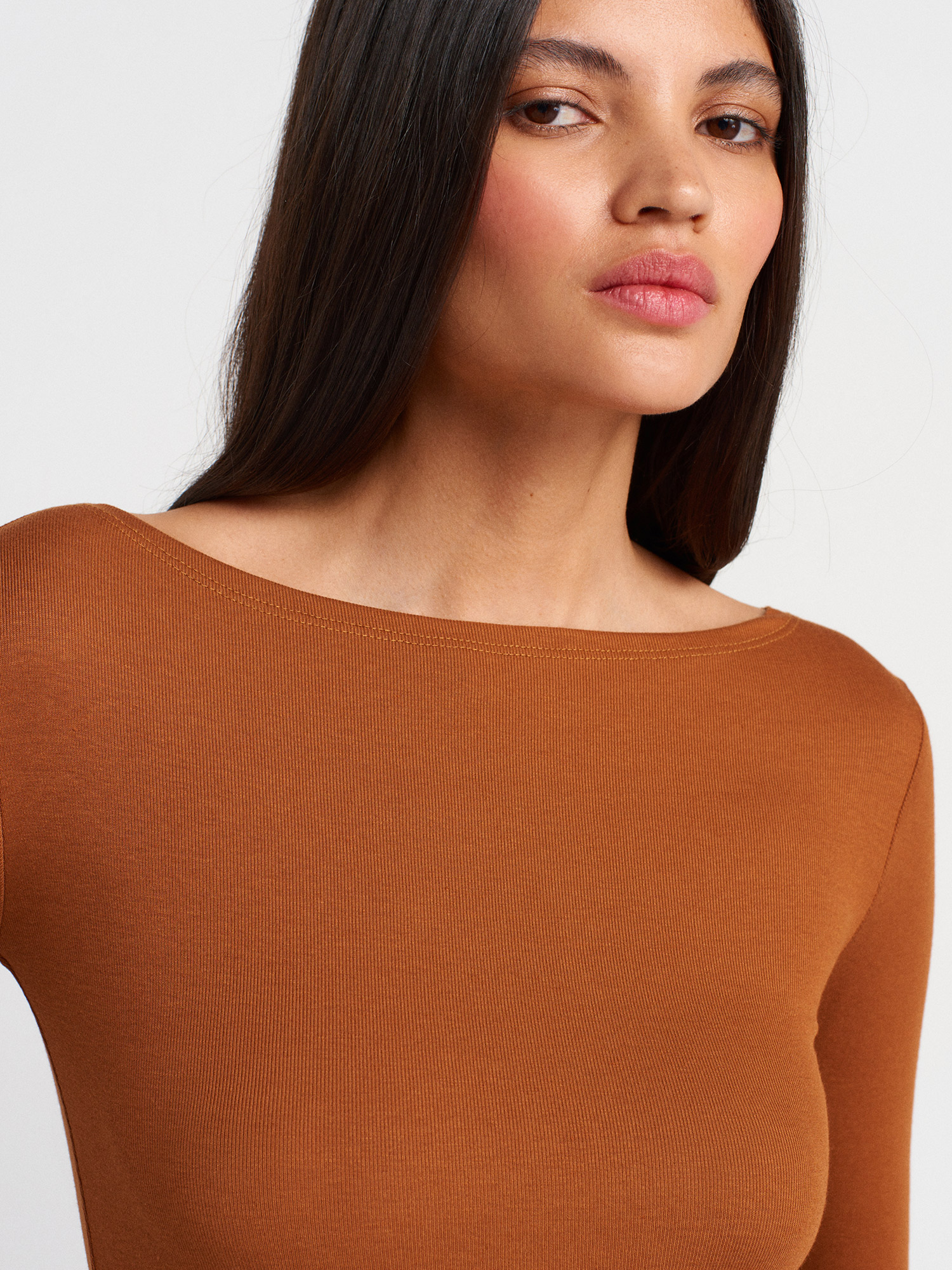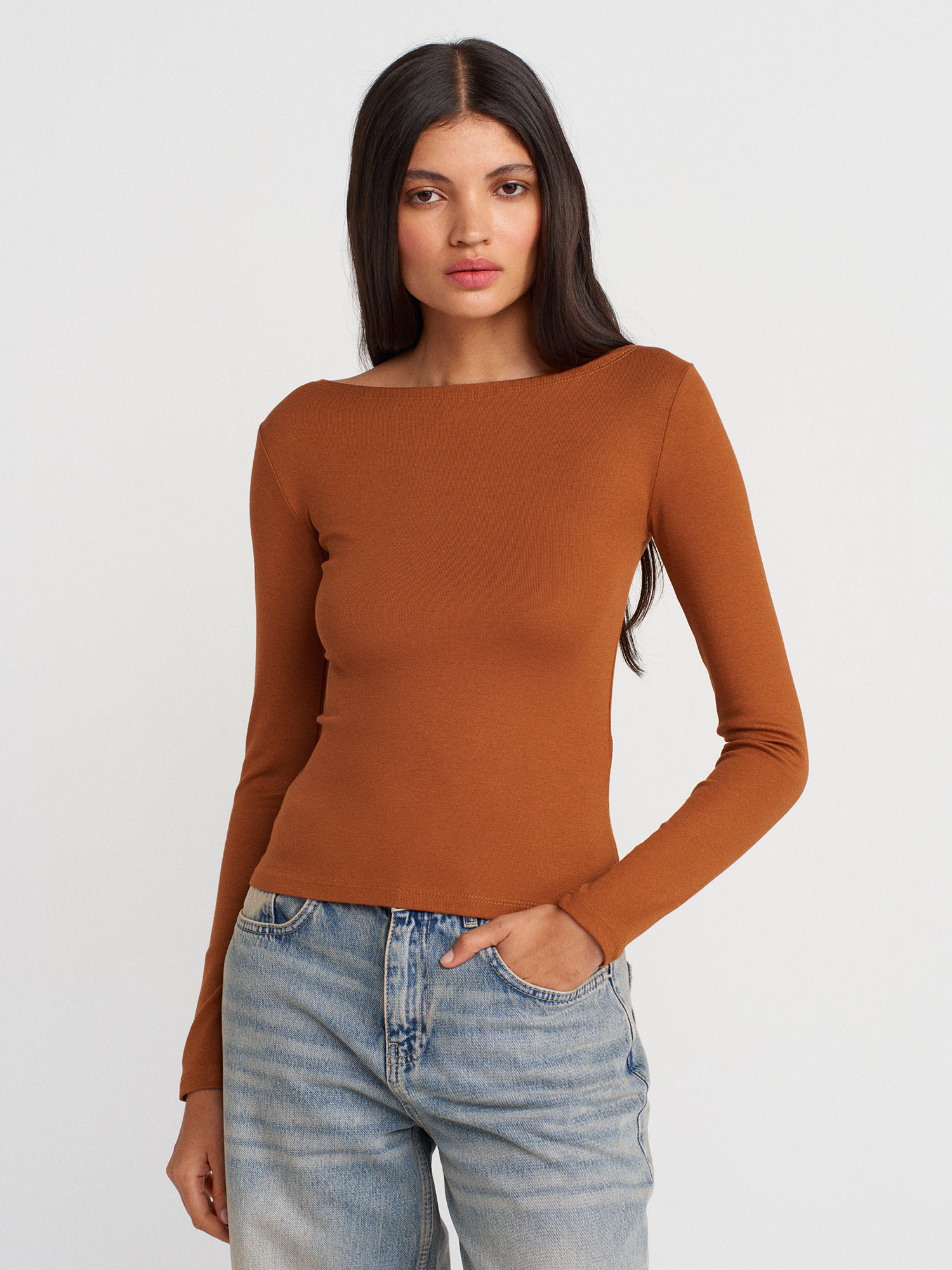 31332 Kayık Yaka Uzun Kollu Top-K.Kiremit