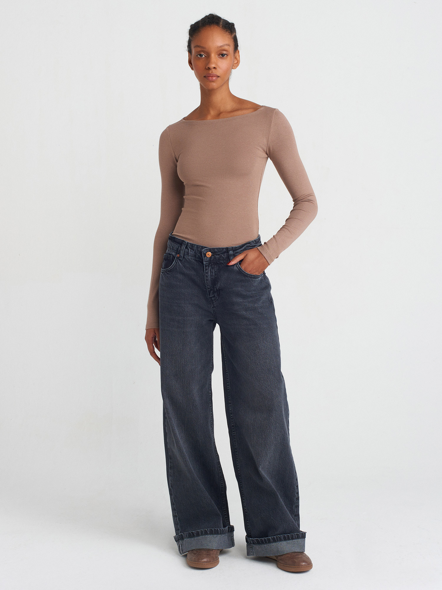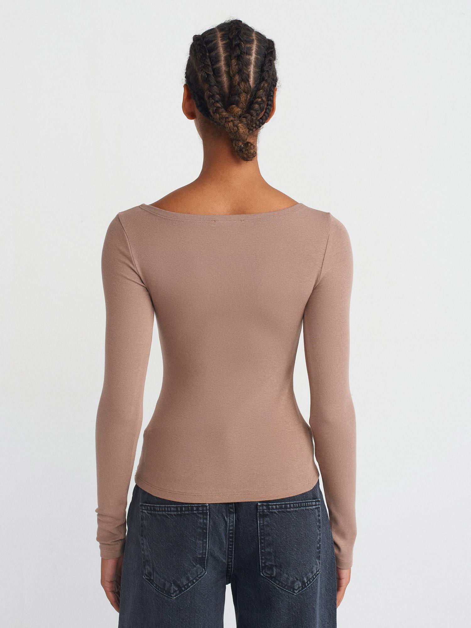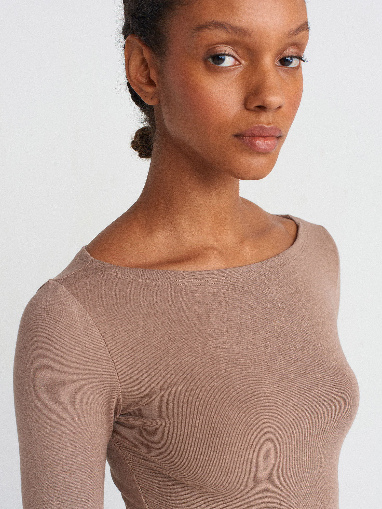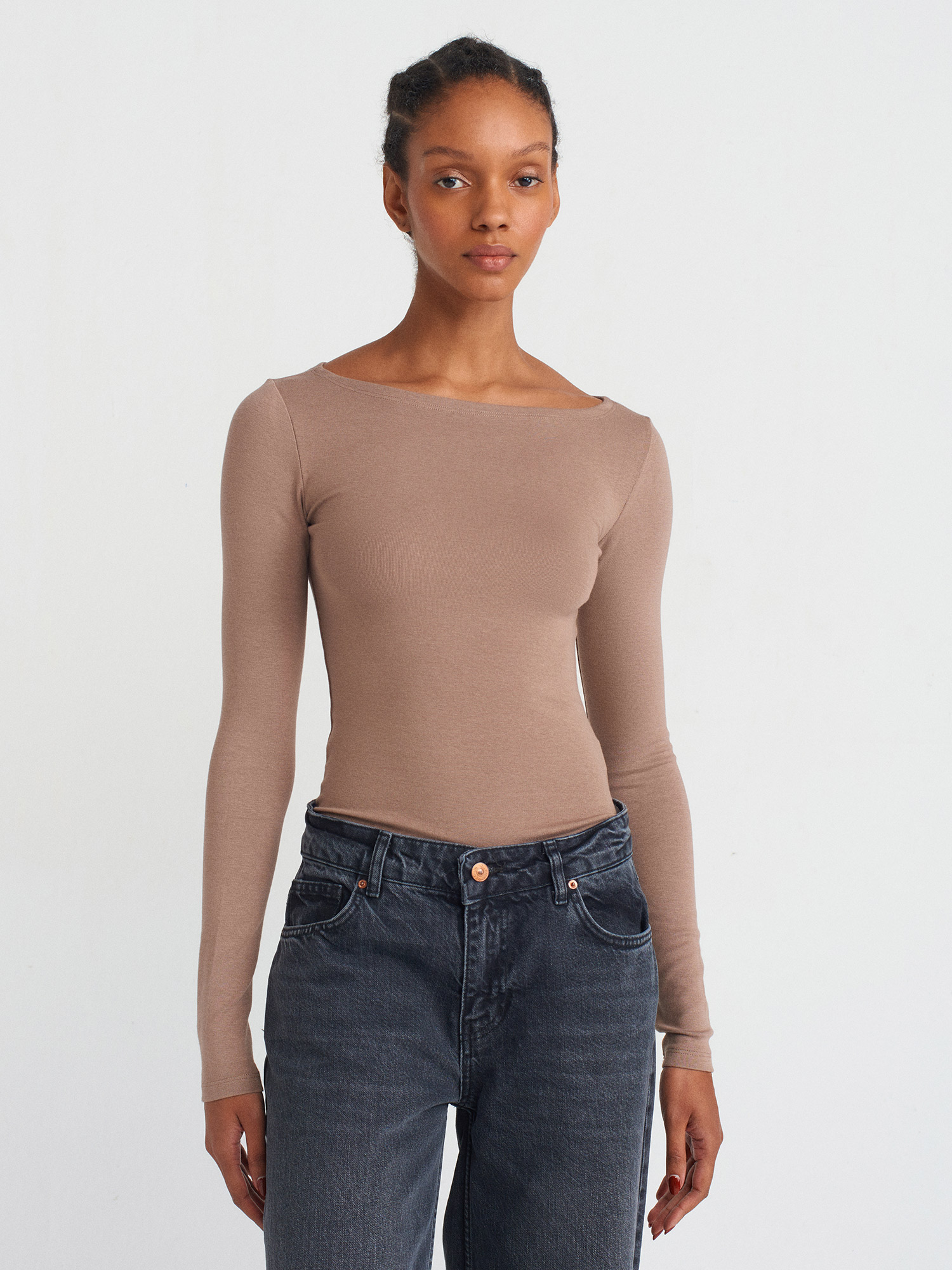 31332 Kayık Yaka Uzun Kollu Top-Vizon