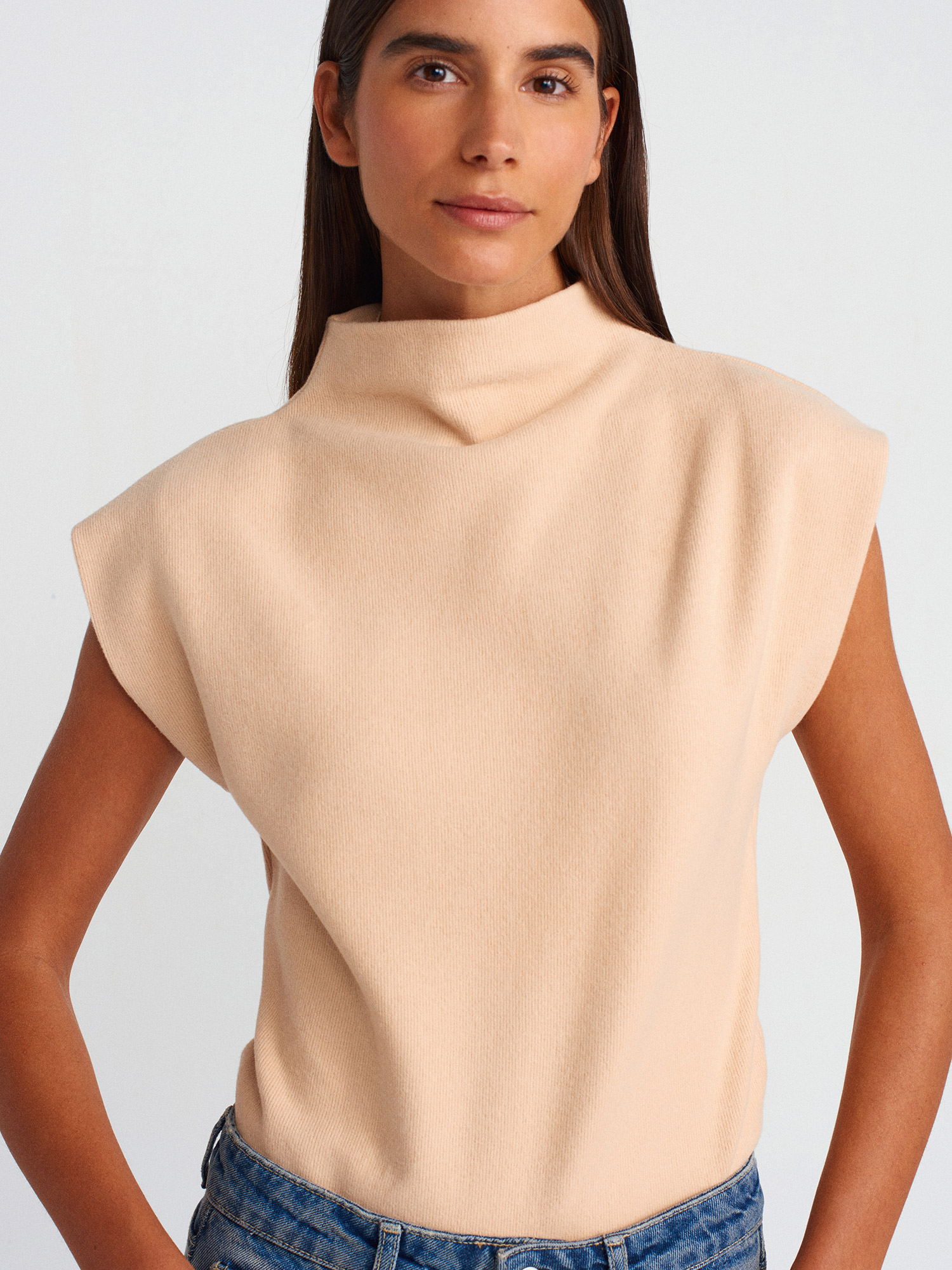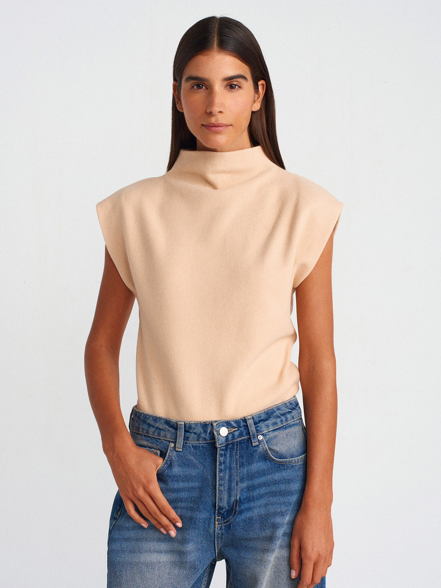 31342 Yumuşak Dokulu Örme Süveter-Açık Bej