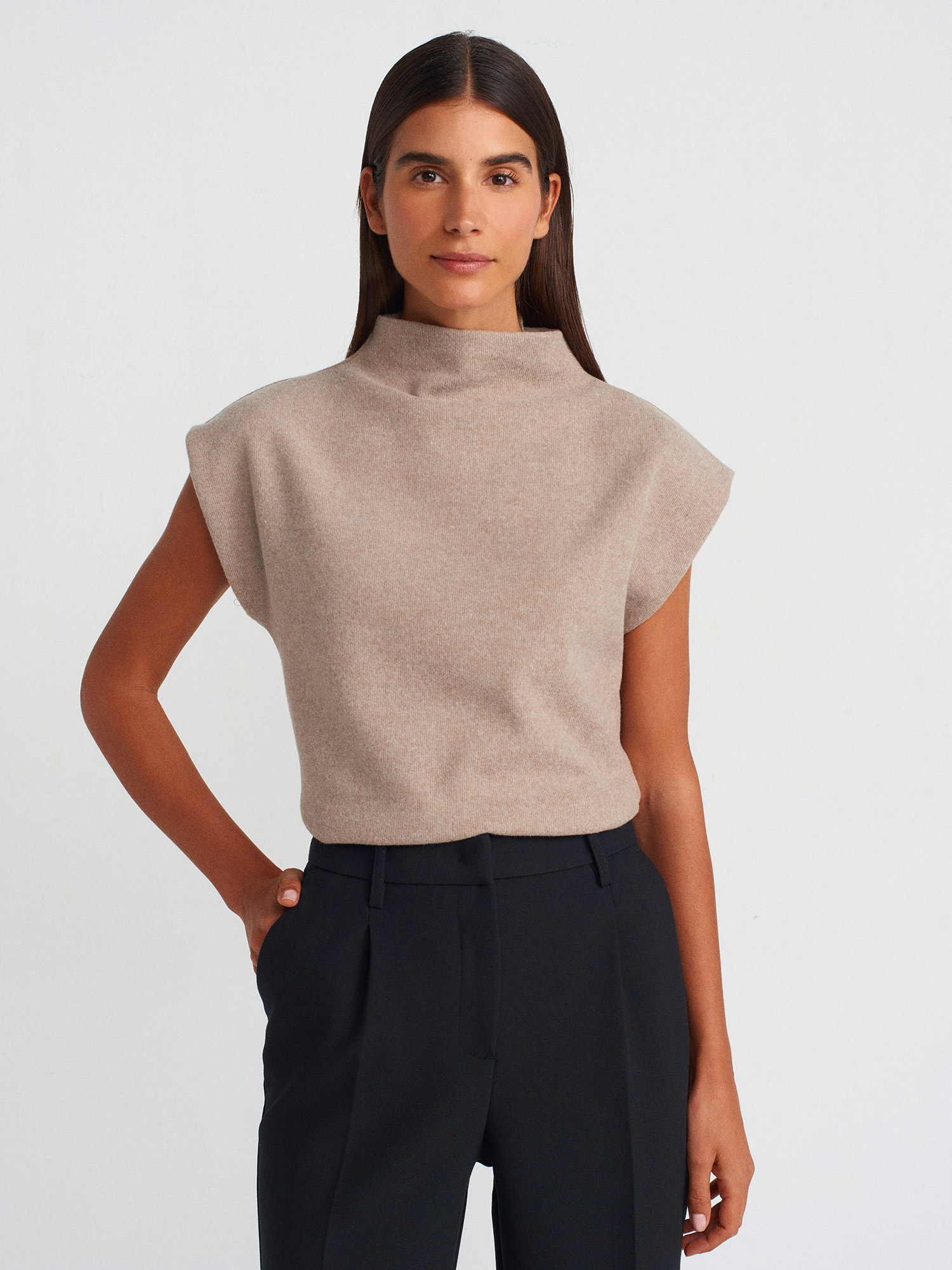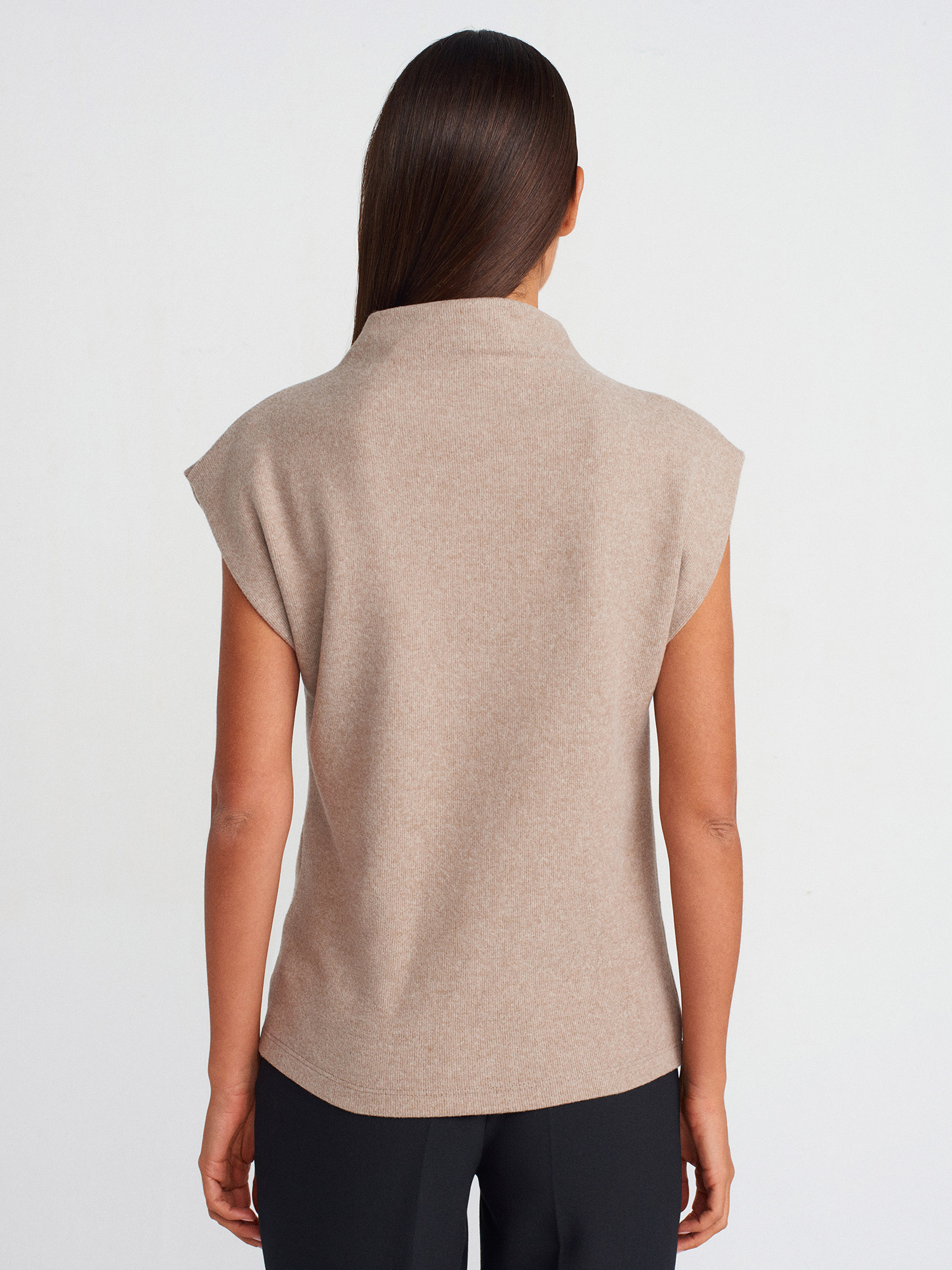 31342 Yumuşak Dokulu Örme Süveter-Açık Haki