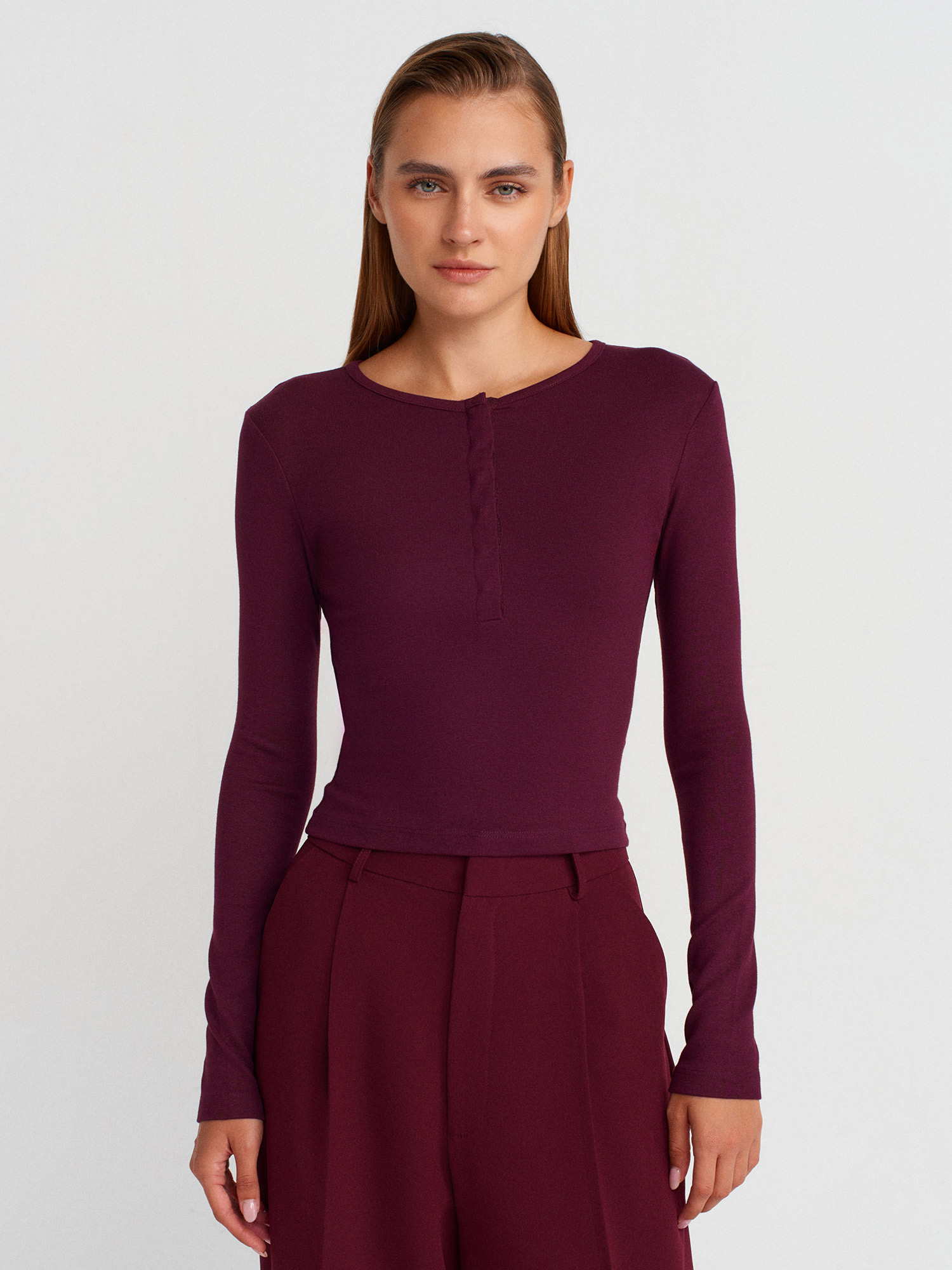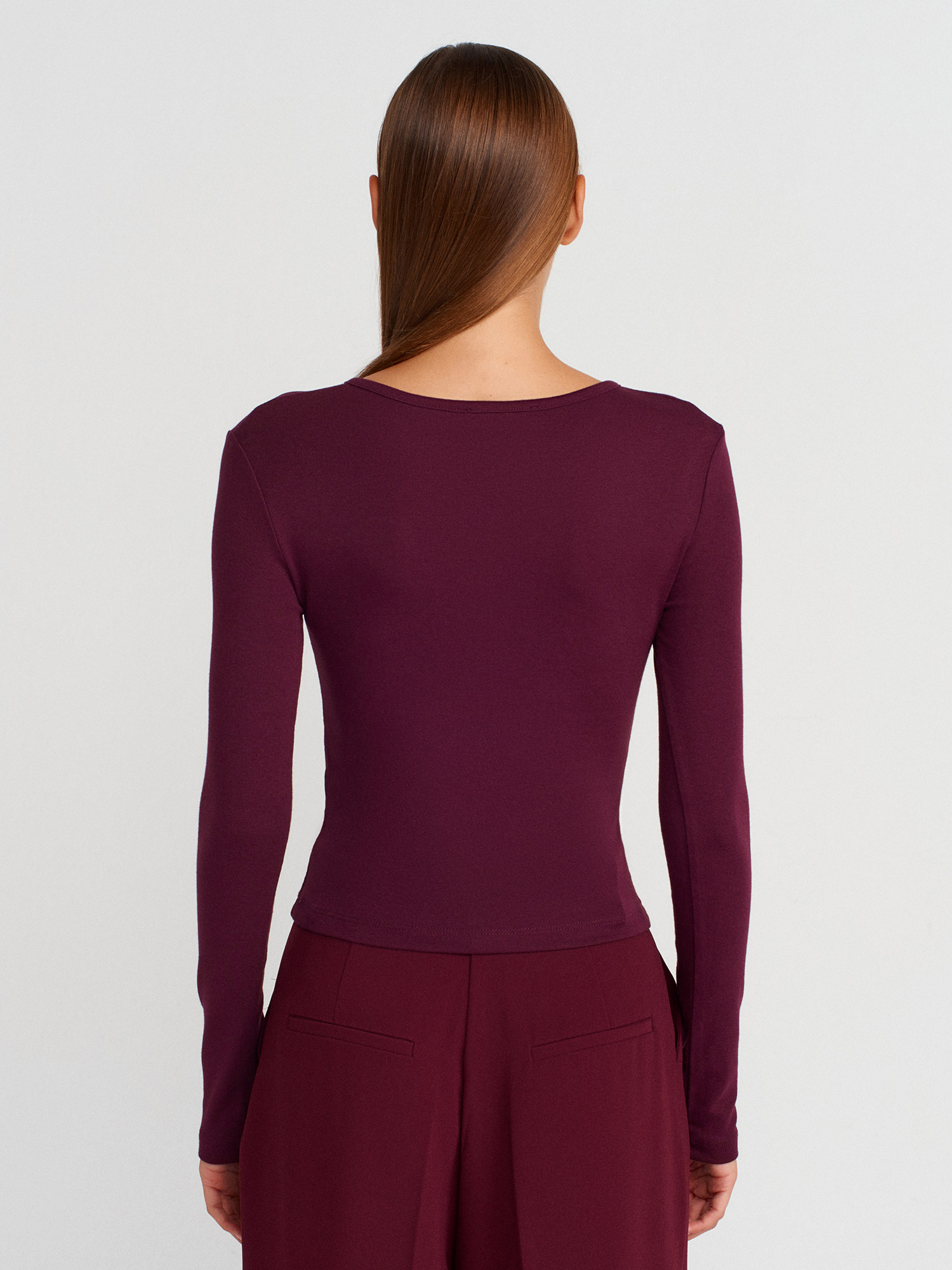31442 Uzun Kollu Çıtçıtlı Top-Bordo