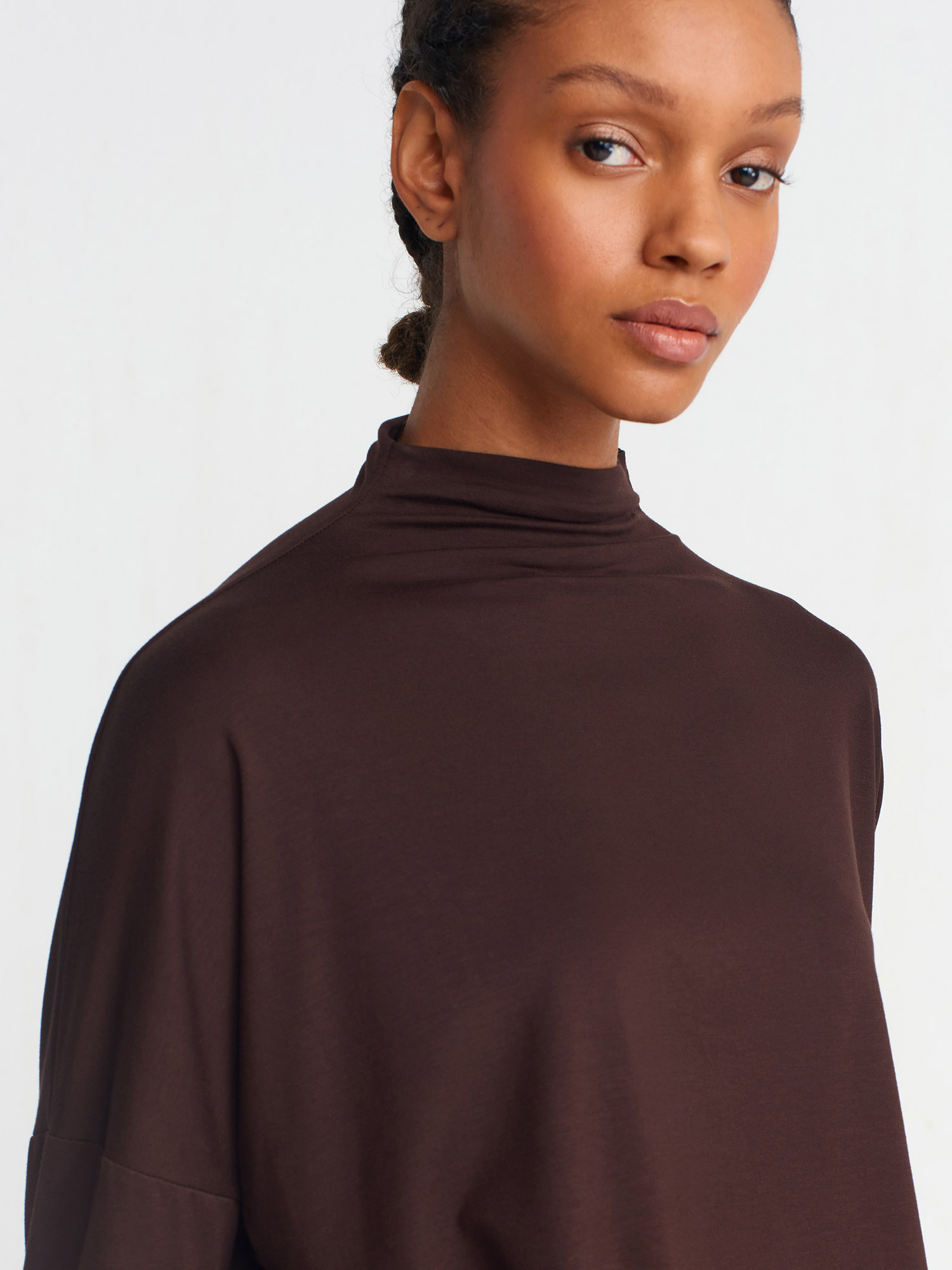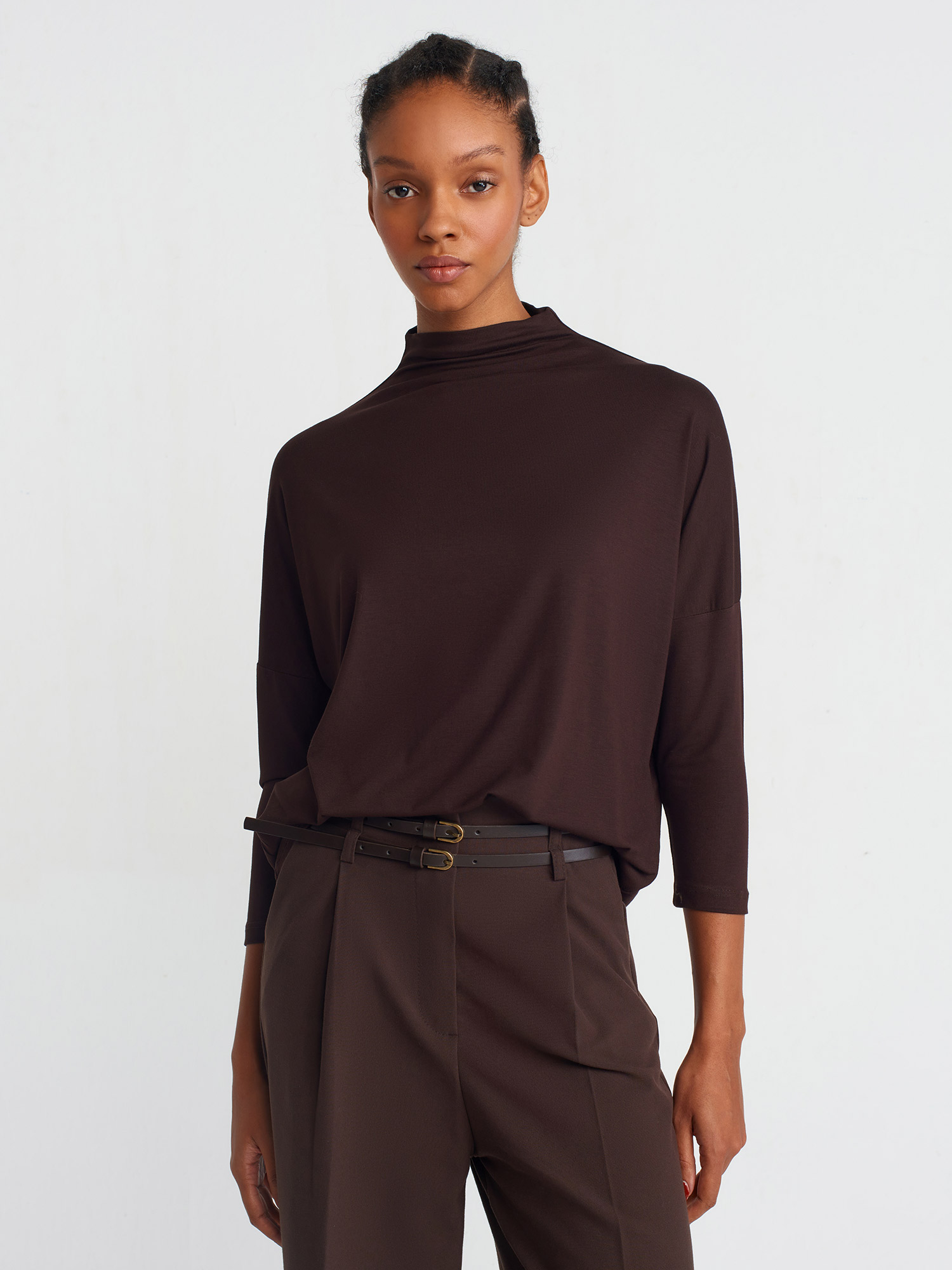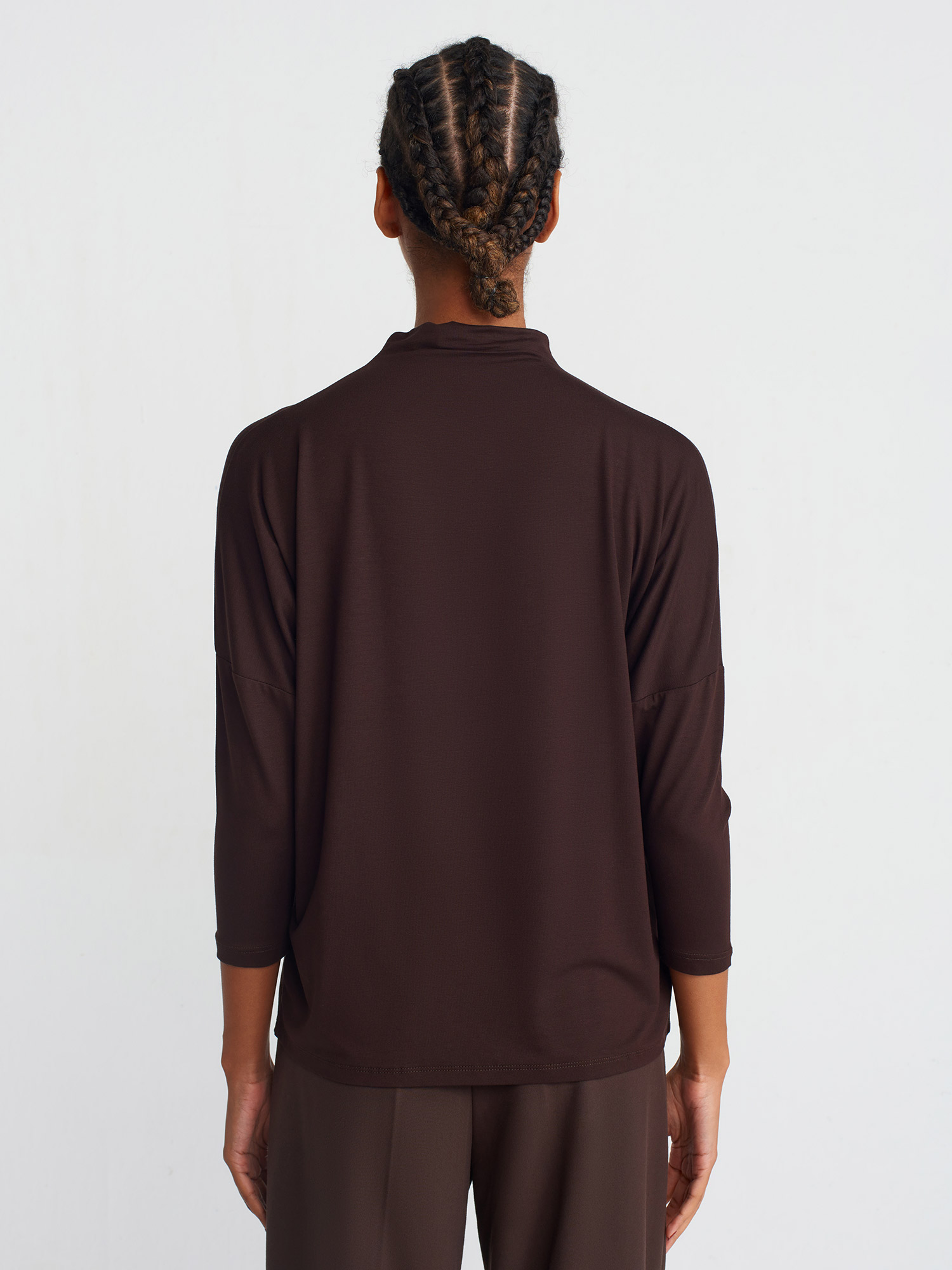31468 Dik Yaka Viskon Top-Koyu Kahve