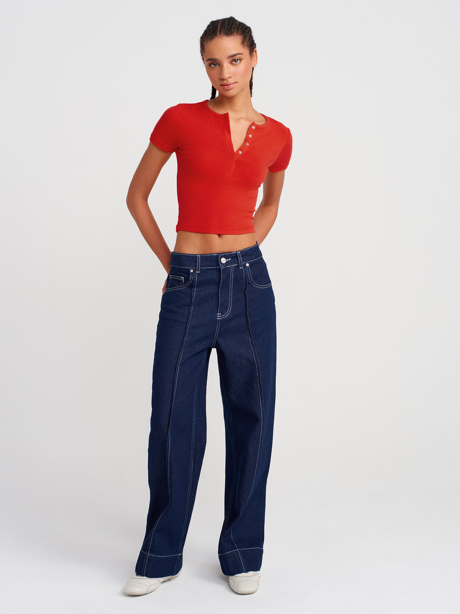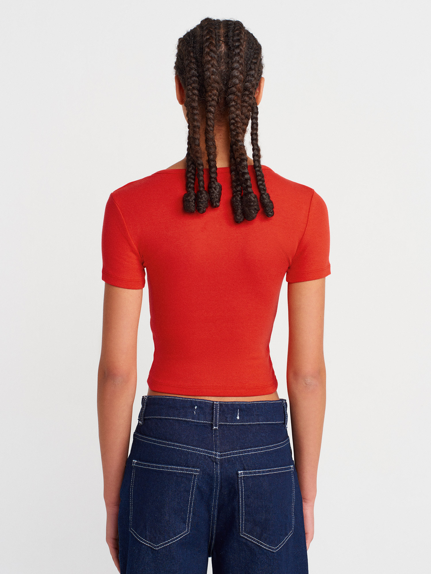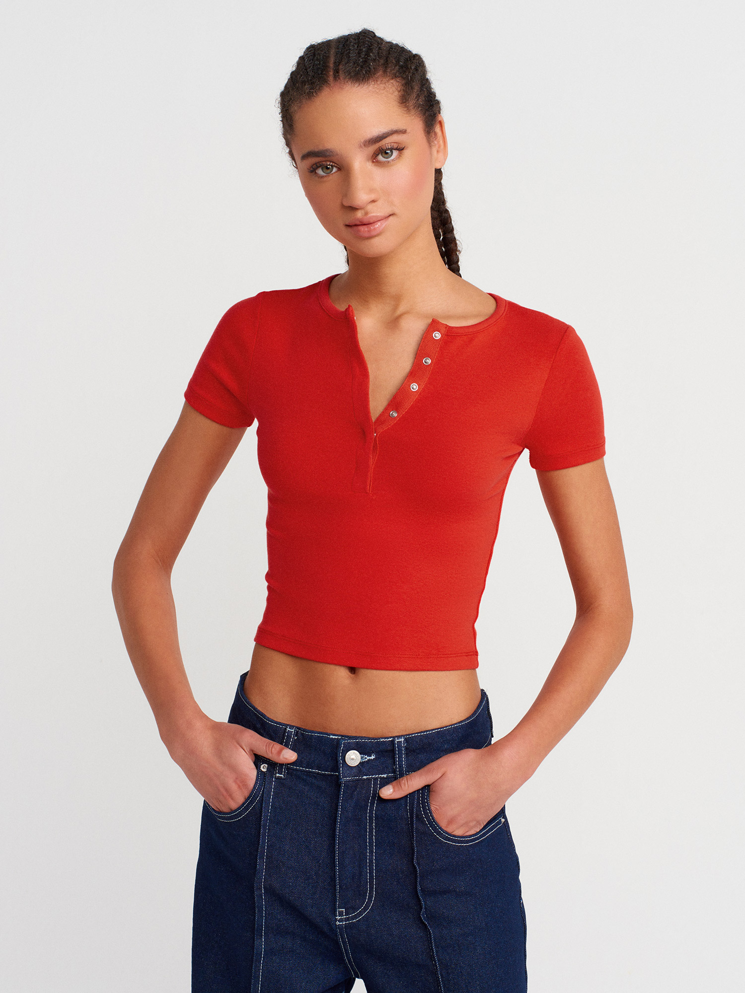 31704 Çıtçıt Düğmeli Kısa Kollu Top-Kırmızı
