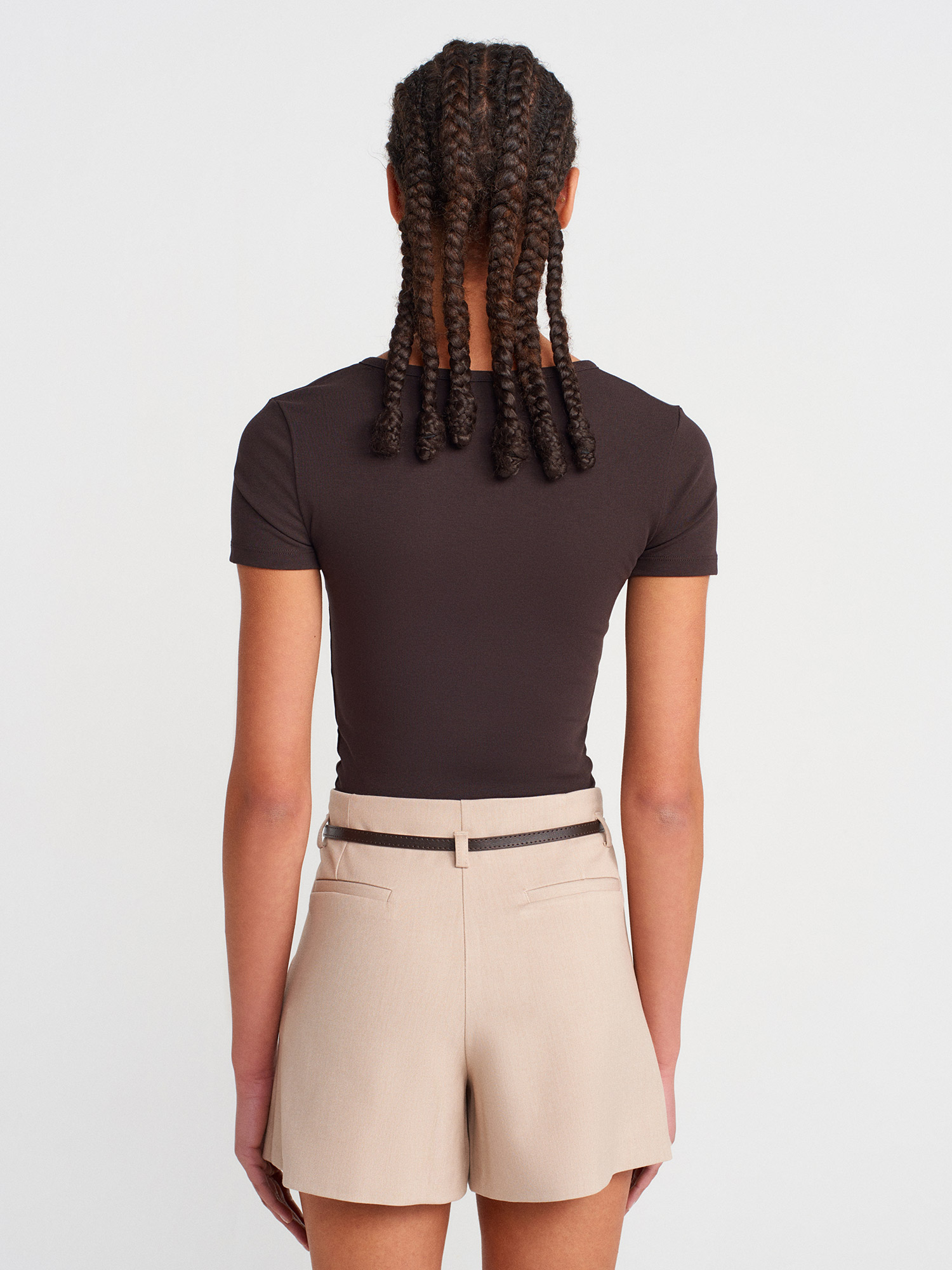 31704 Çıtçıt Düğmeli Kısa Kollu Top-Koyu Kahve