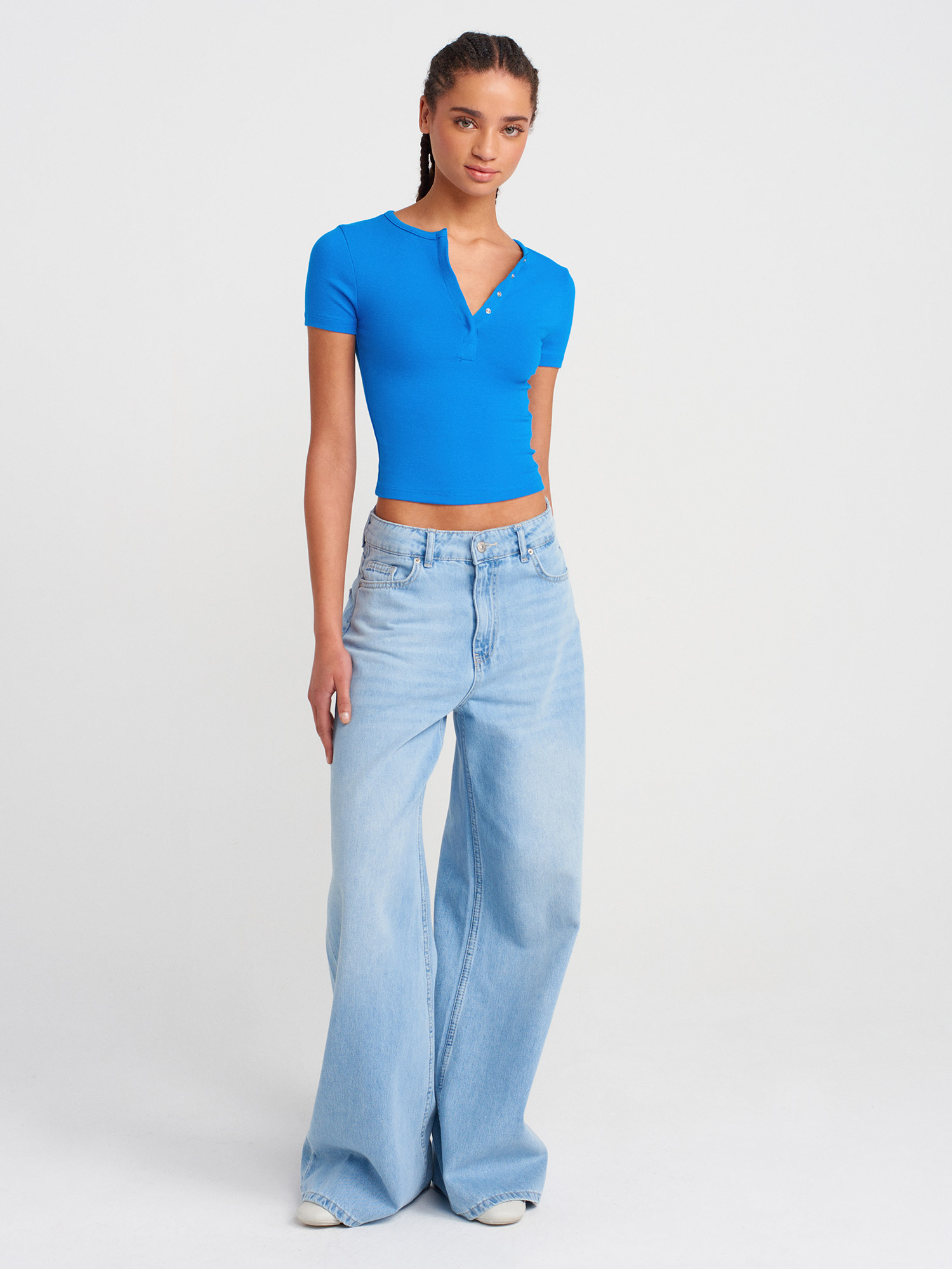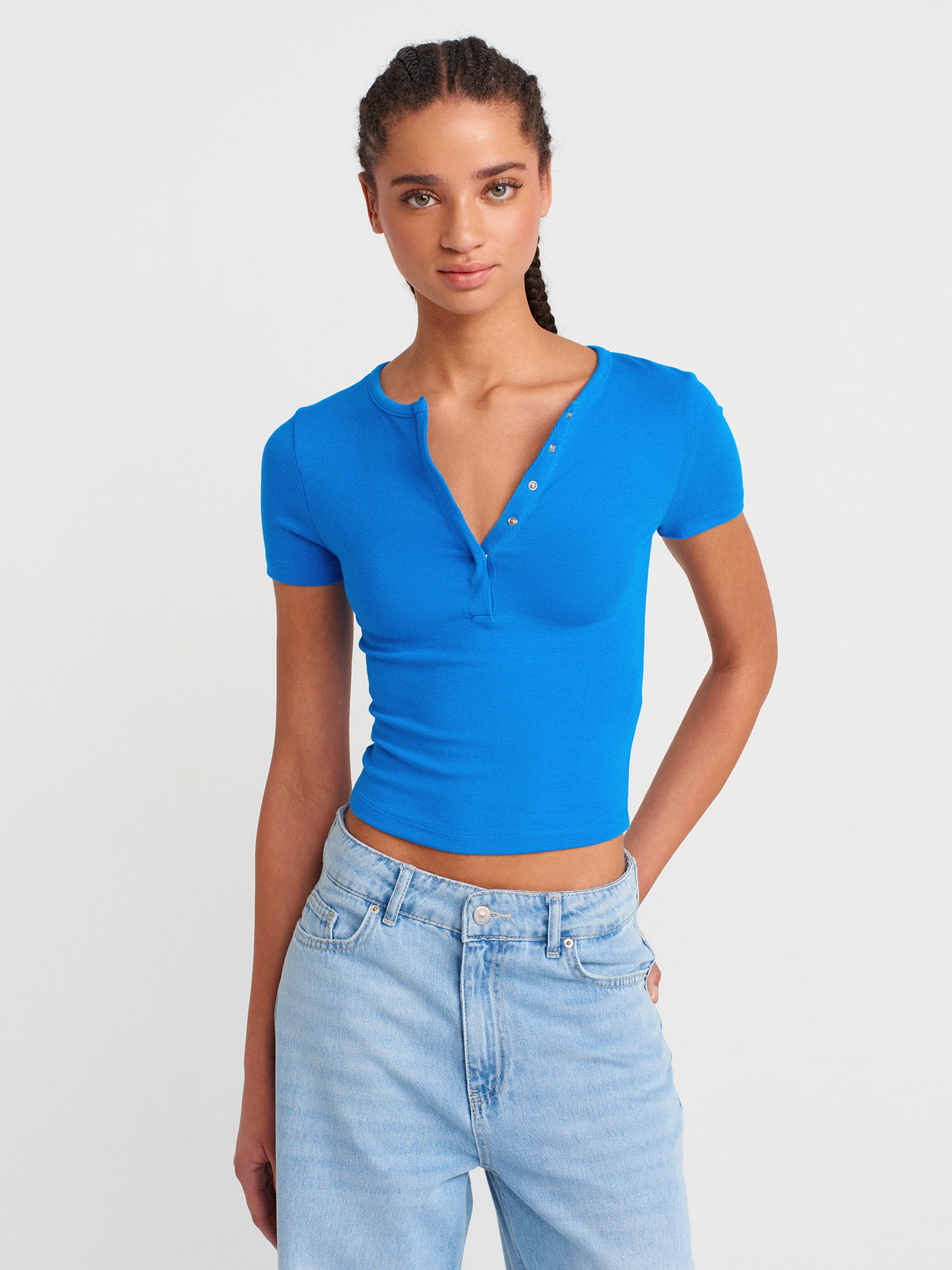 31704 Çıtçıt Düğmeli Kısa Kollu Top-Saks