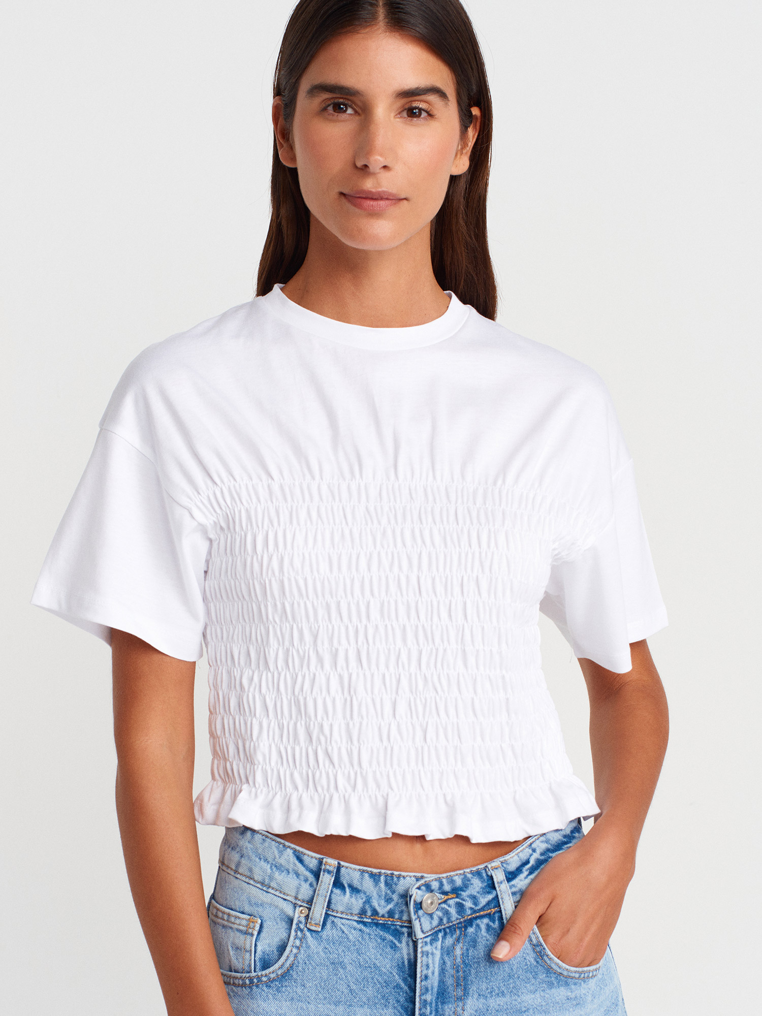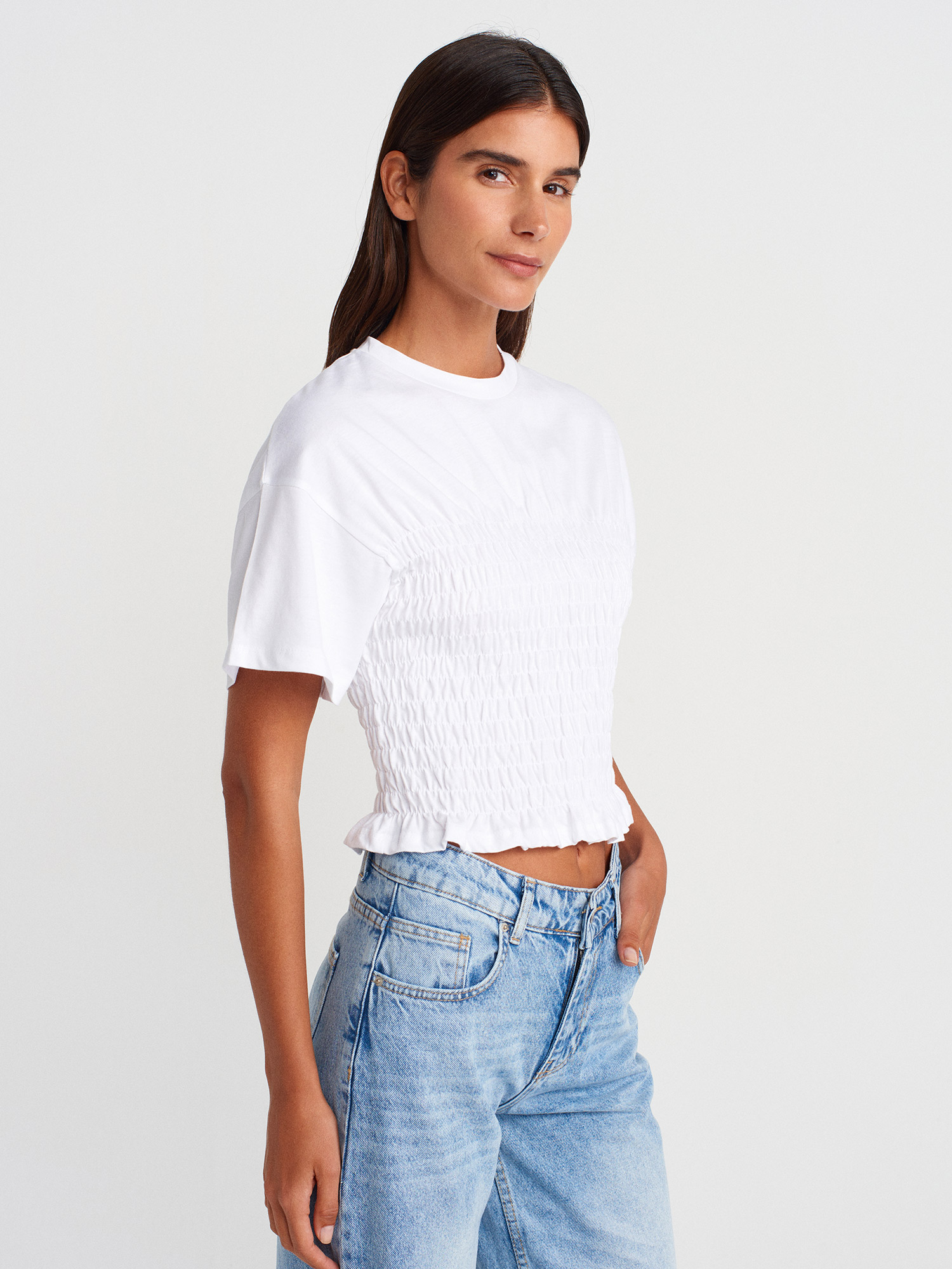 31716 Bisiklet Yaka Gipeli T-shirt-Beyaz