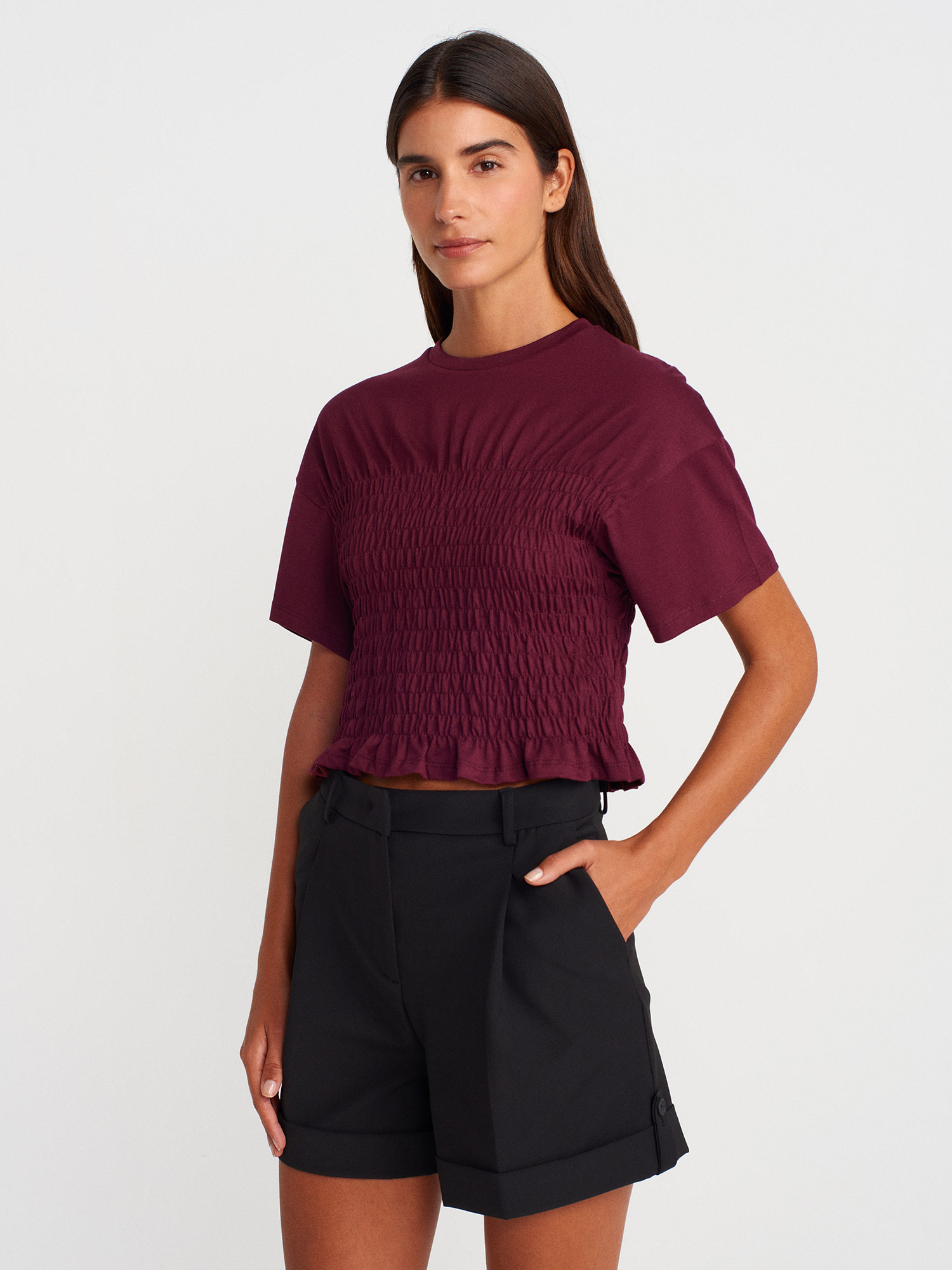 31716 Bisiklet Yaka Gipeli T-shirt-Bordo