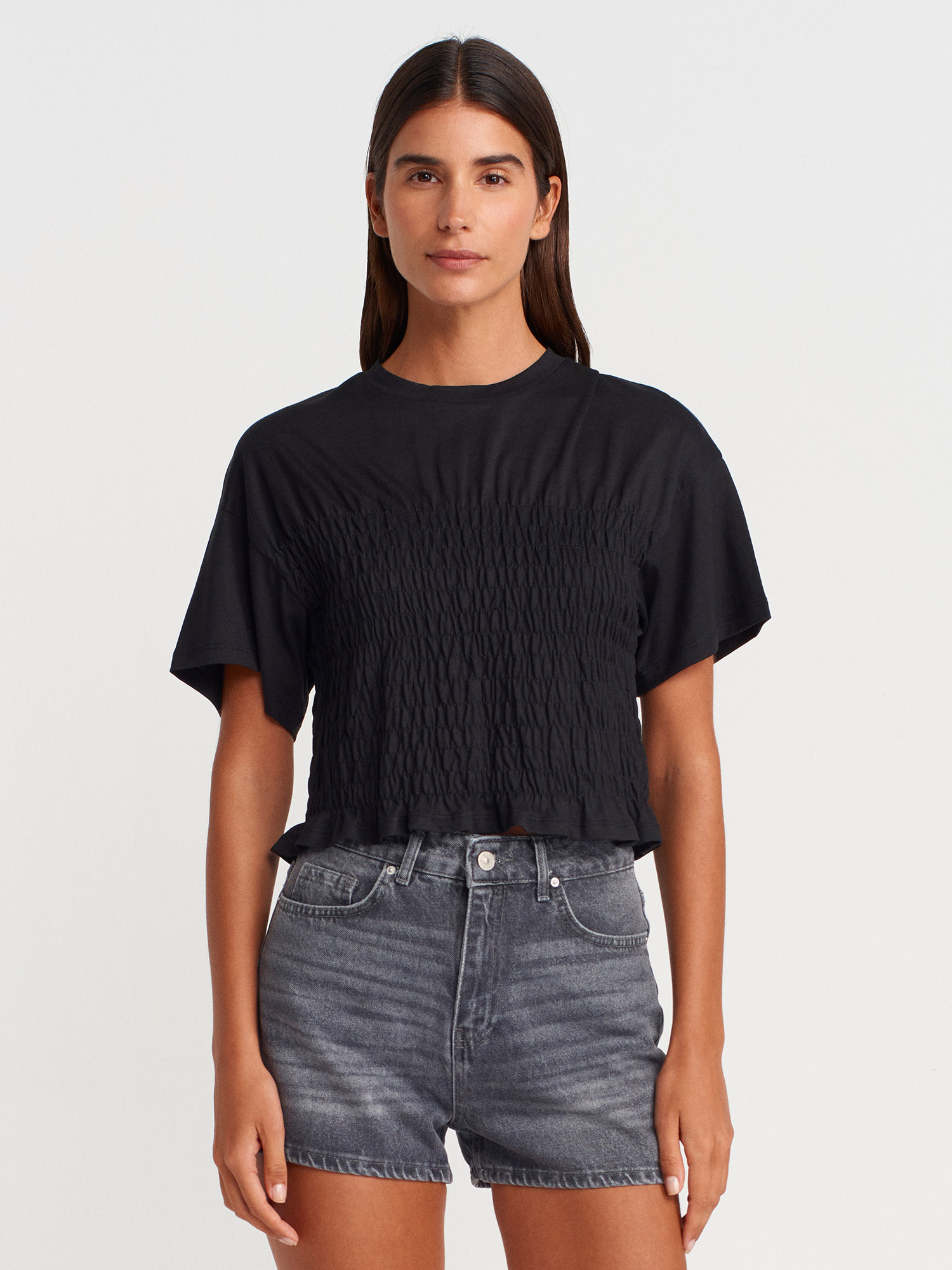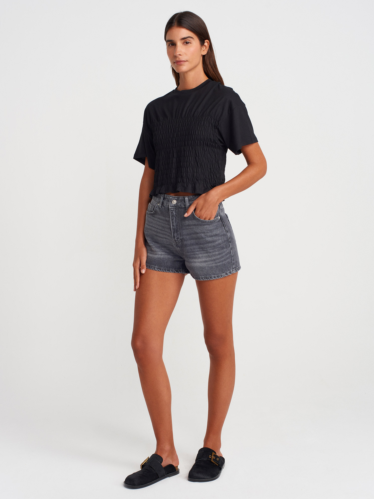 31716 Bisiklet Yaka Gipeli T-shirt-Siyah
