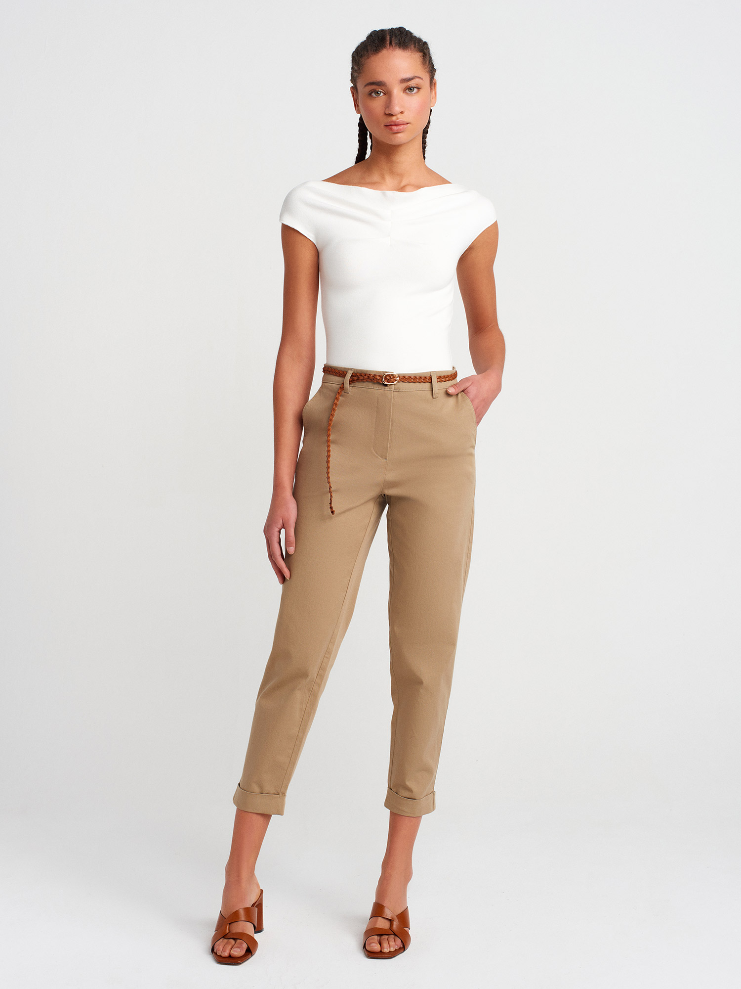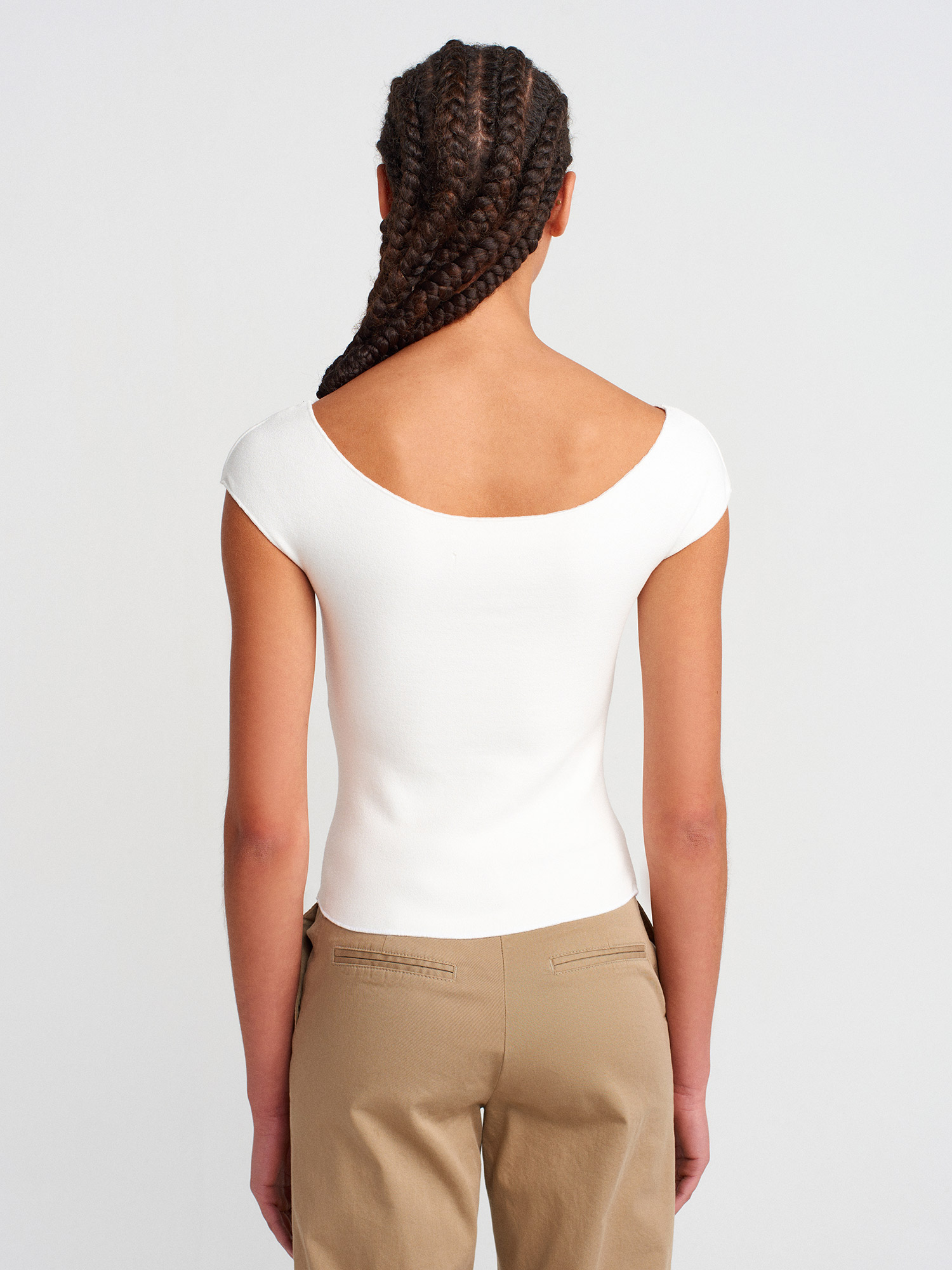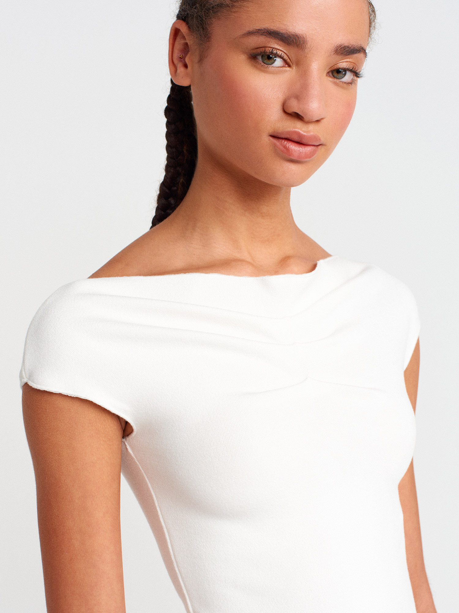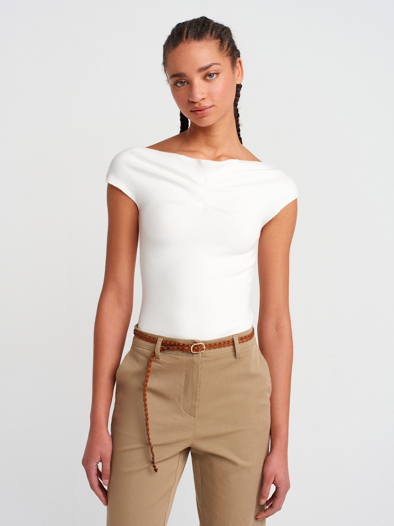 31718 Omuzları Açık Pile Detaylı Top-Ekru