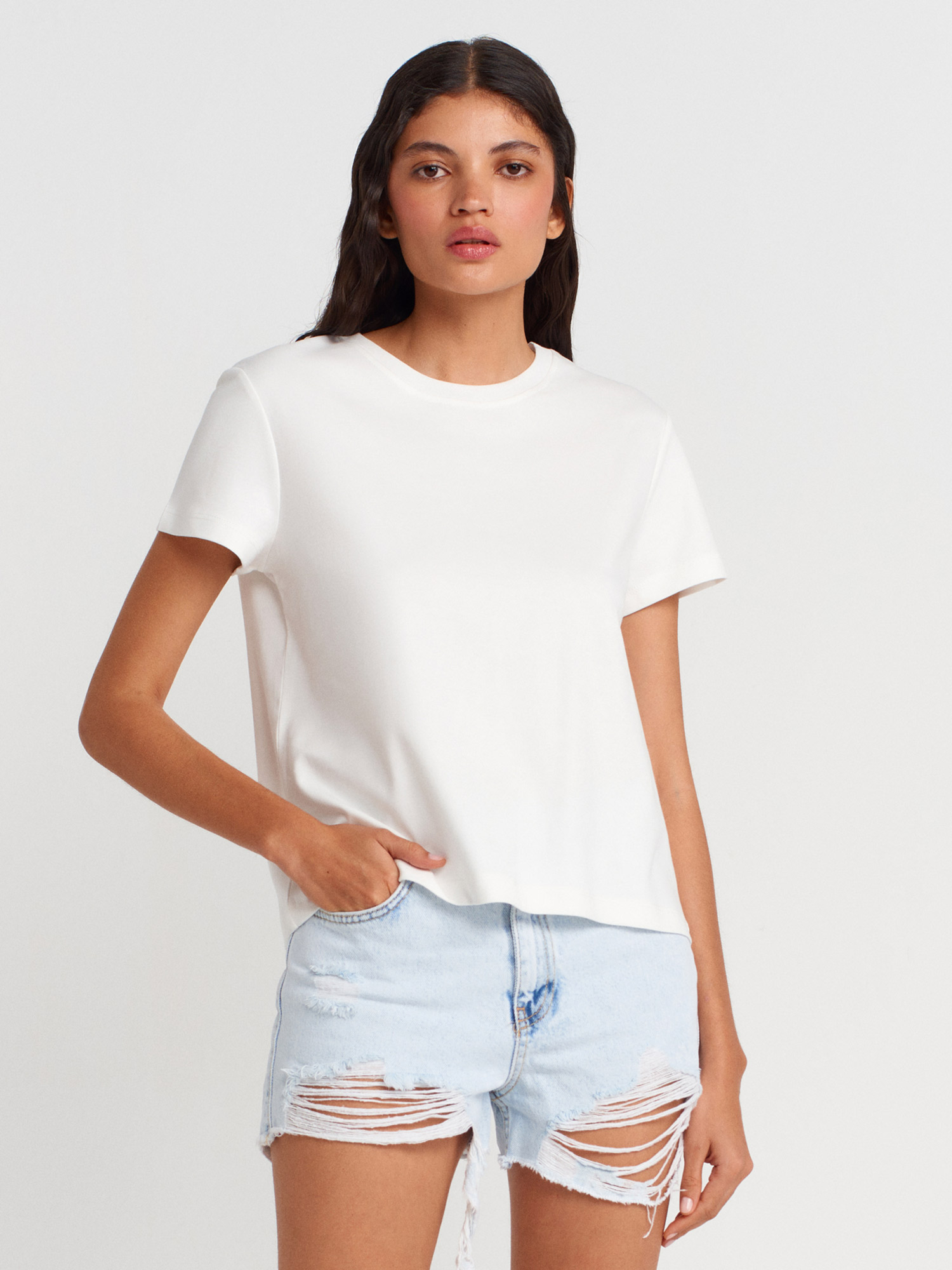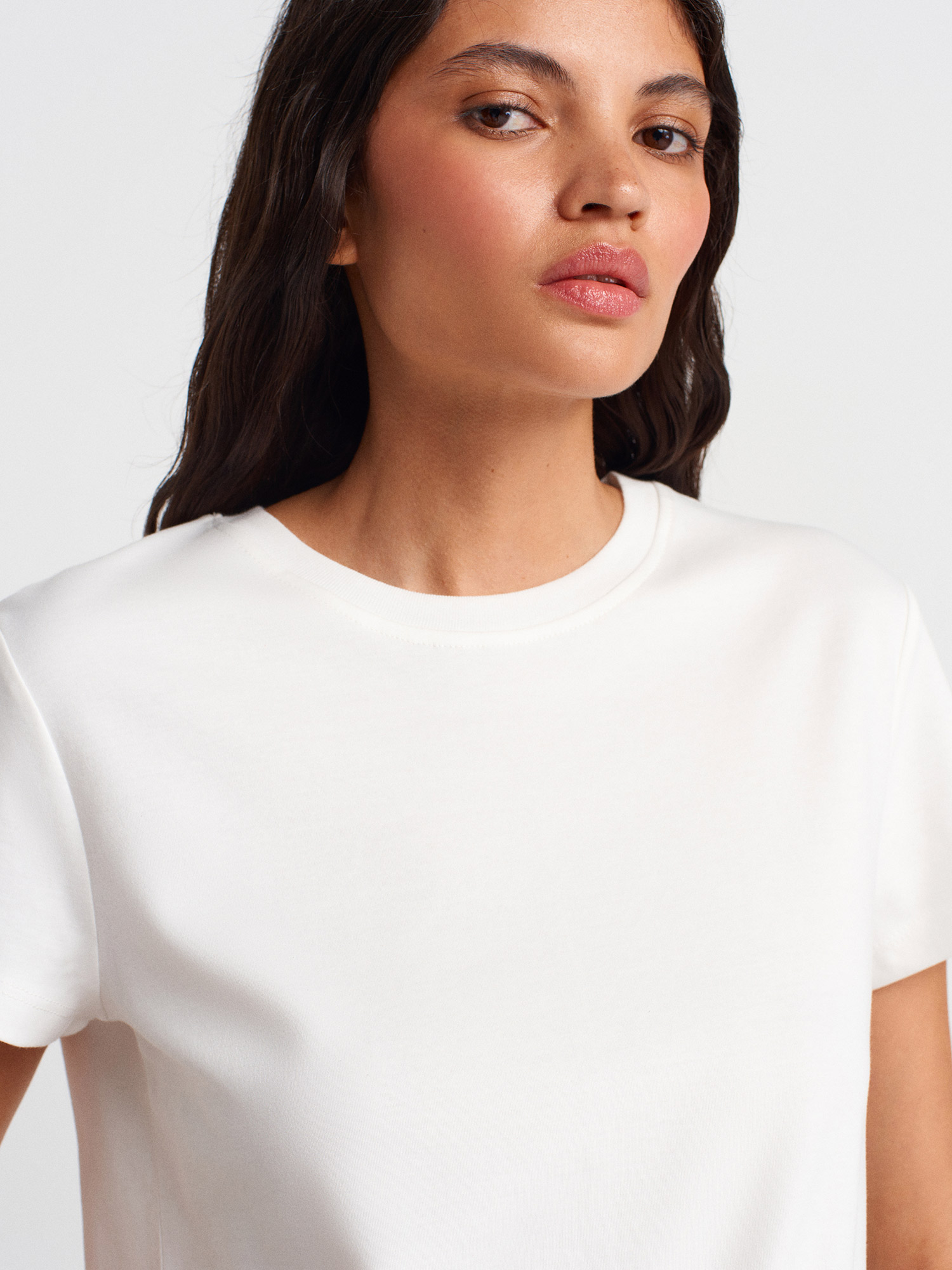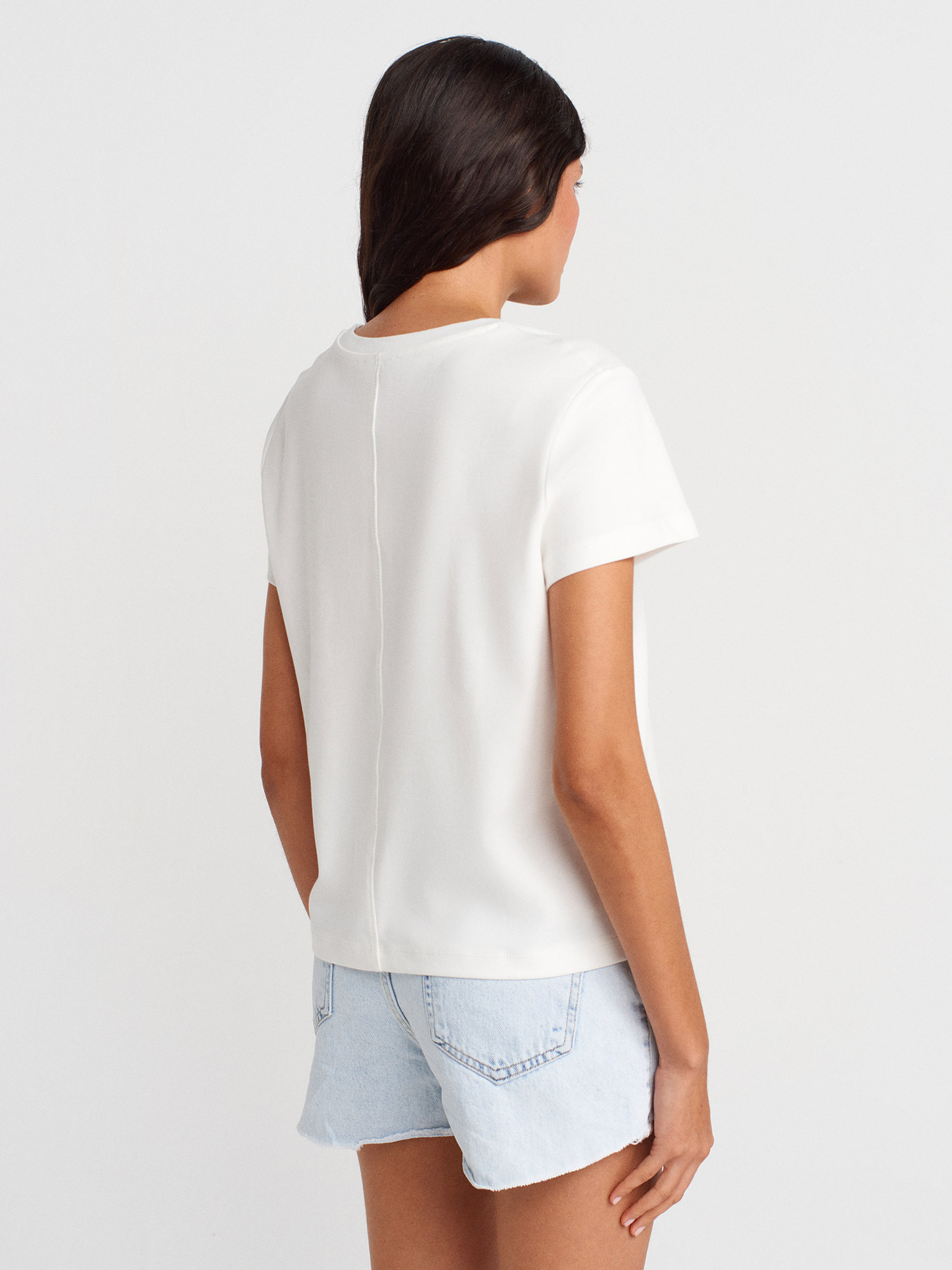 31757 Bisiklet Yaka Dikiş Detaylı T-shirt-Ekru