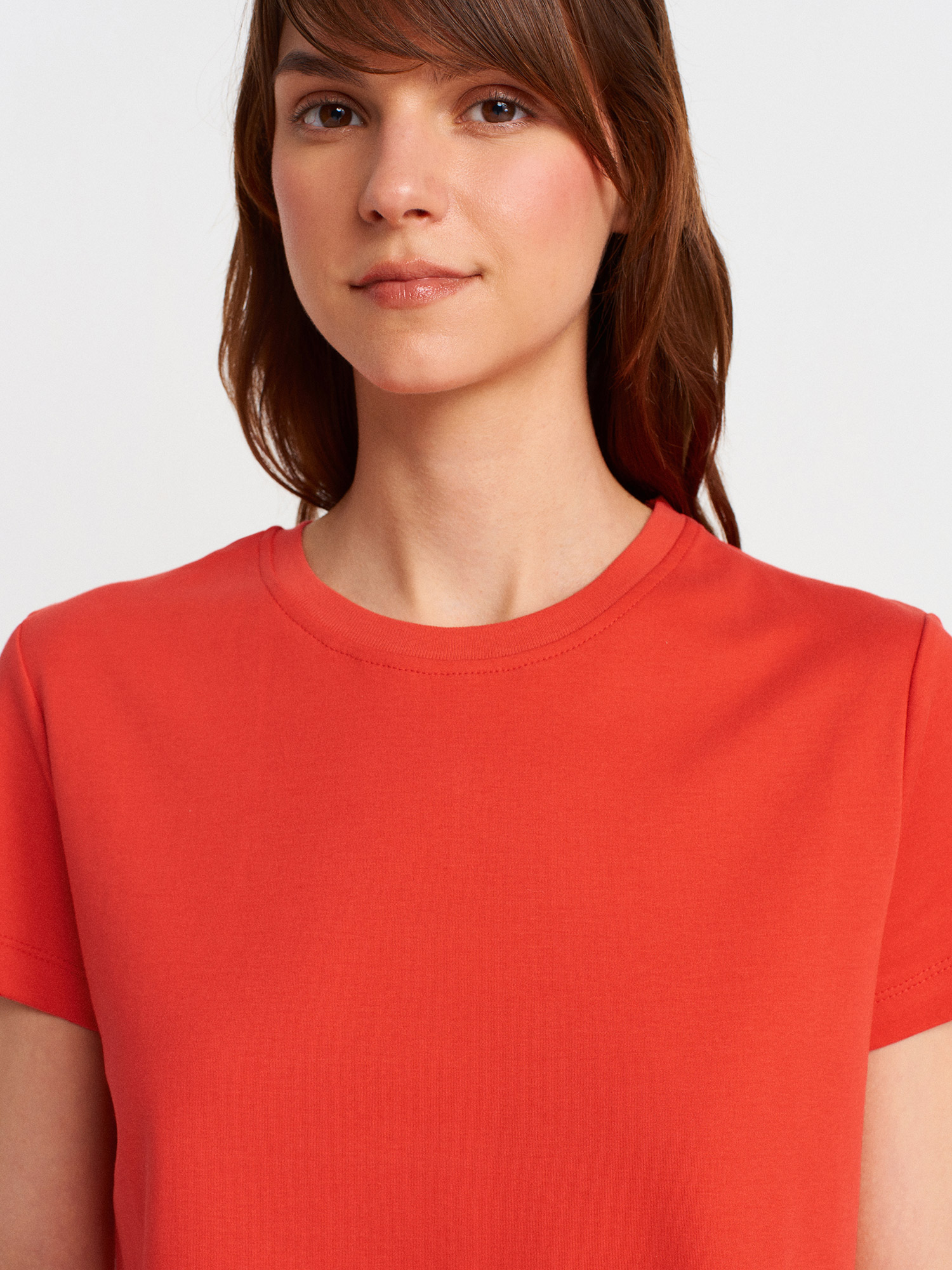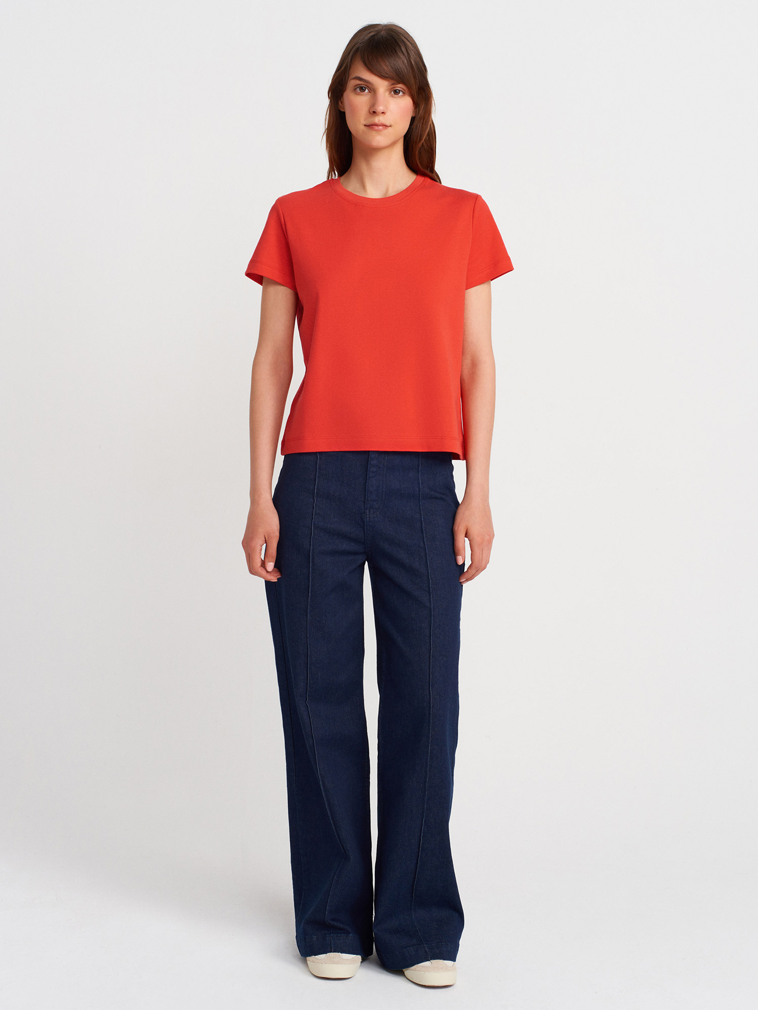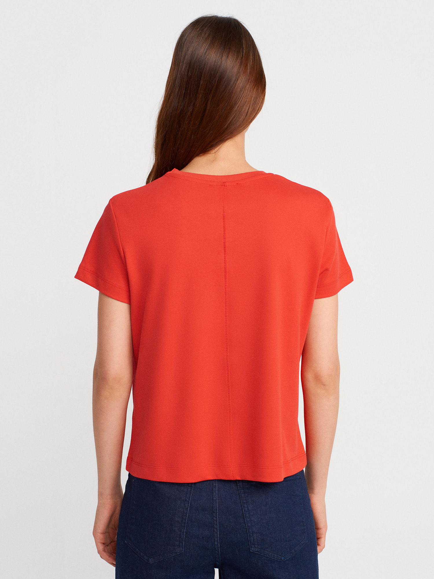 31757 Bisiklet Yaka Dikiş Detaylı T-shirt-Kırmızı